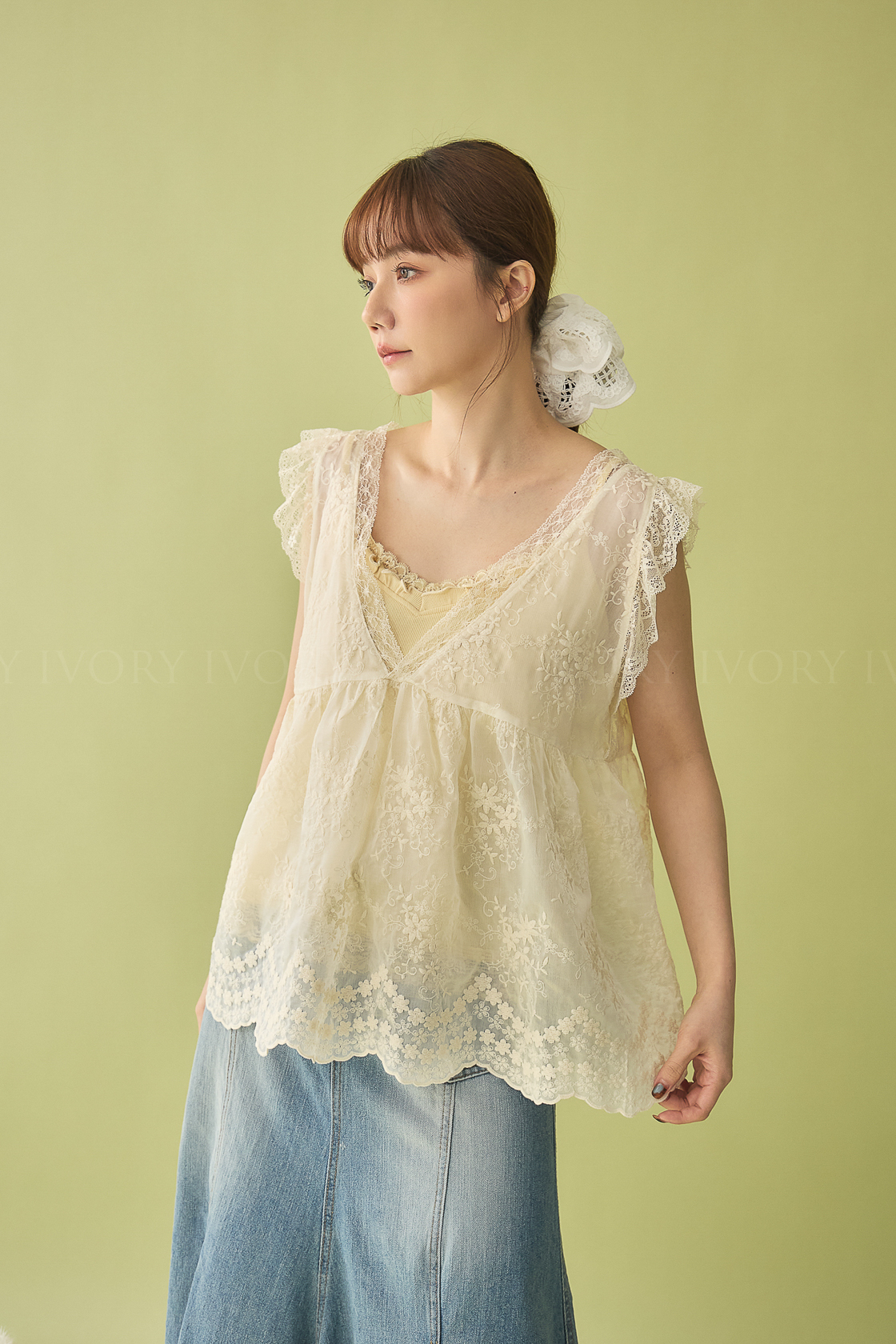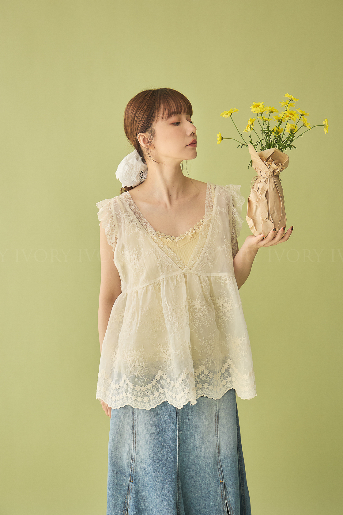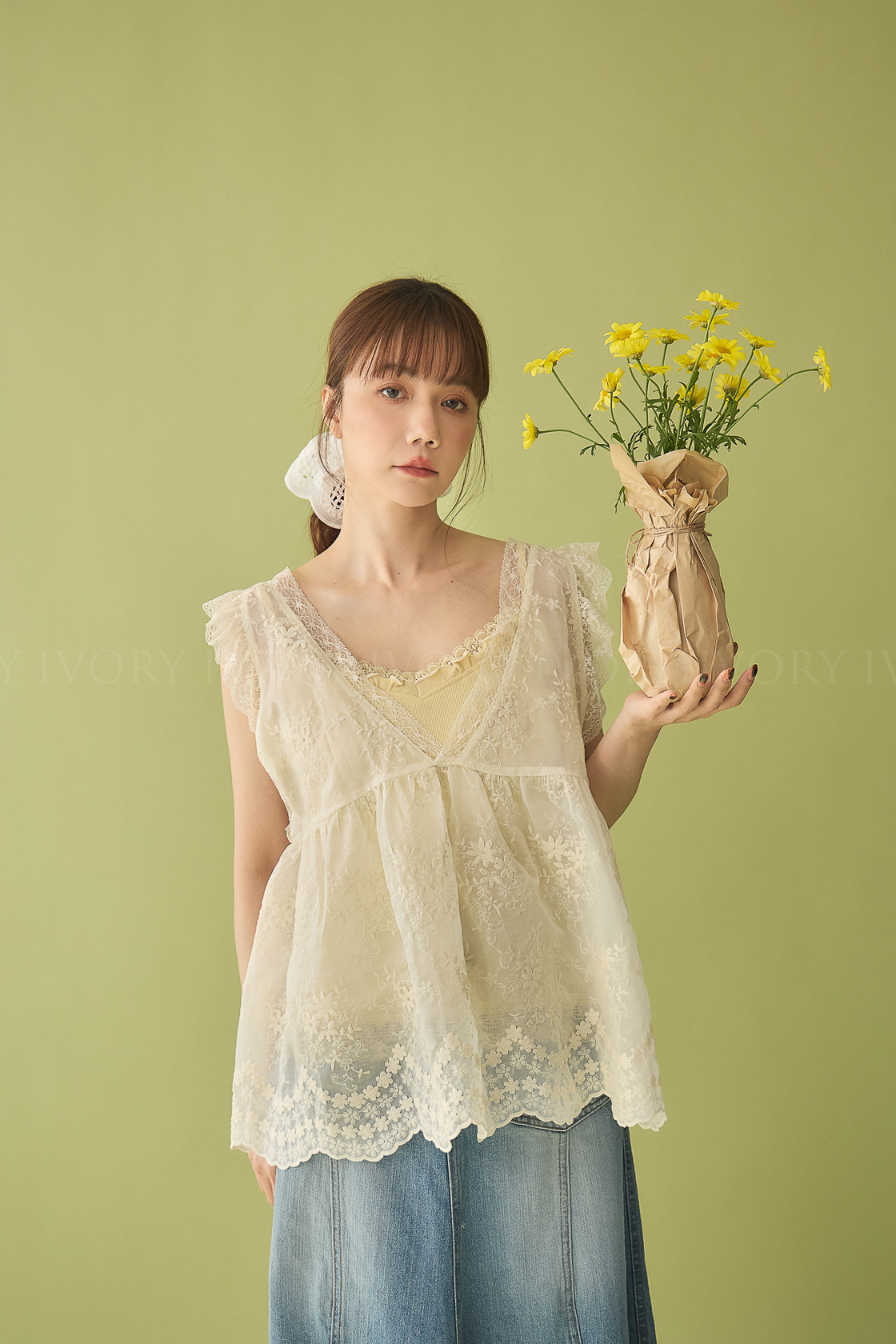M60326刺繡小花園V領散狀背心