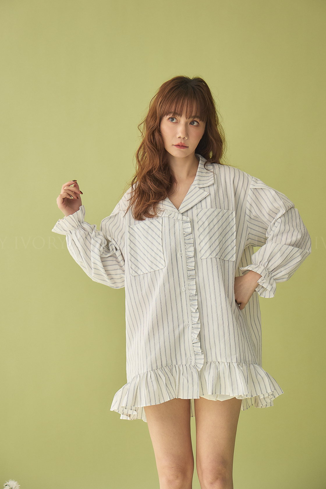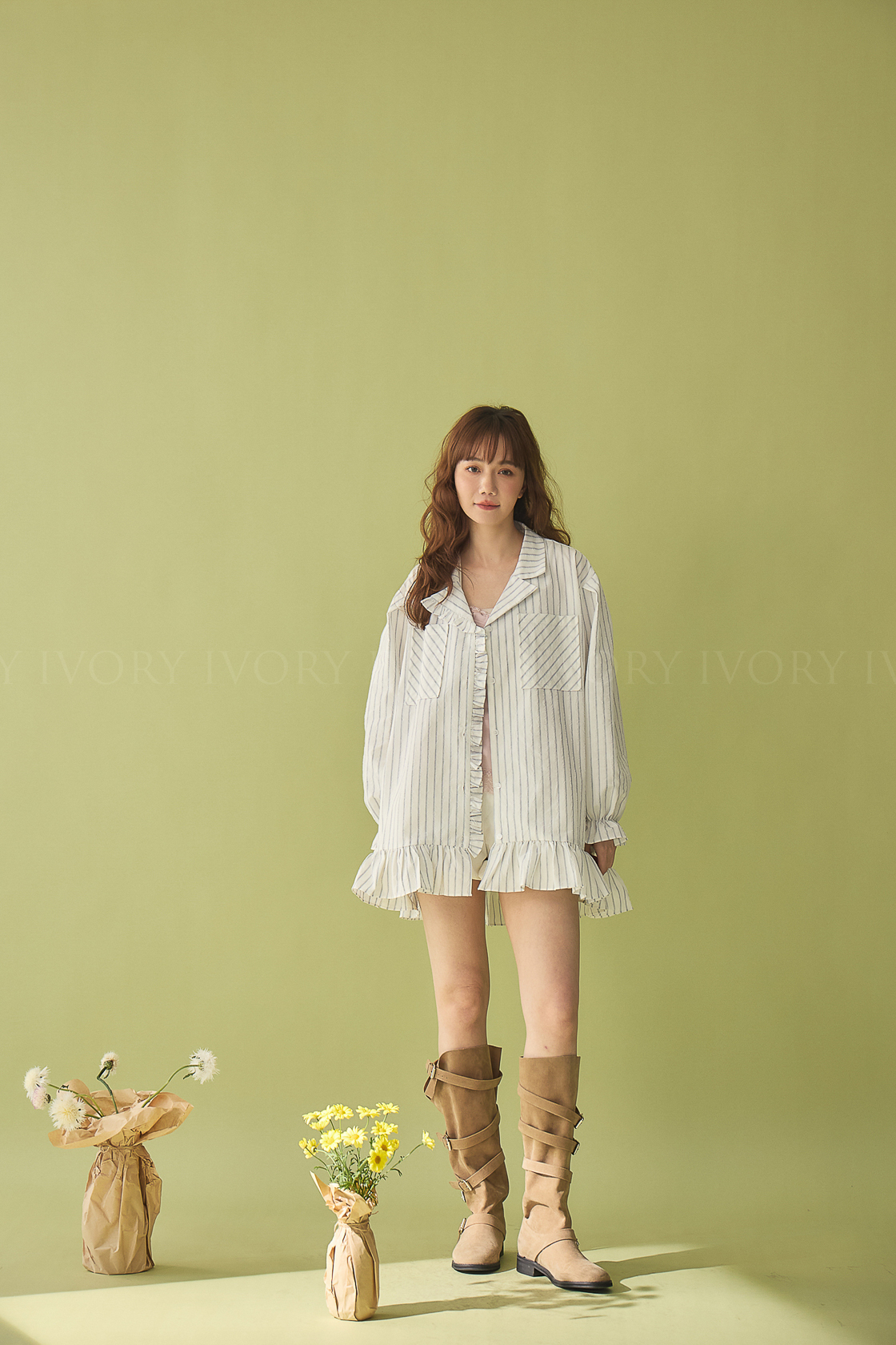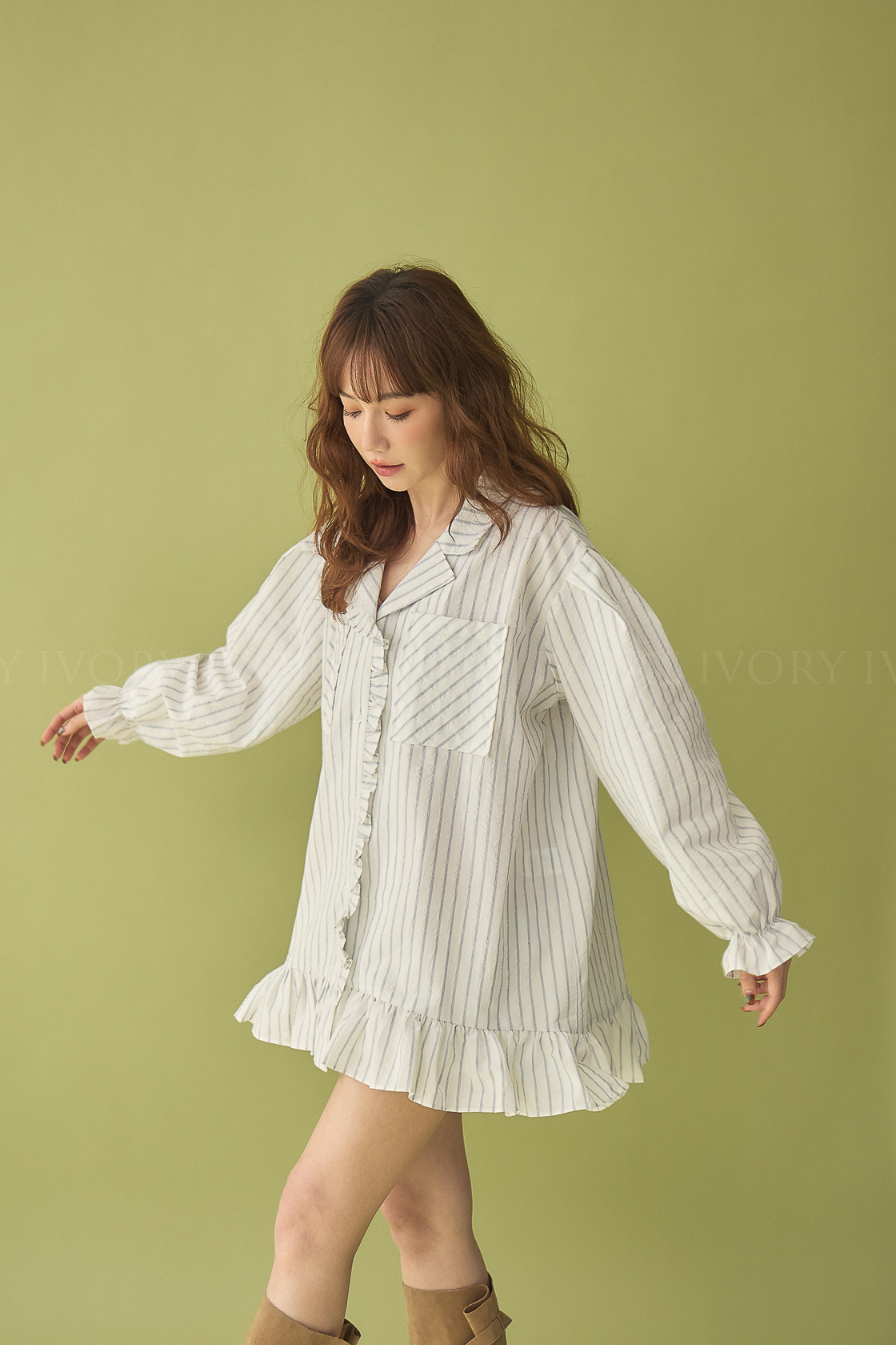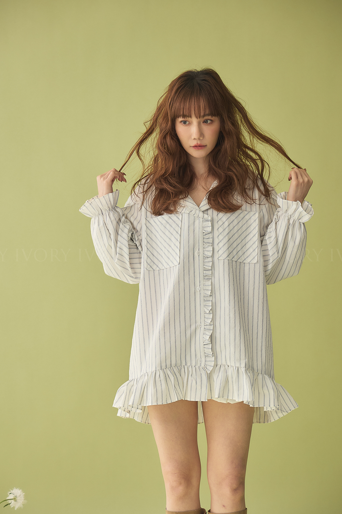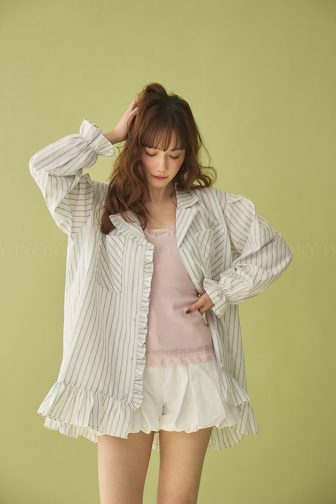 M60349時髦小姊姊荷葉滾邊襯衫小短洋 [琦琦清單]