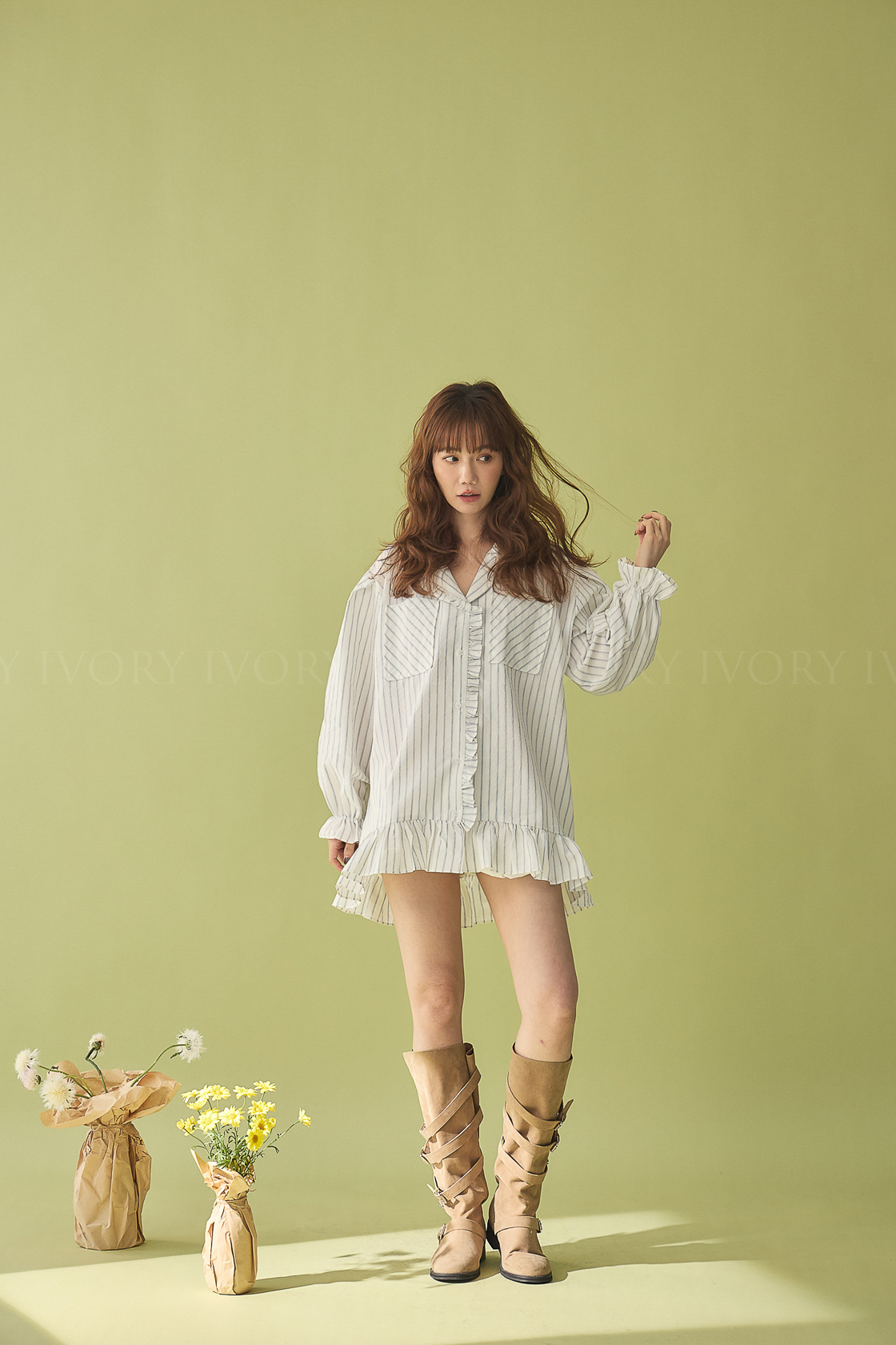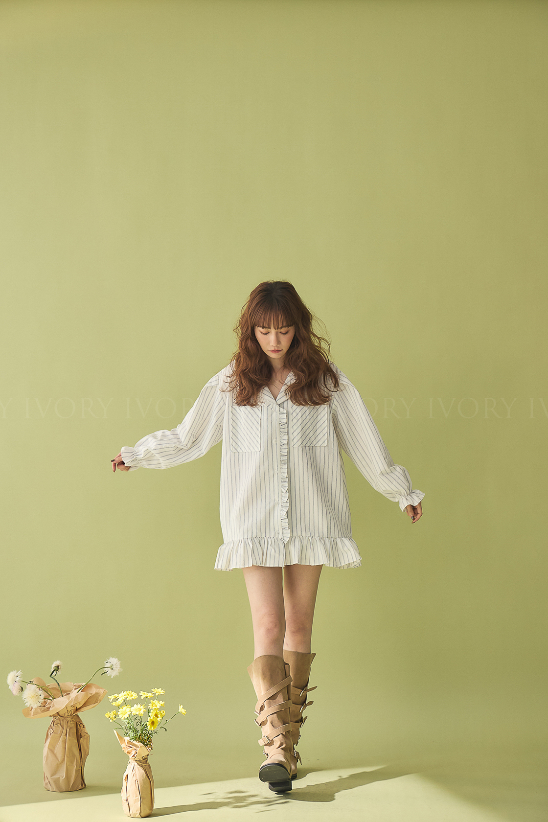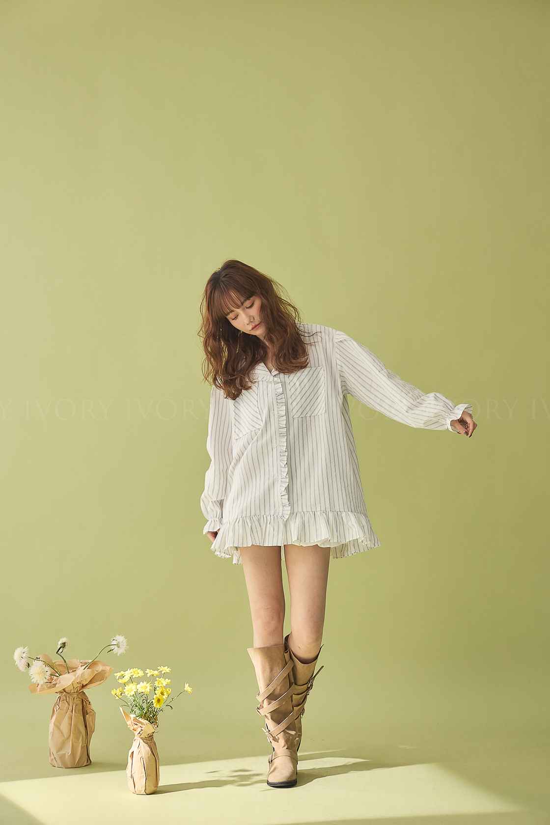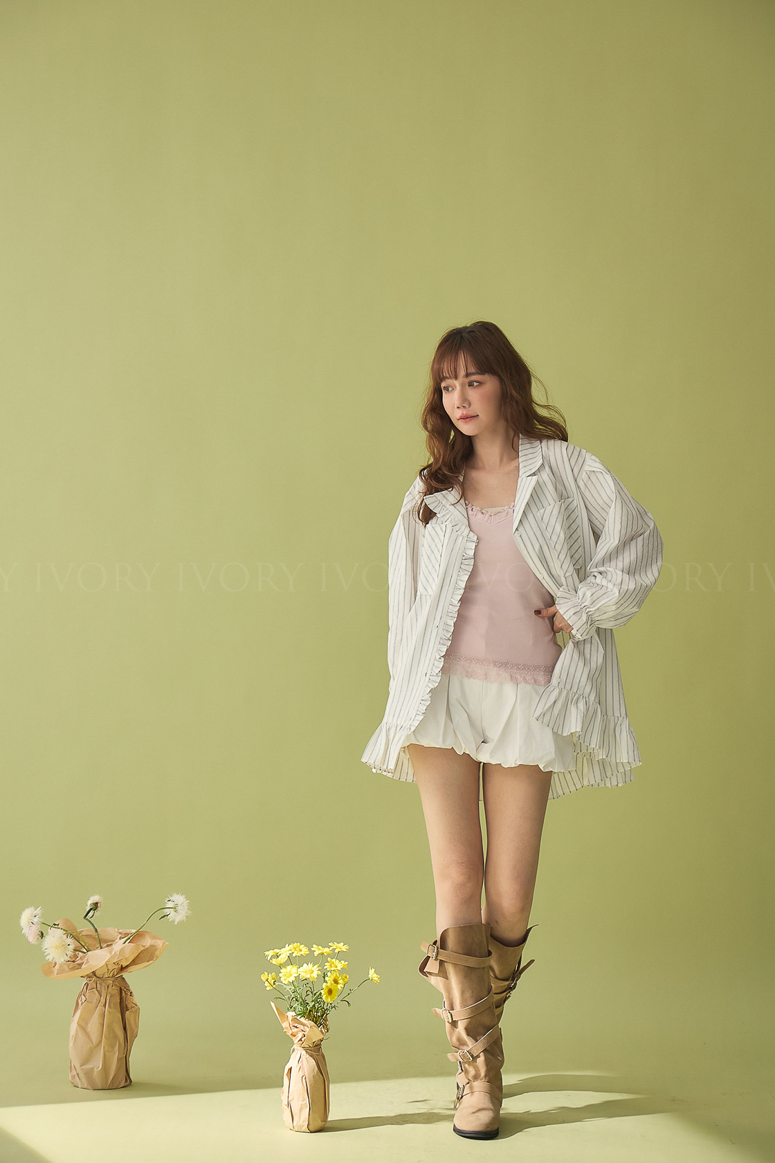 M60349時髦小姊姊荷葉滾邊襯衫小短洋 [琦琦清單]