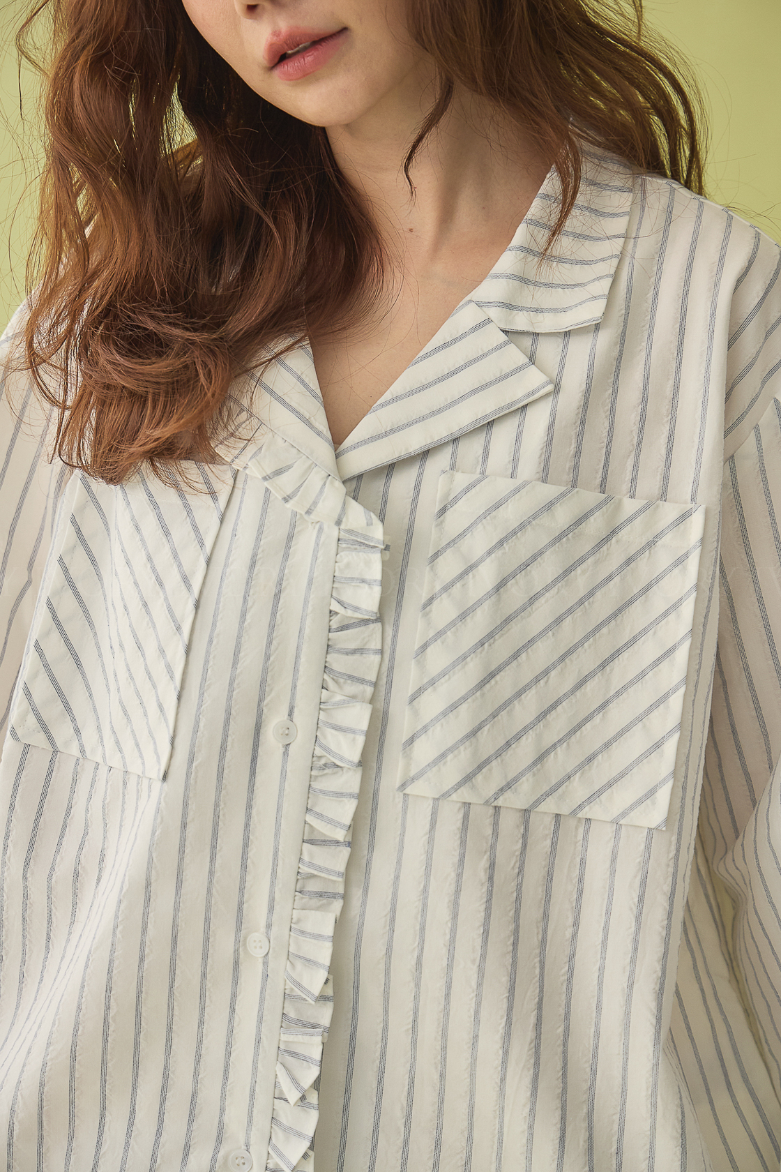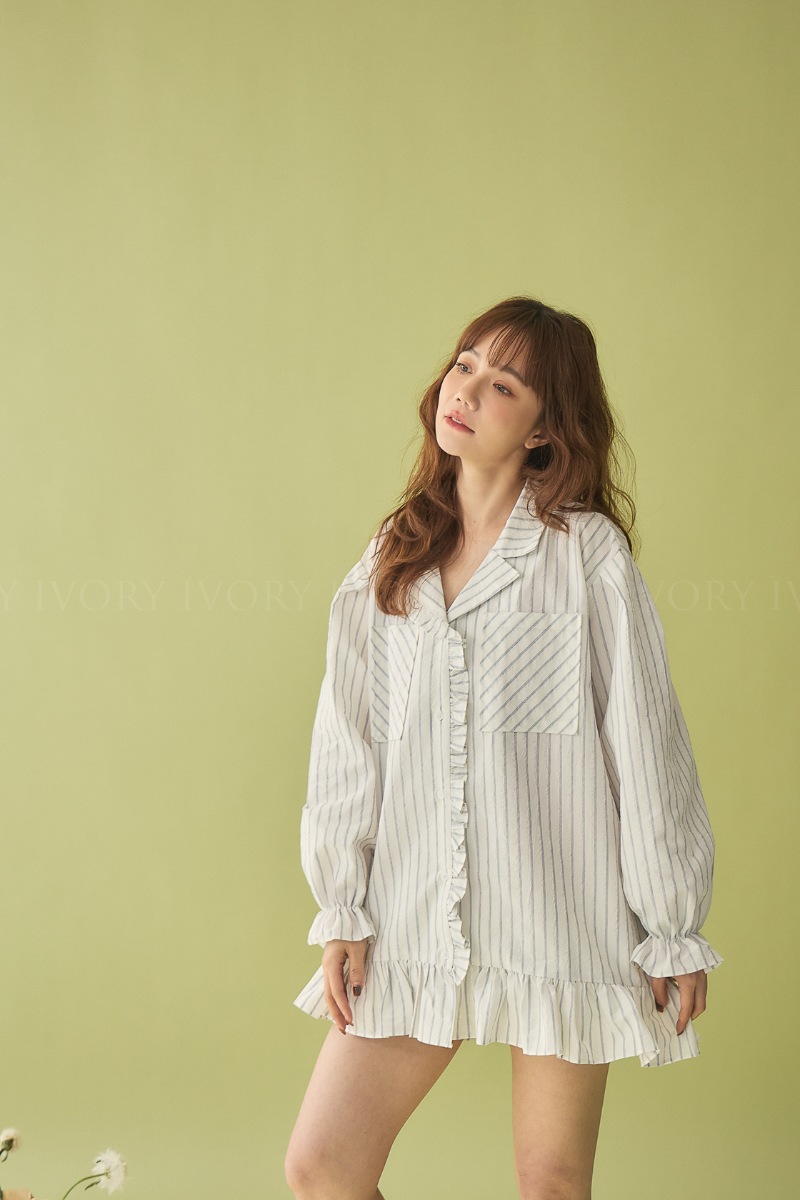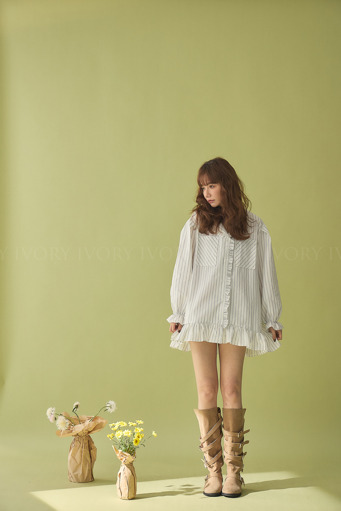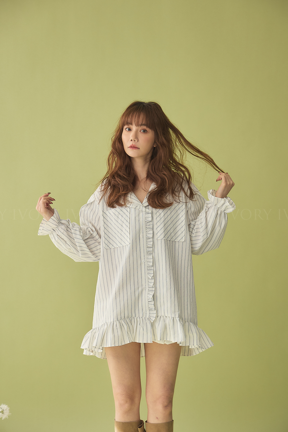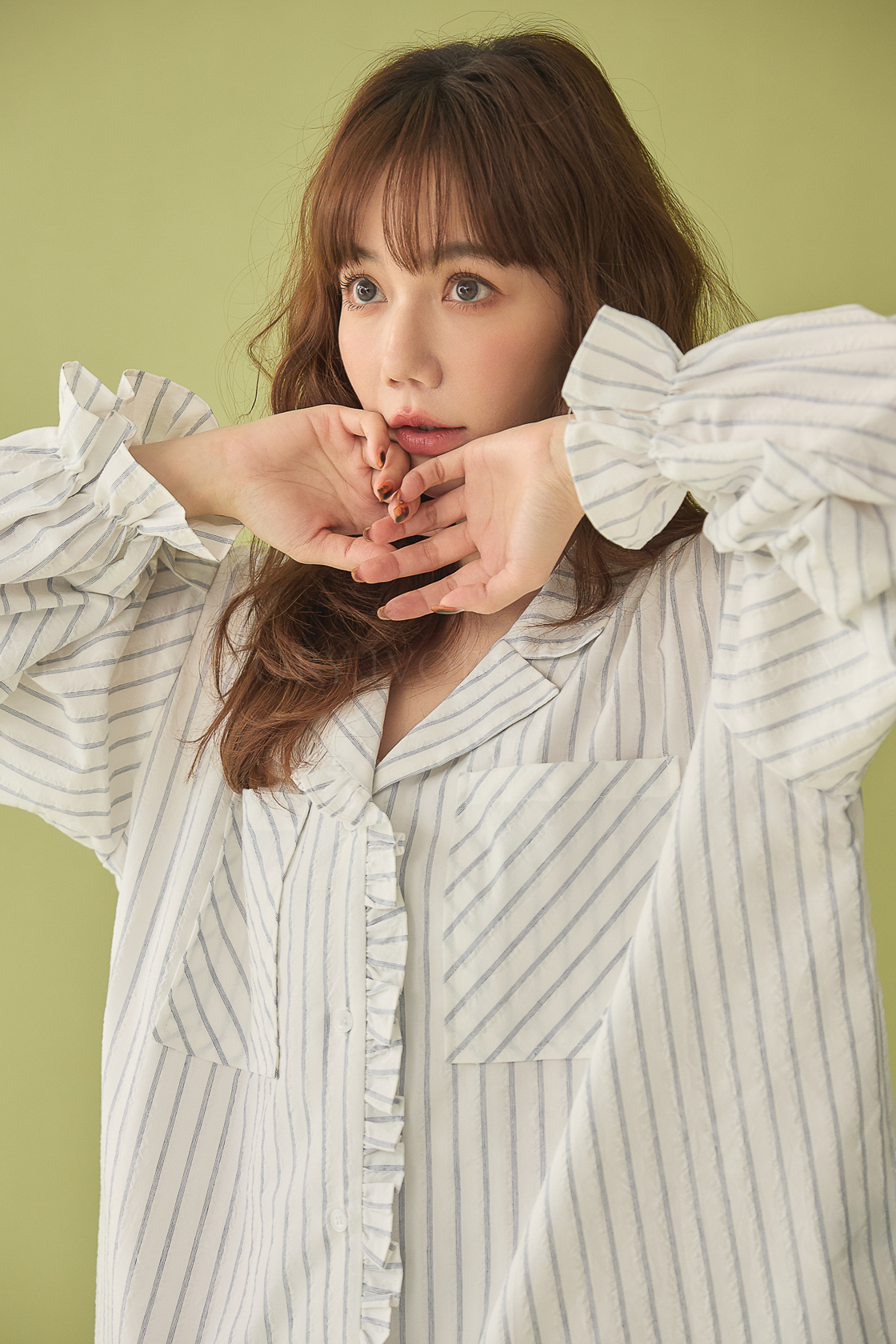 M60349時髦小姊姊荷葉滾邊襯衫小短洋 [琦琦清單]