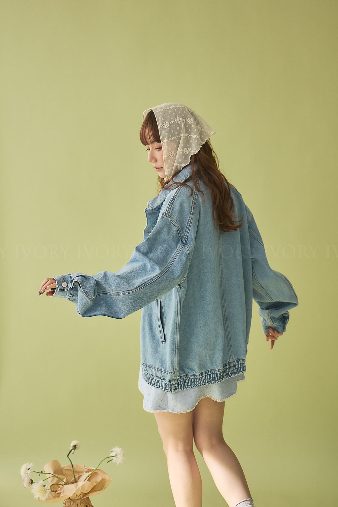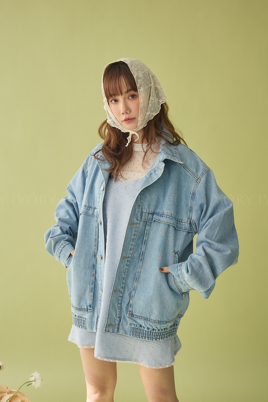 M60355拼接結構式大口袋淺色丹寧外套