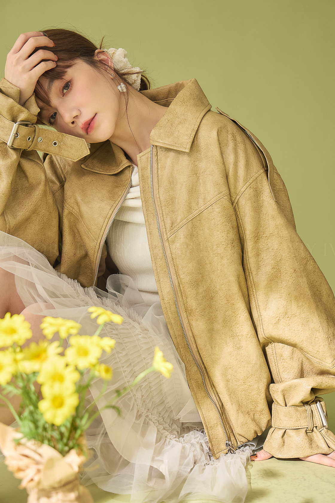 M60358高質感奶油霧光皮衣外套[琦琦清單]