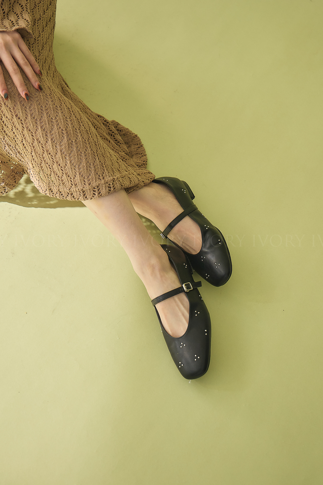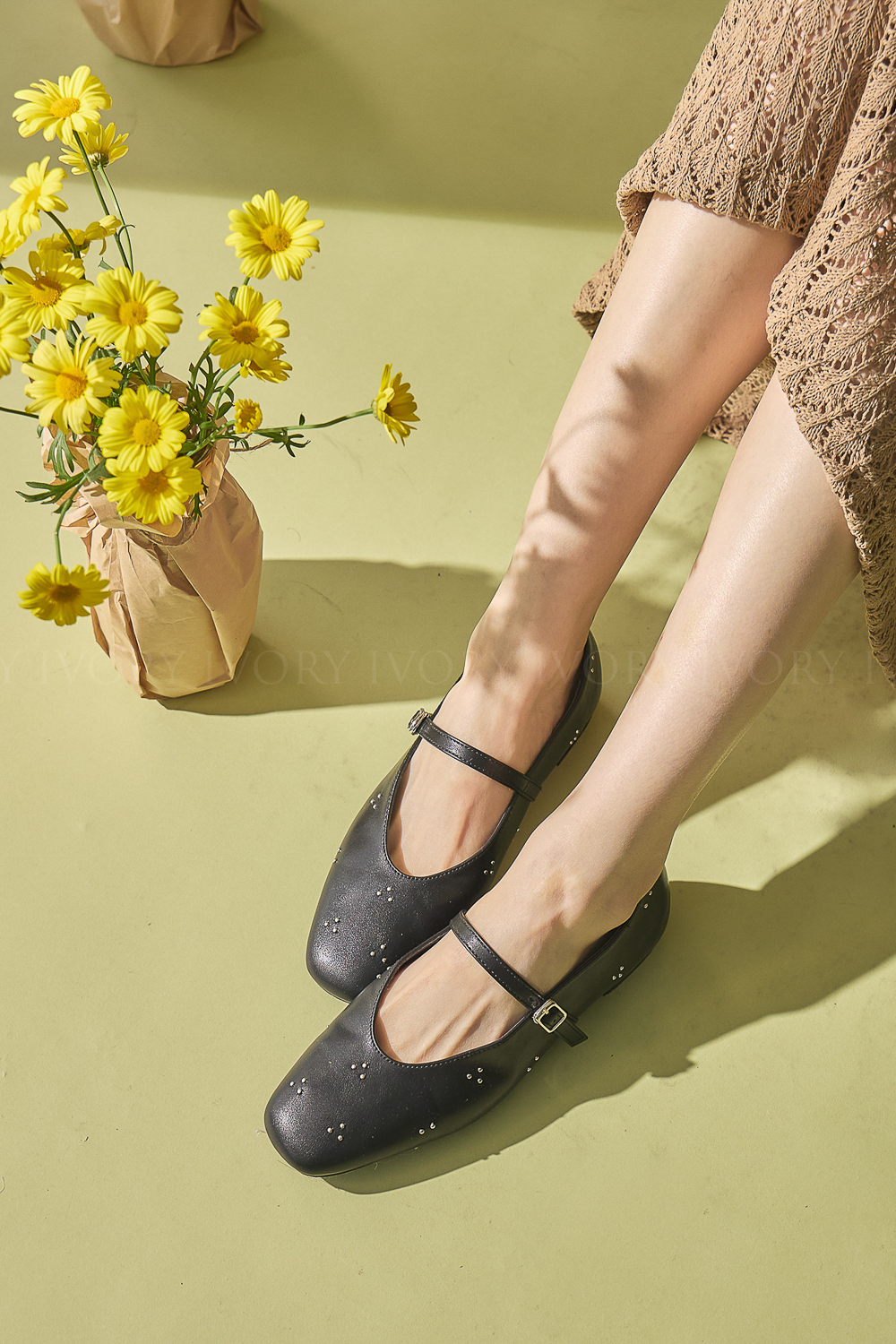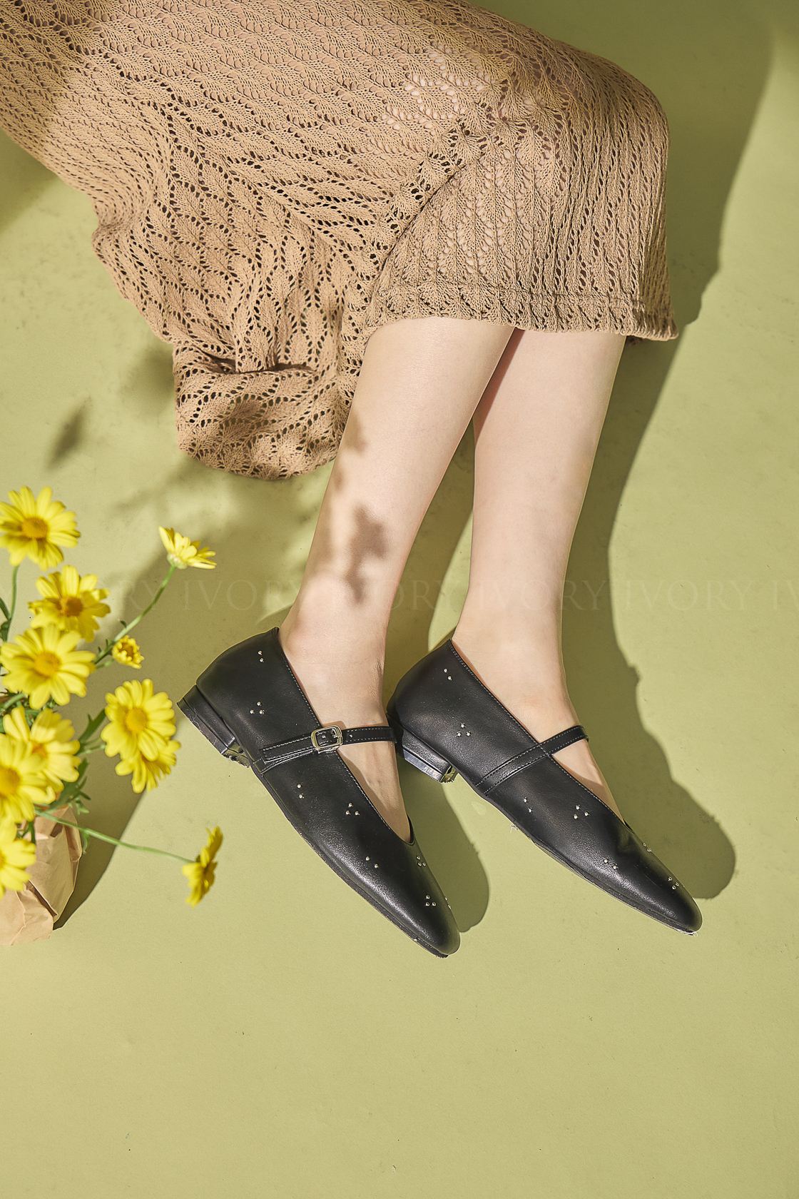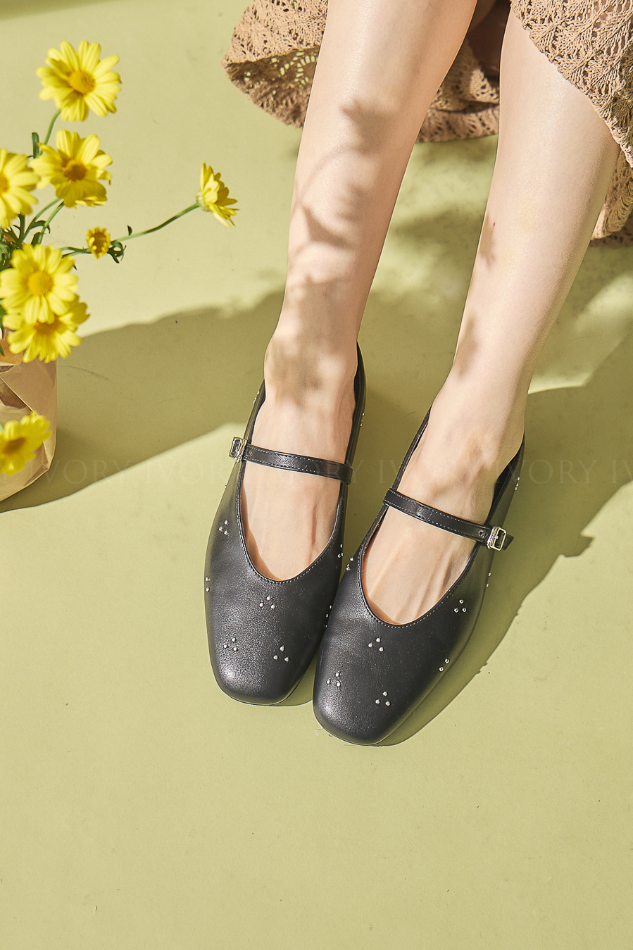 M60360銀色釘珠花朵芭蕾舞娃娃鞋
