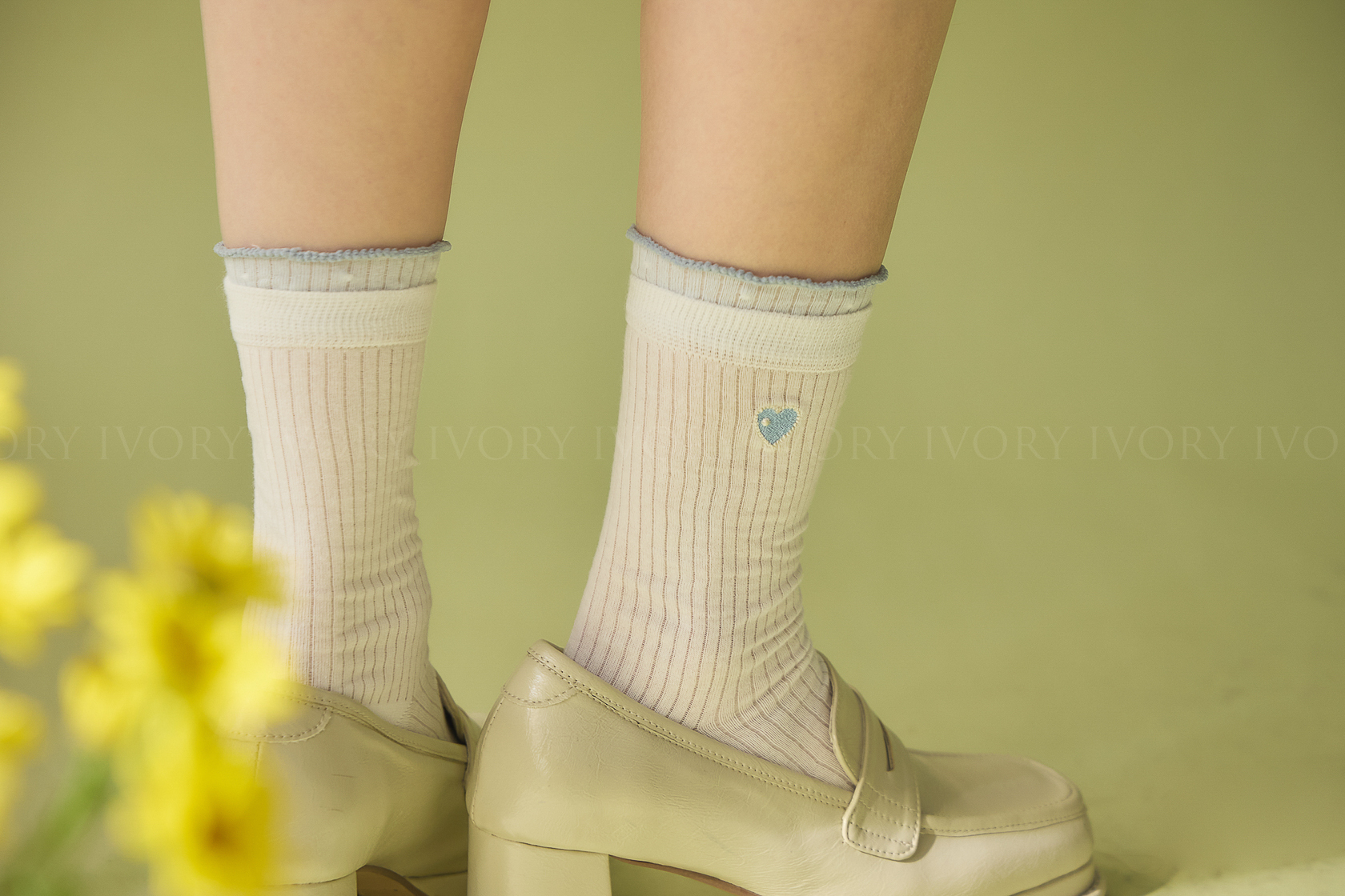 M60376刺繡小愛心雙層造型小短襪