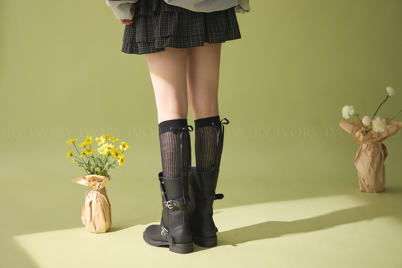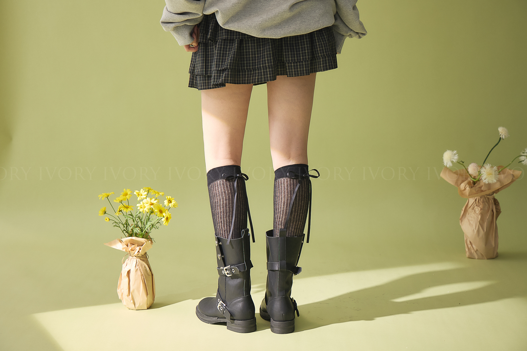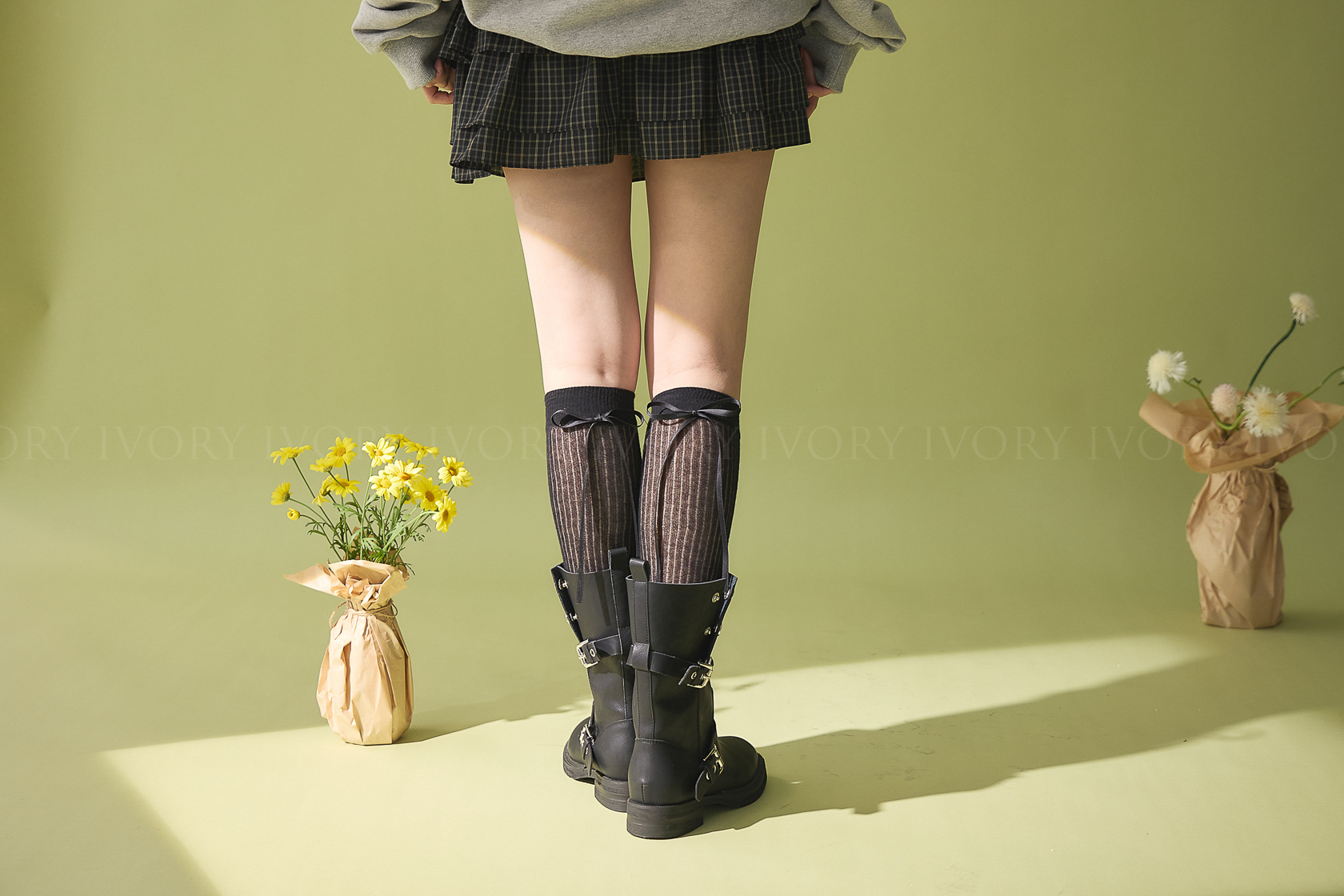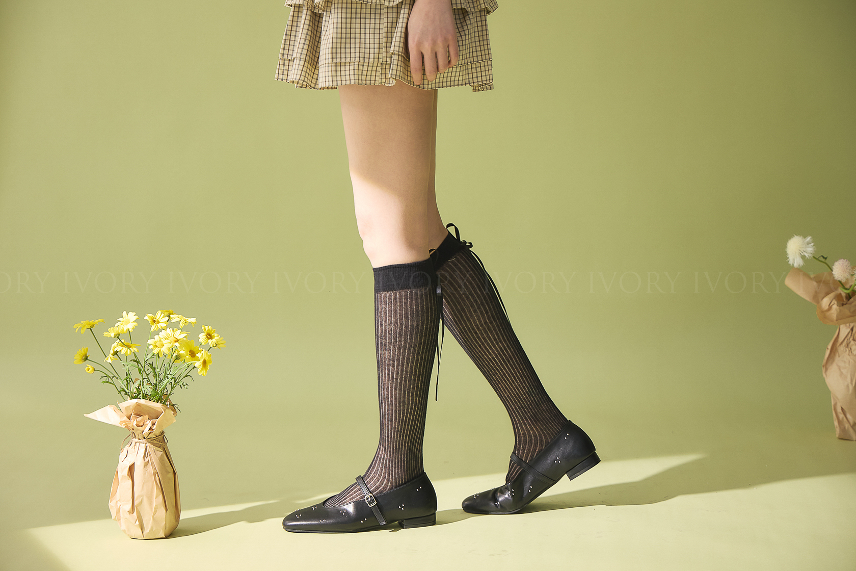 M60378芭蕾女孩透感直條蝴蝶結長襪