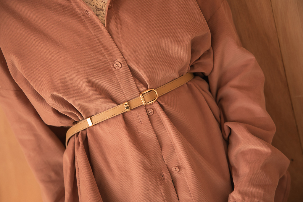 N11078質感金色馬蹄釦雙環真皮腰帶