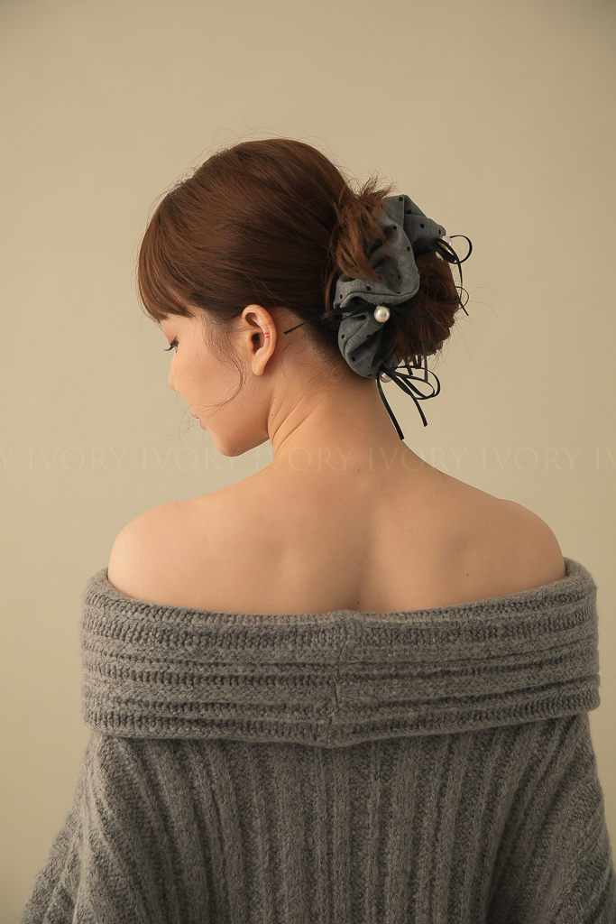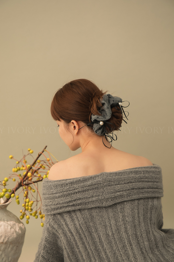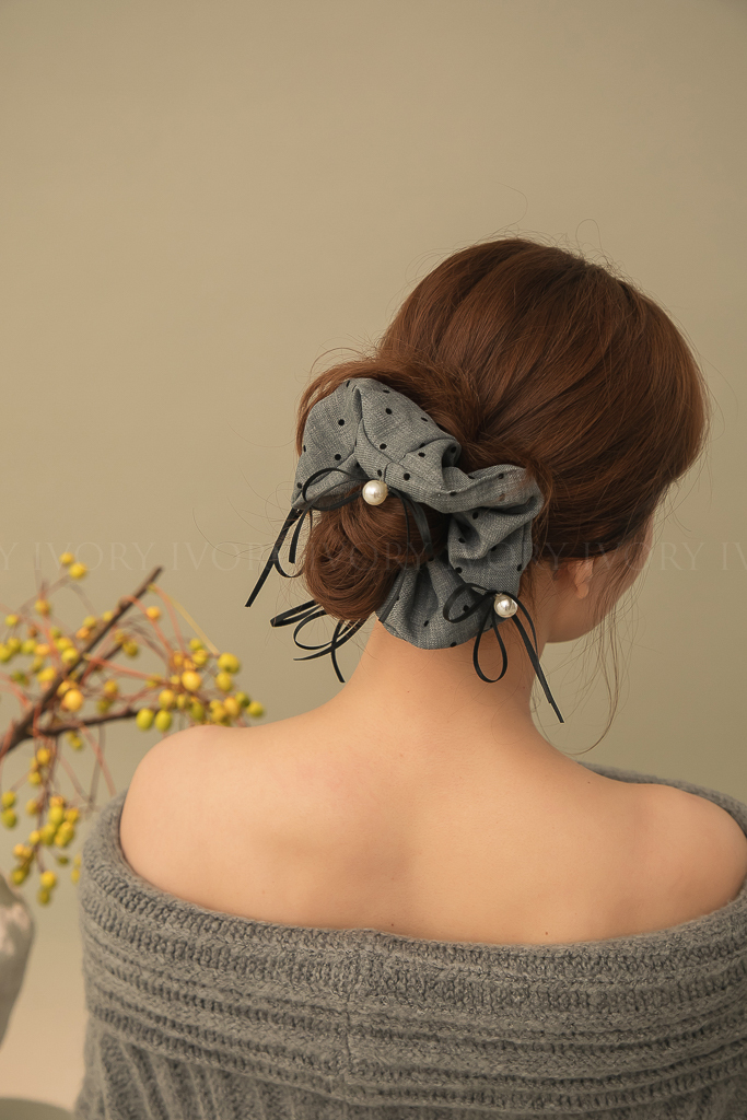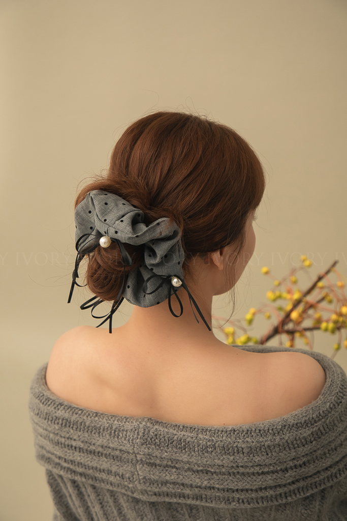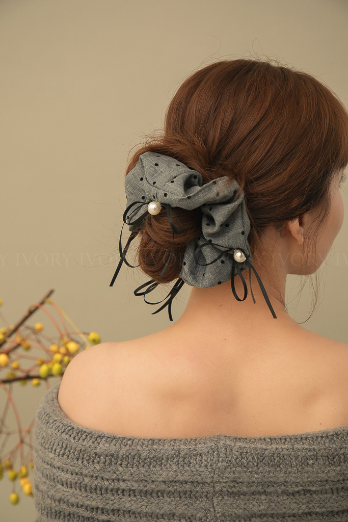N41146可愛珍珠蝴蝶結緞帶點點髮圈<可青清單>