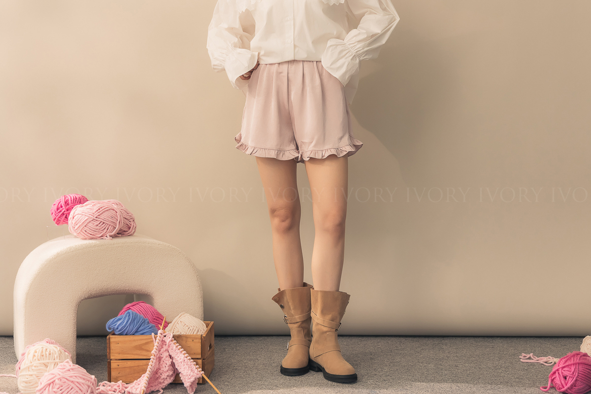 N51003大推必收小花瓣滾邊光澤小短褲< Kimy清單>