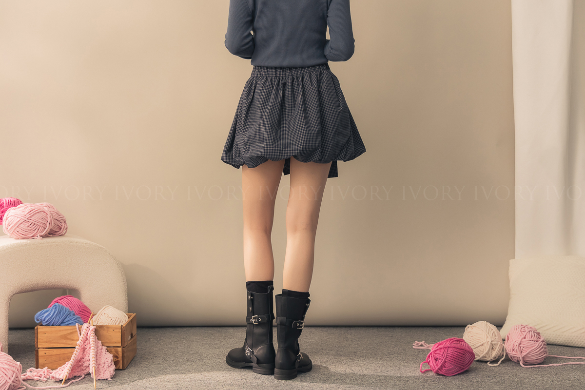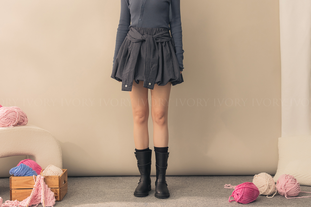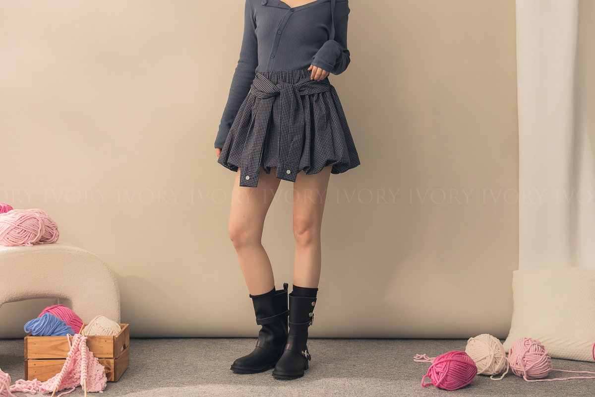 N51004假兩件式細格澎澎南瓜裙