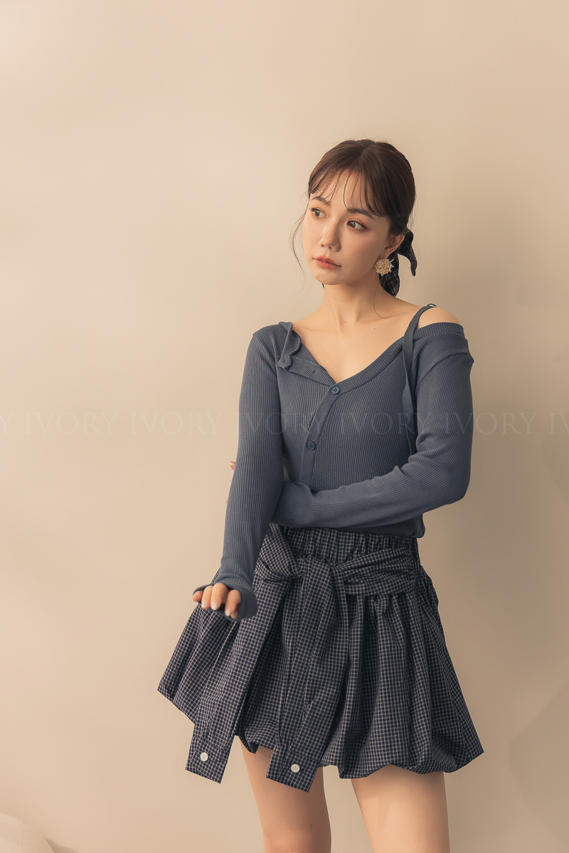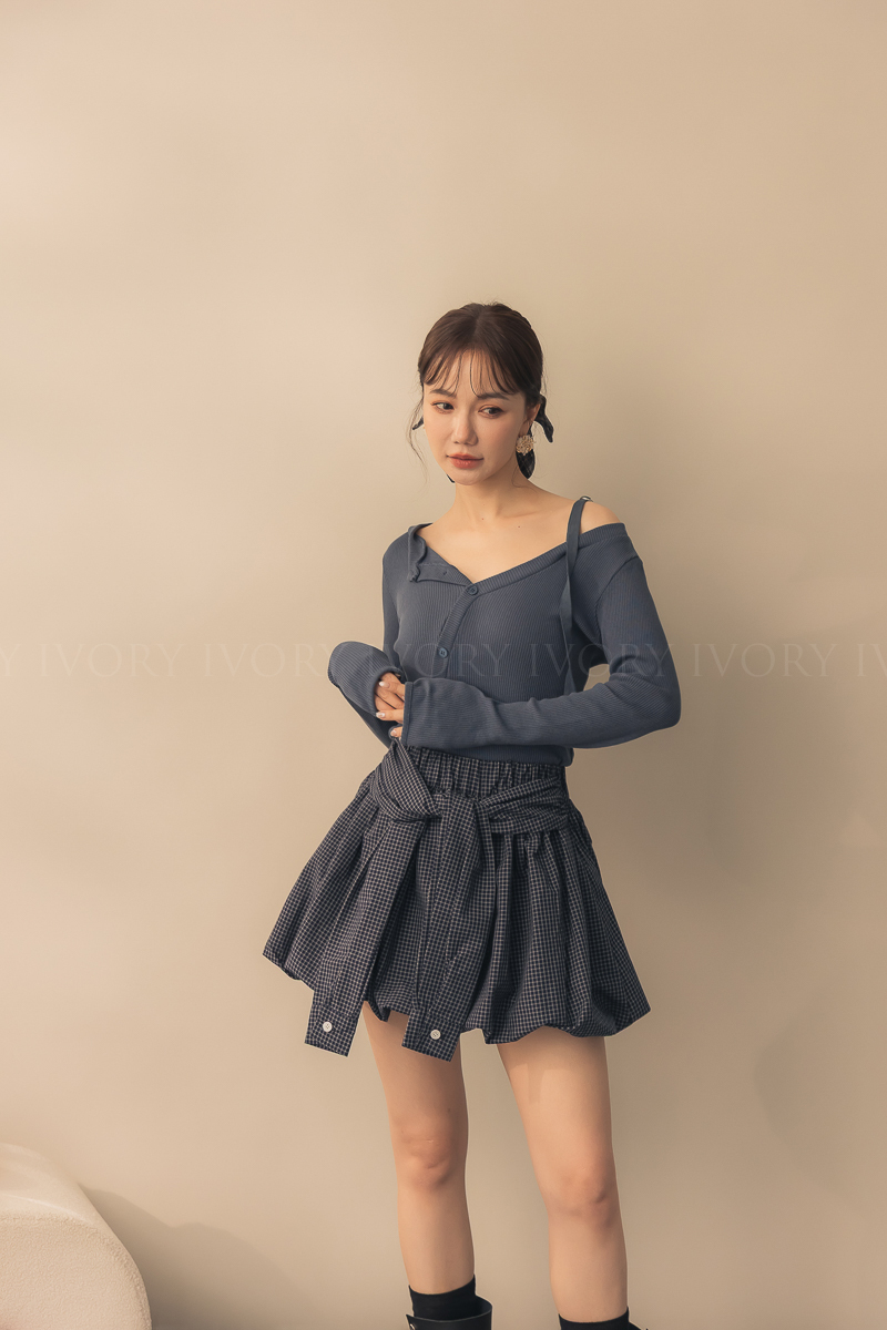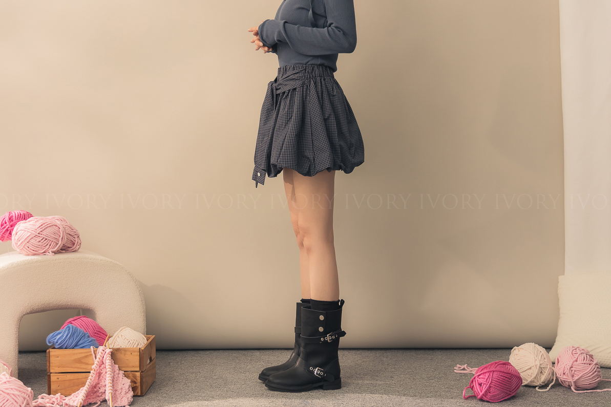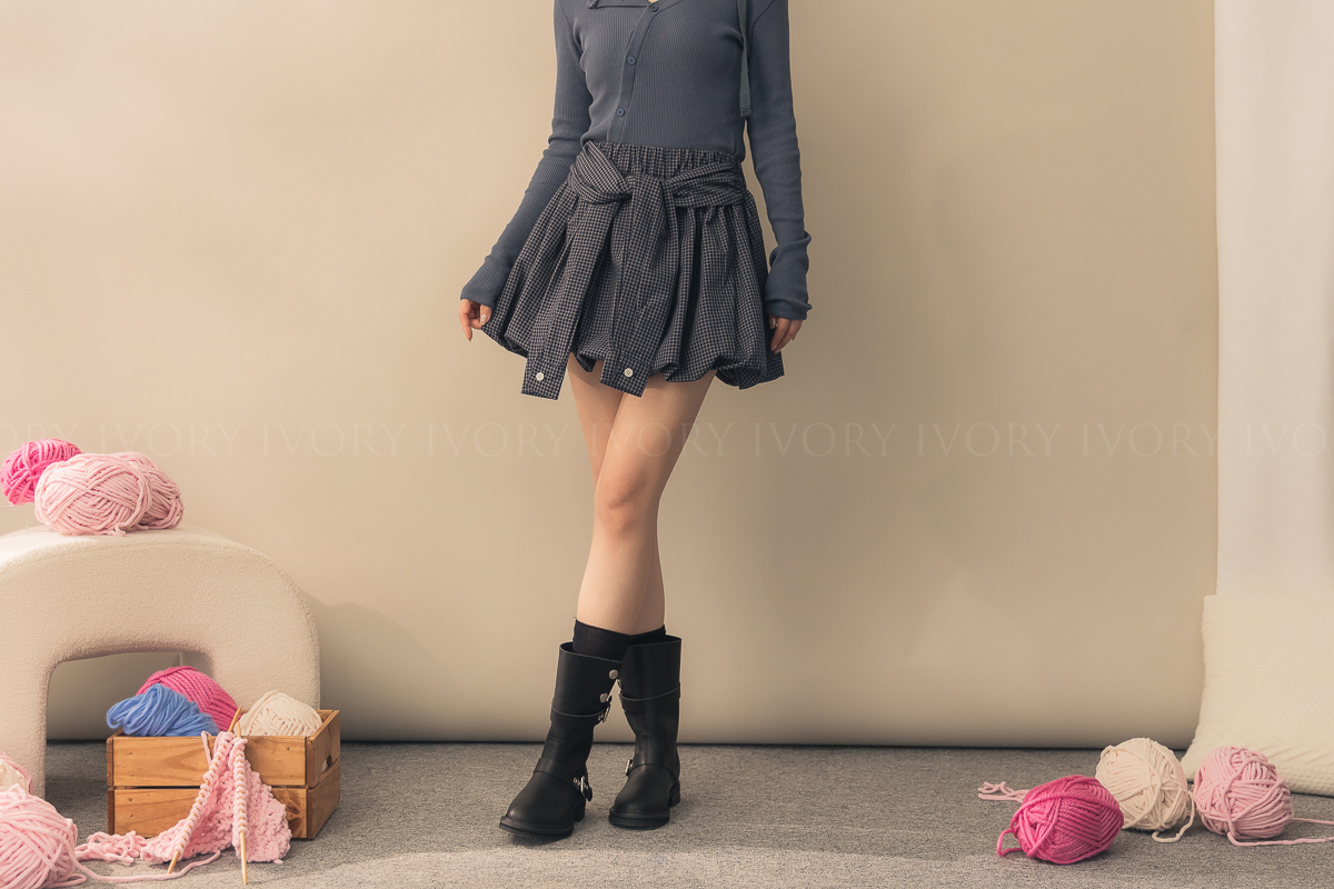 N51004假兩件式細格澎澎南瓜裙
