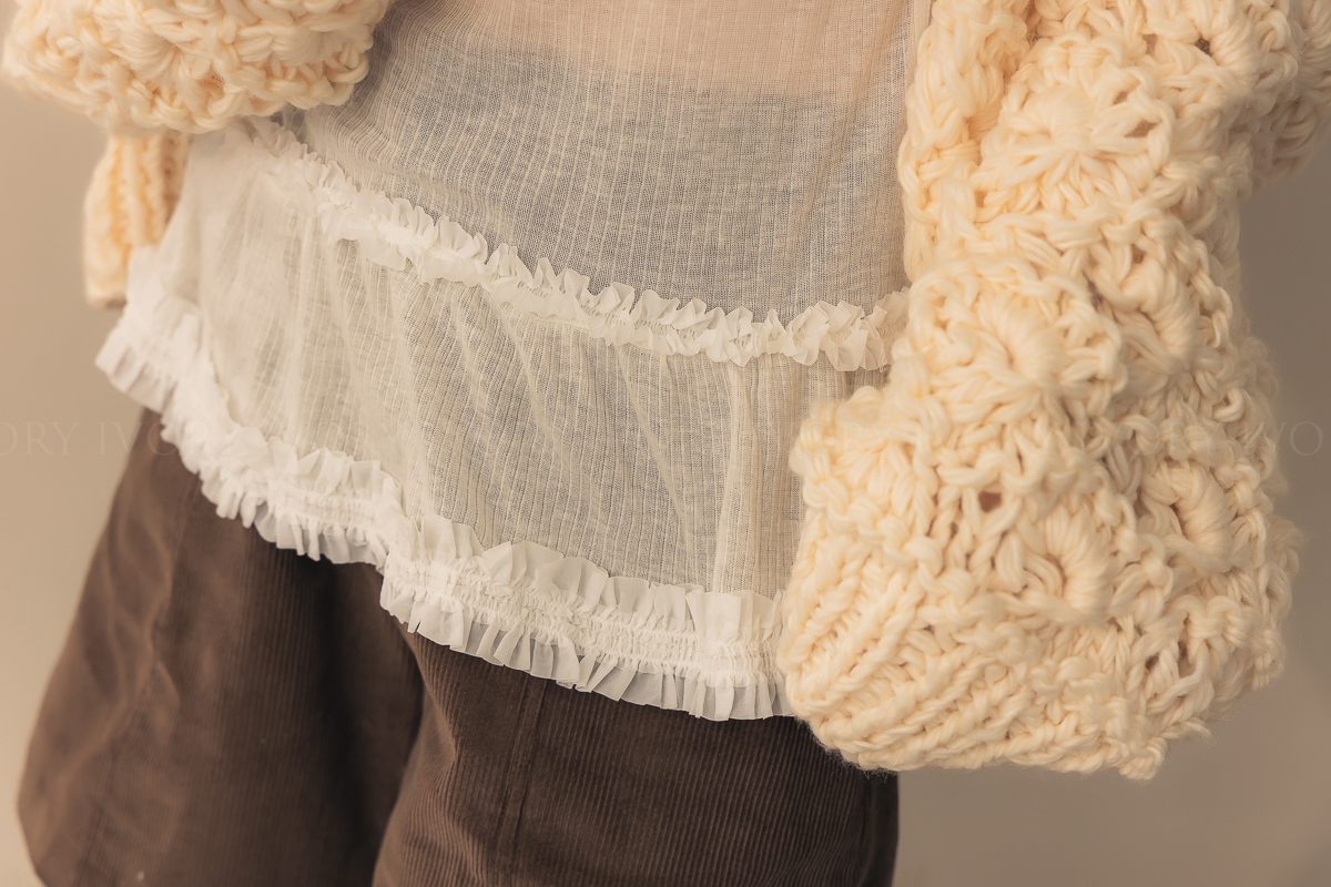 N51017設計款蛋糕荷葉滾邊長版小立領上衣