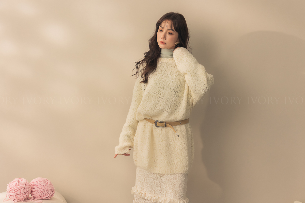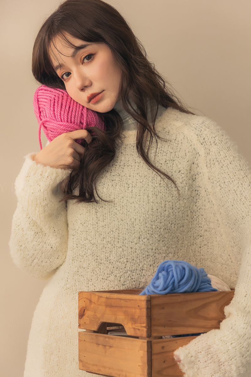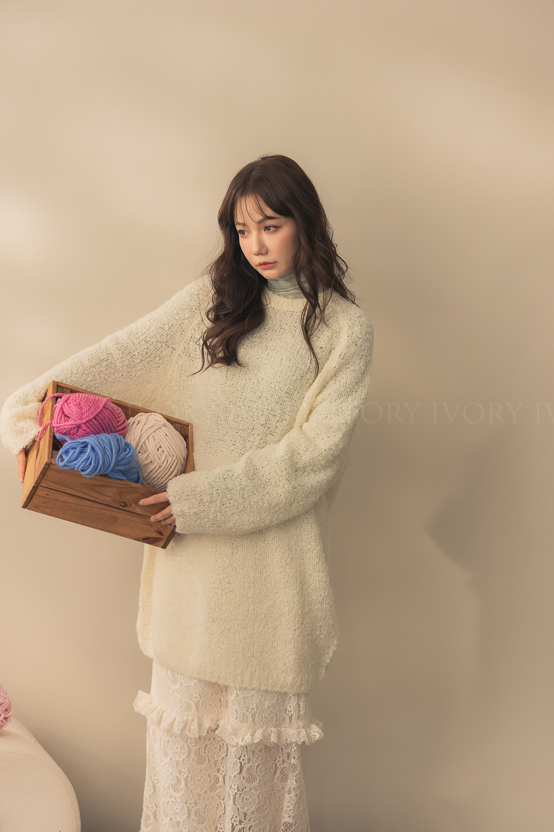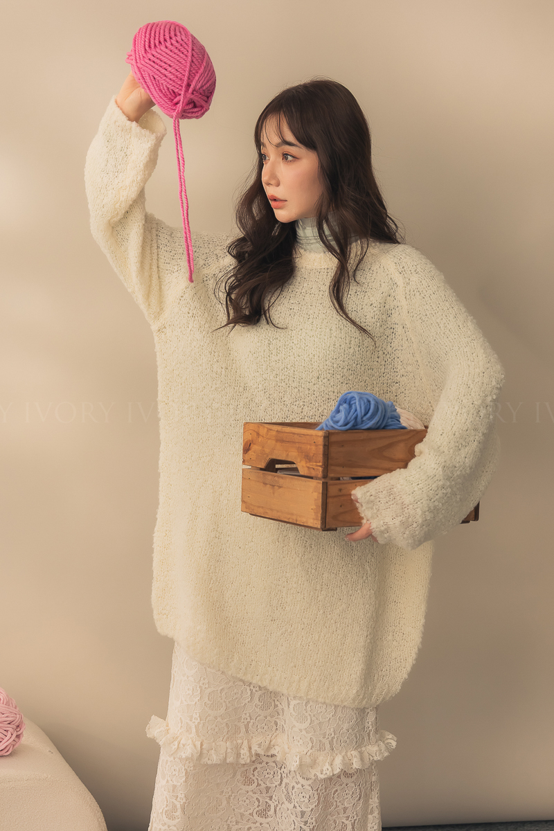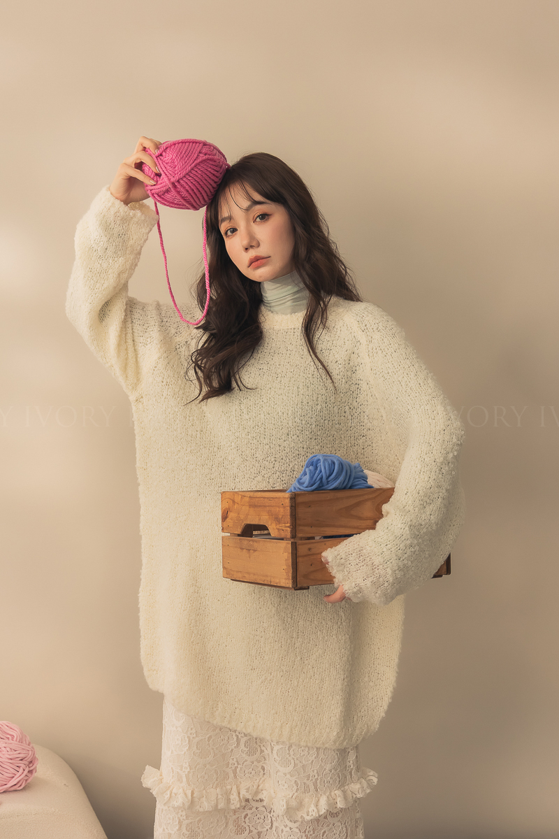 N51025雪花QQ毛oversize長版羊毛毛衣