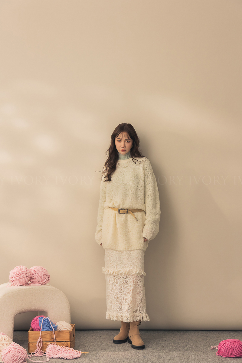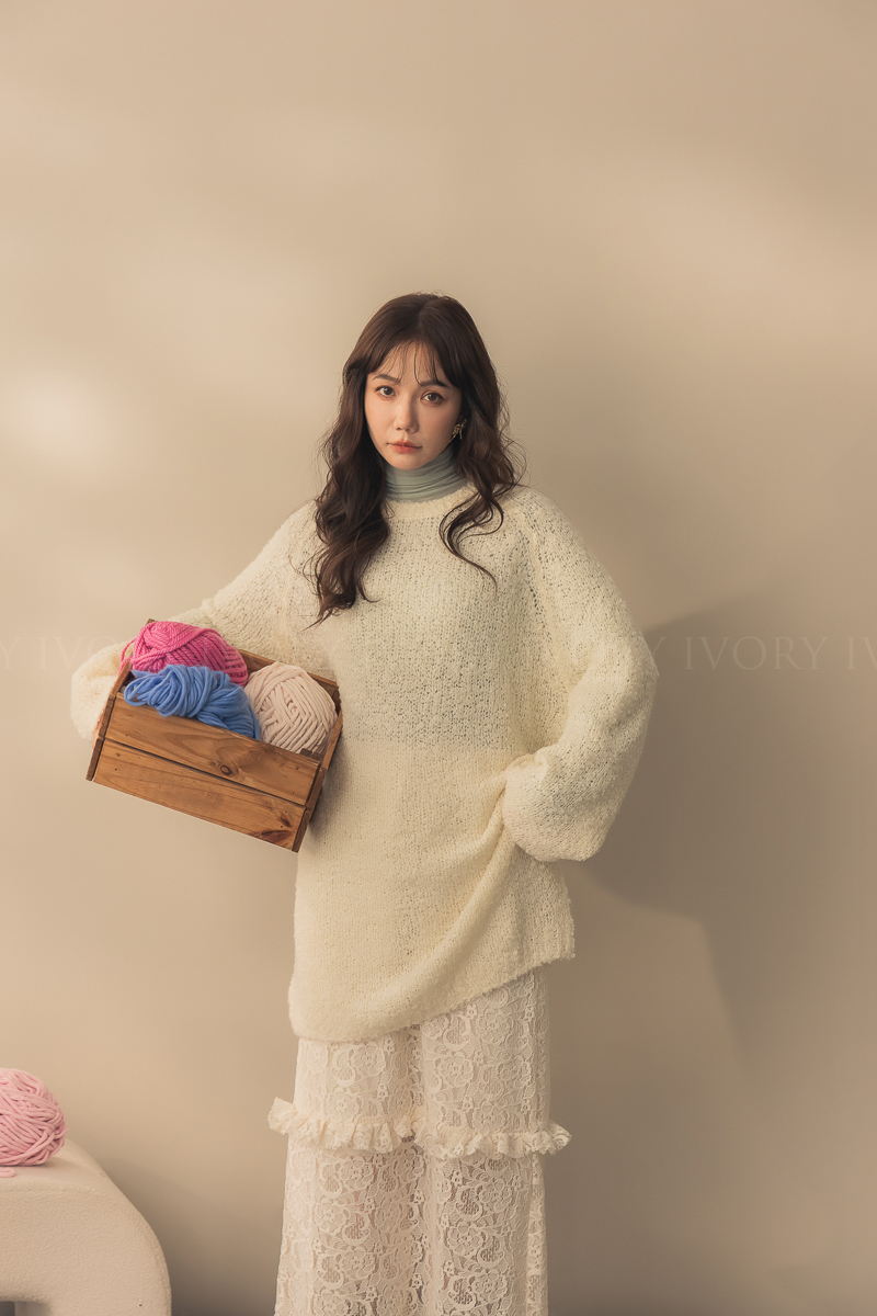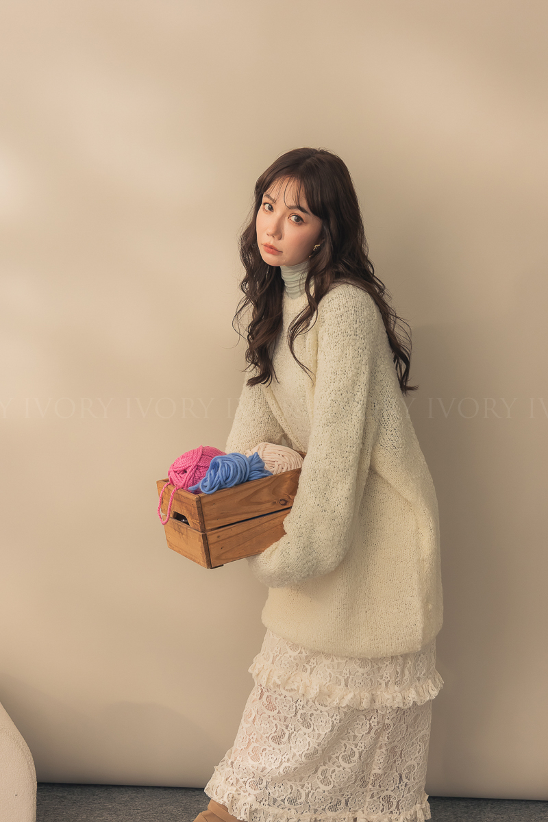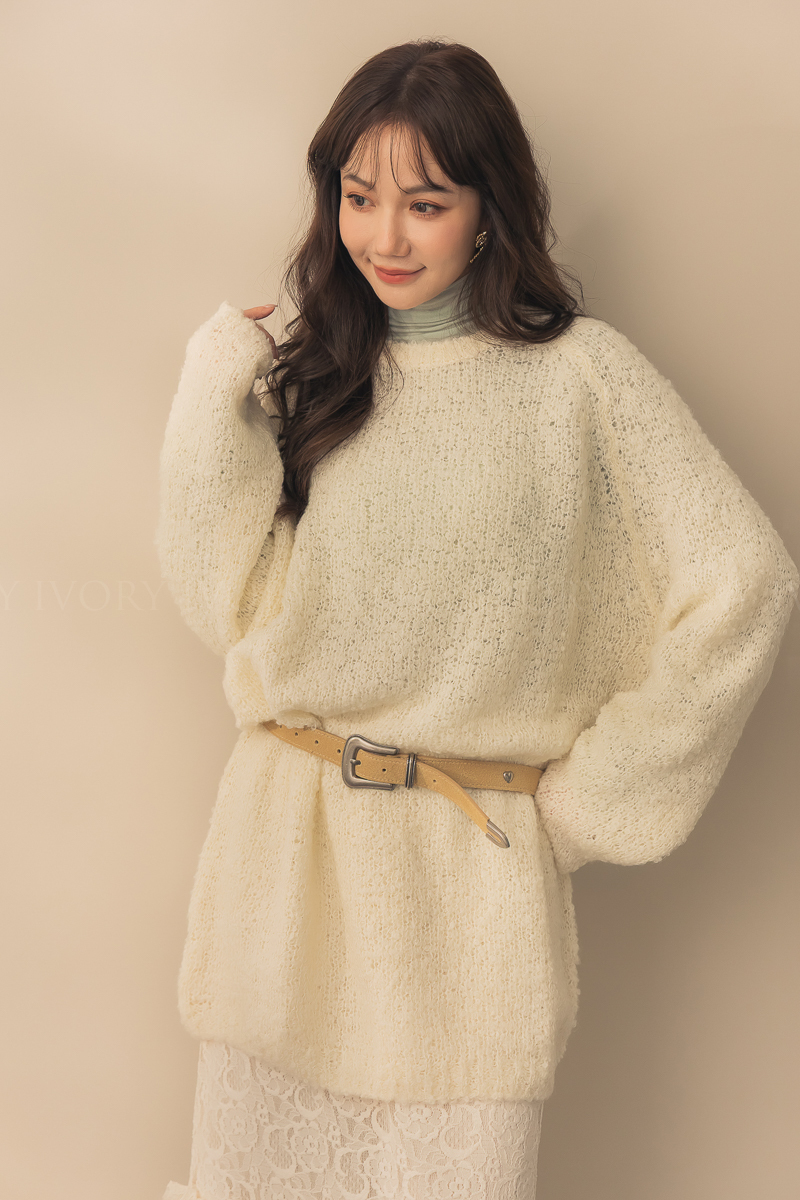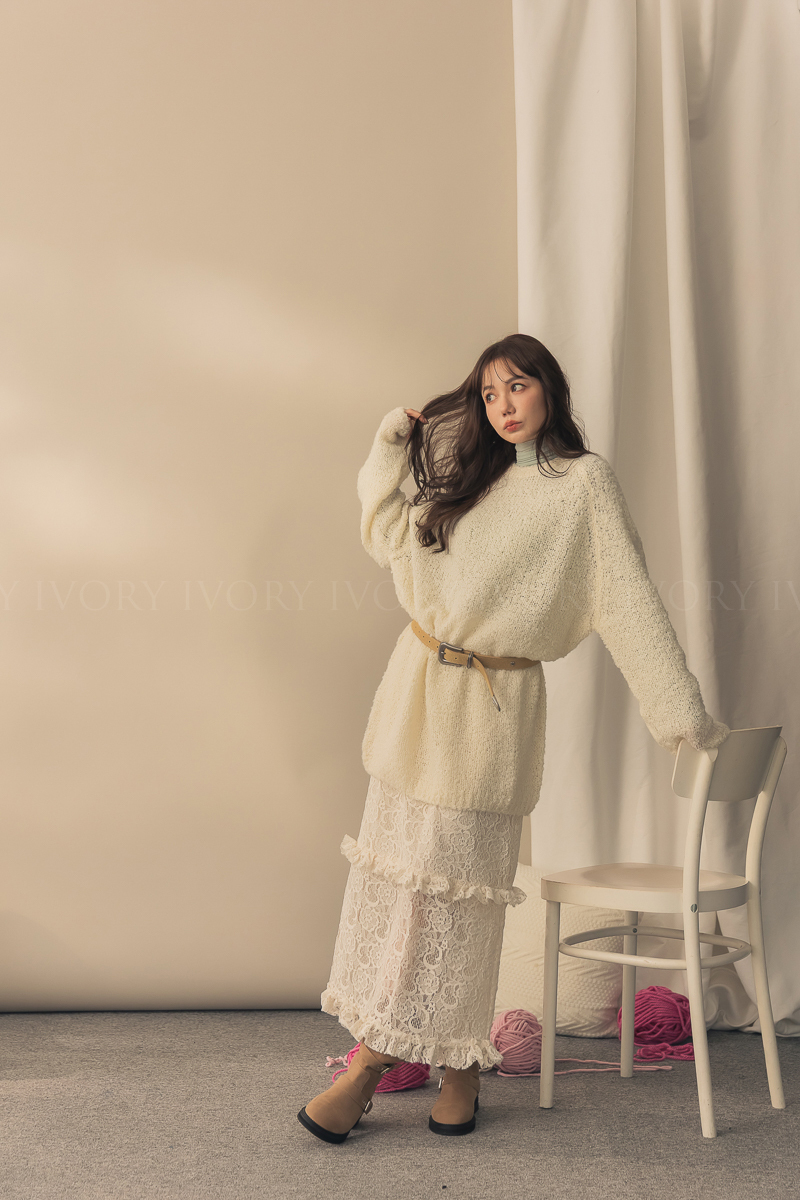 N51025雪花QQ毛oversize長版羊毛毛衣