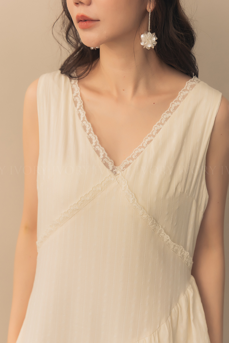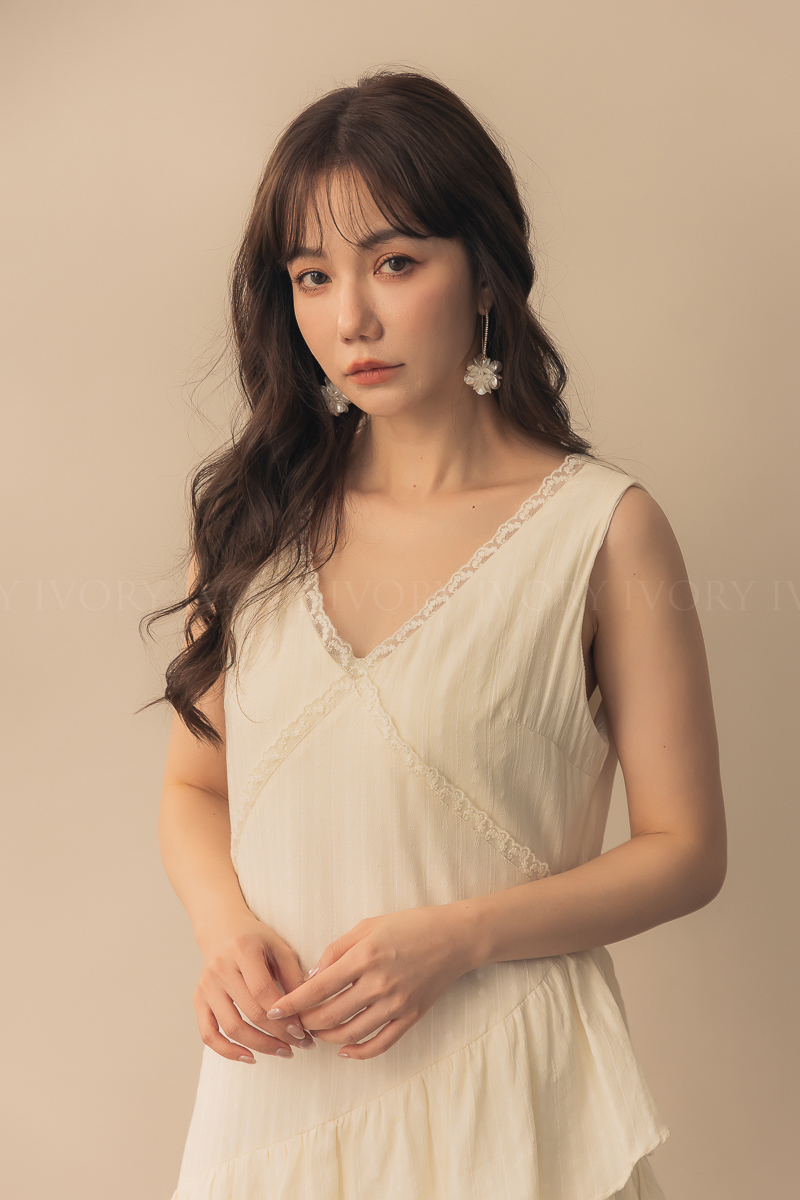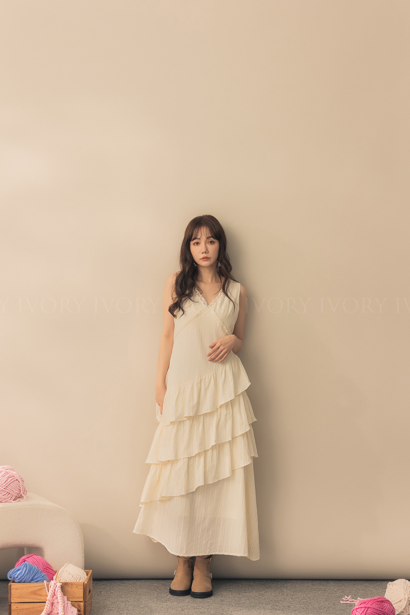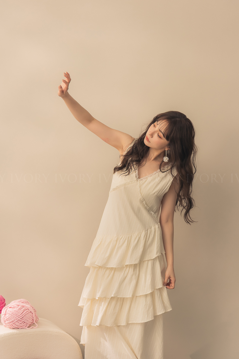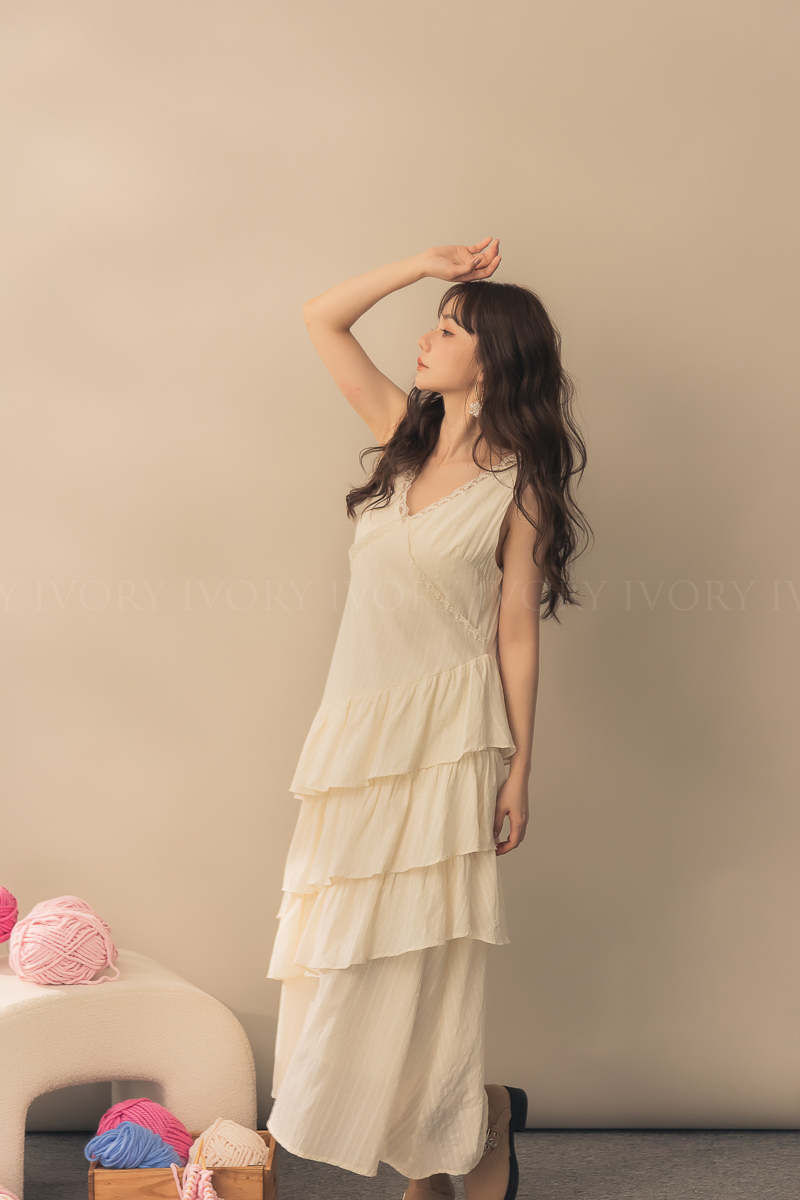 N51028小花圖騰刺繡斜襬荷葉長洋
