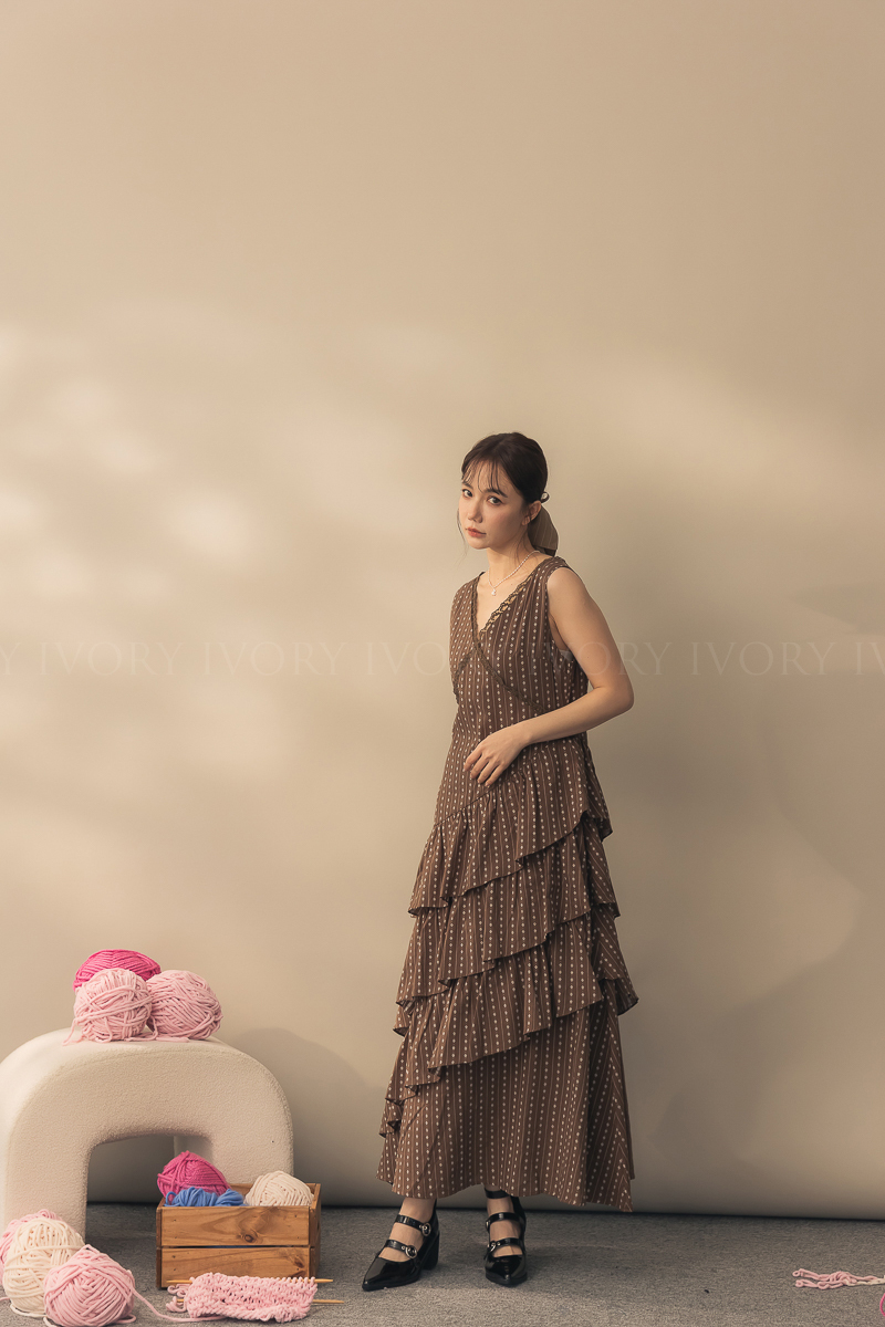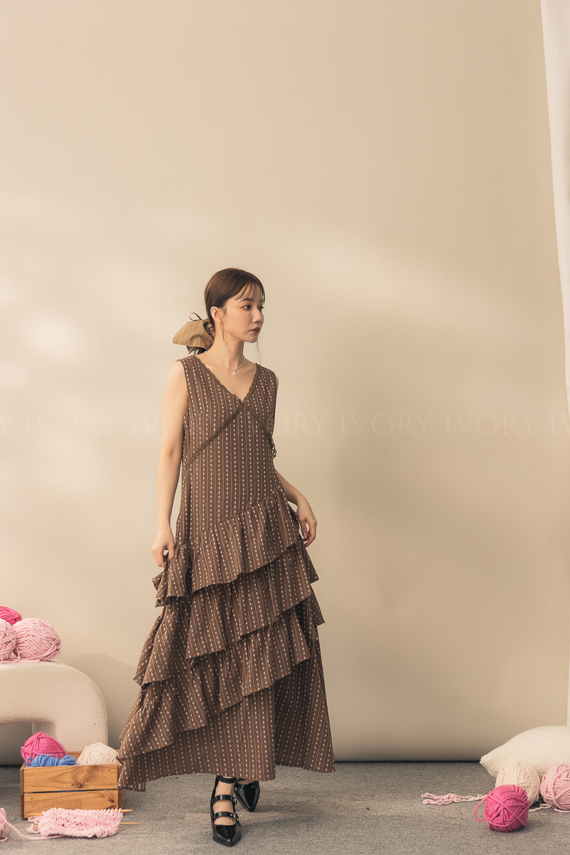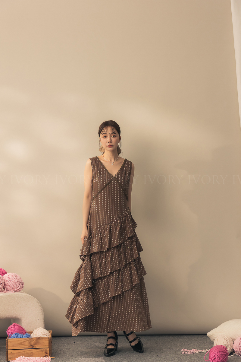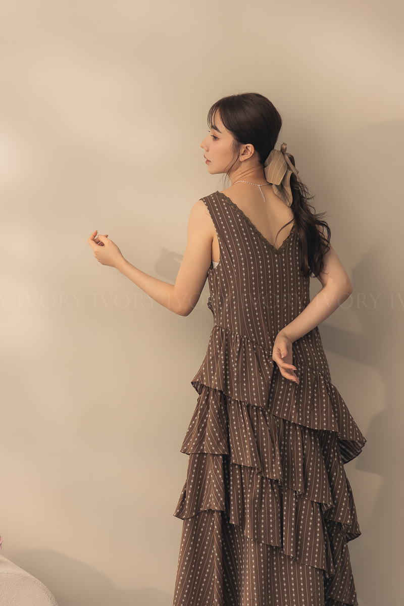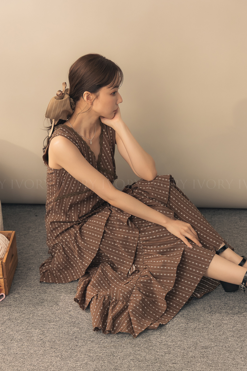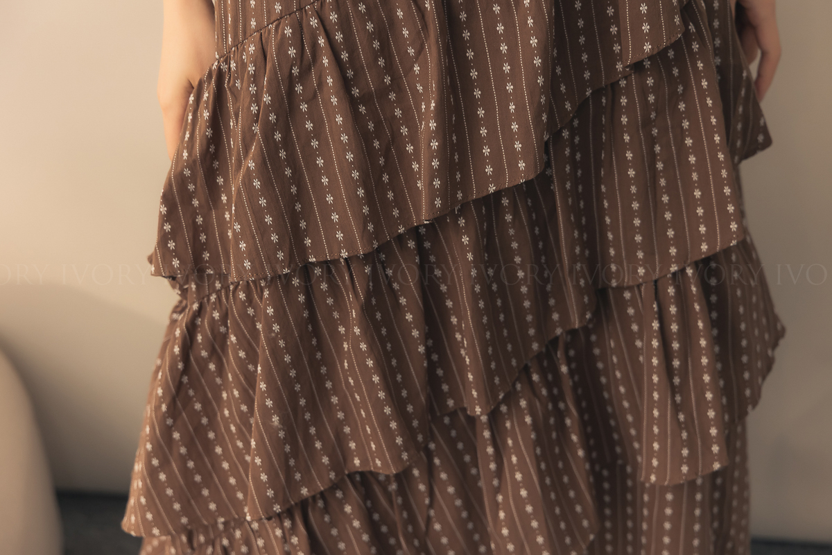 N51028小花圖騰刺繡斜襬荷葉長洋
