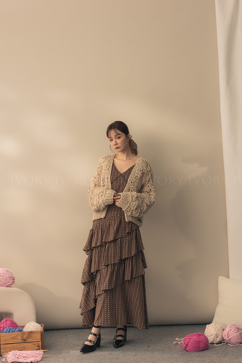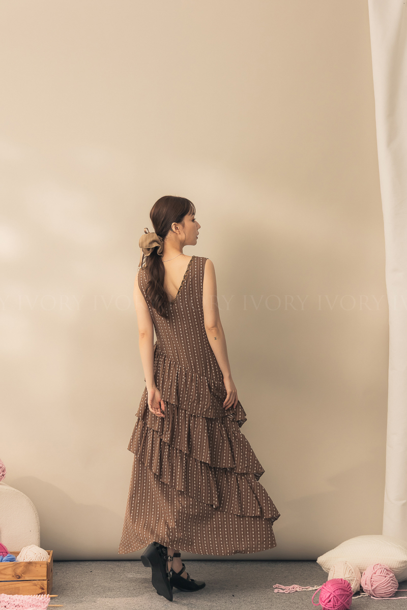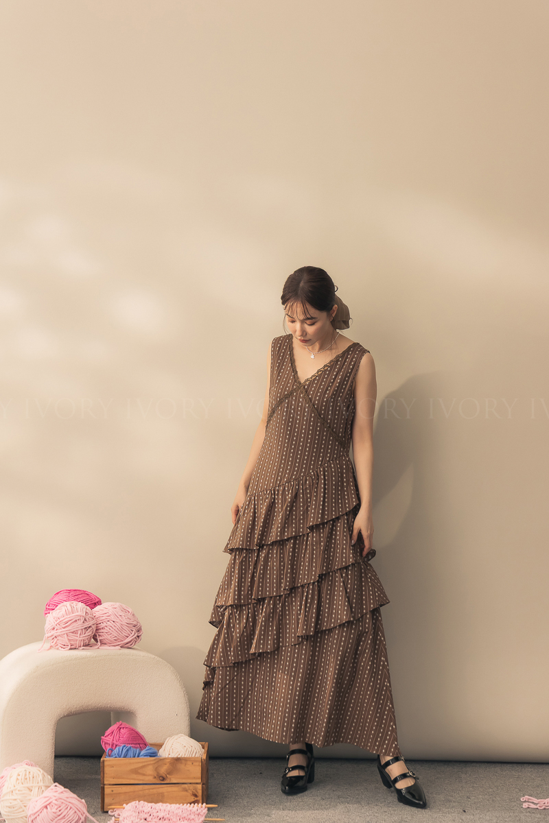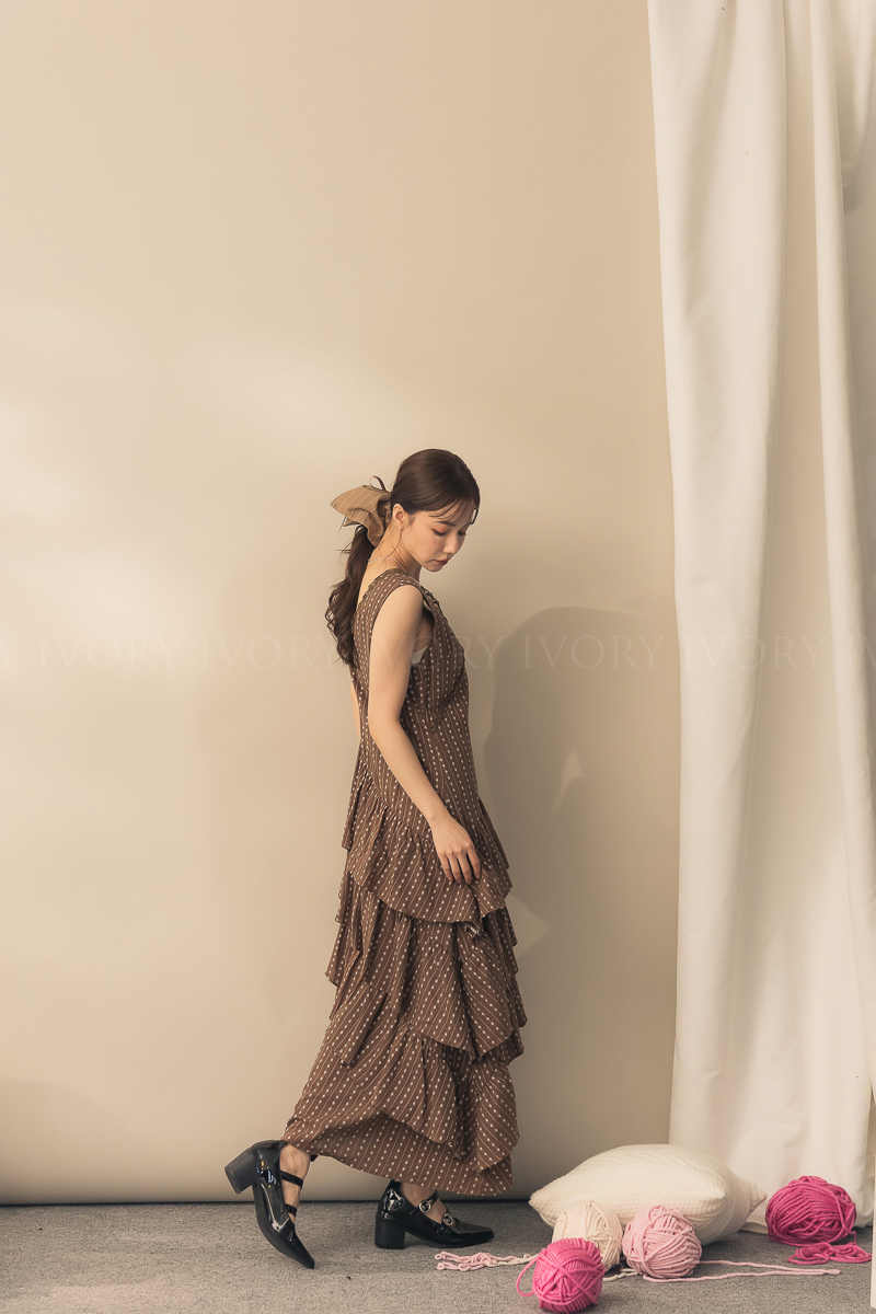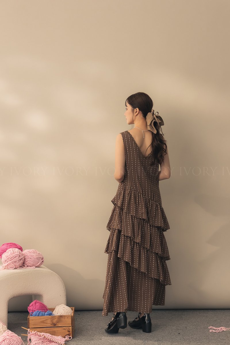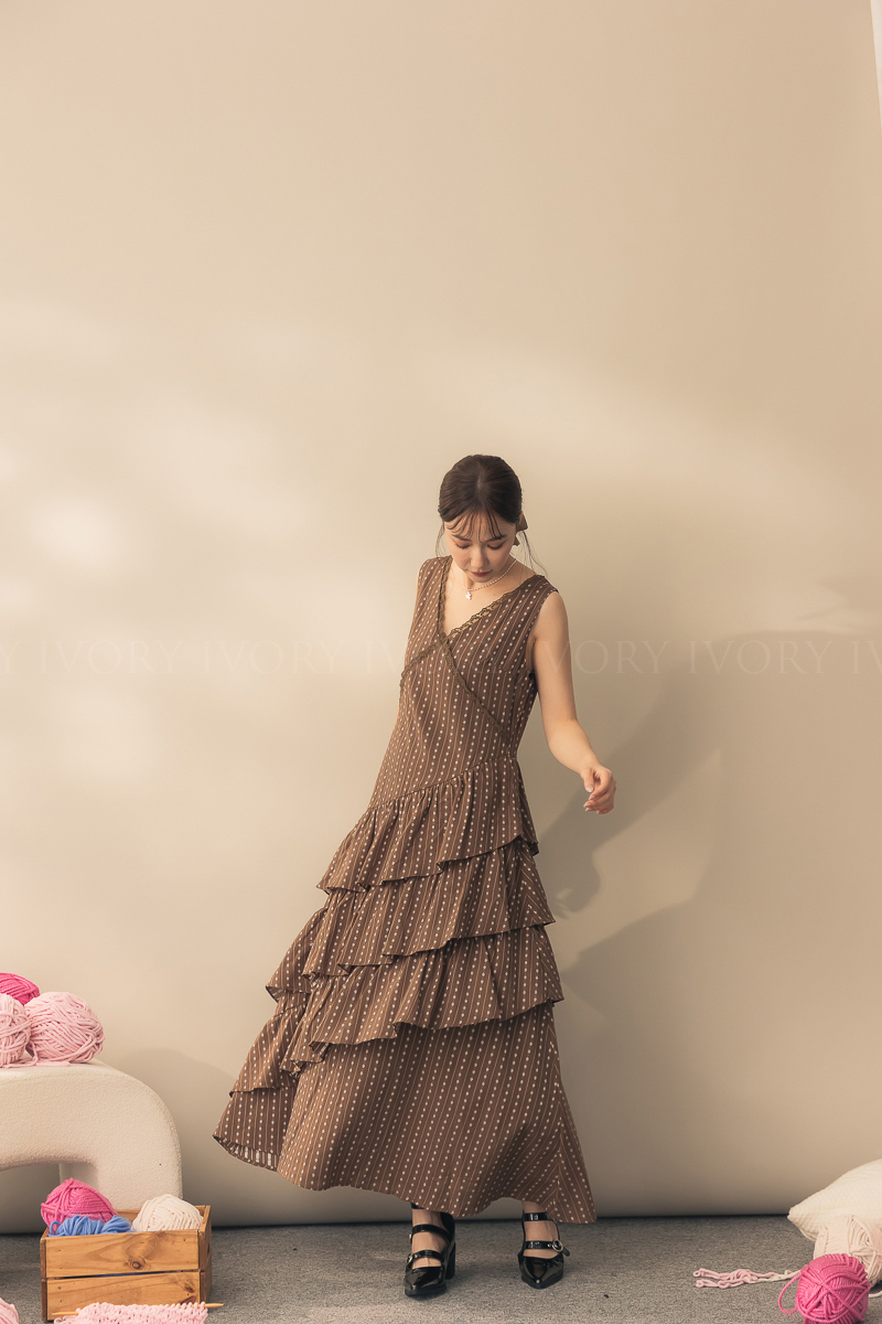 N51028小花圖騰刺繡斜襬荷葉長洋