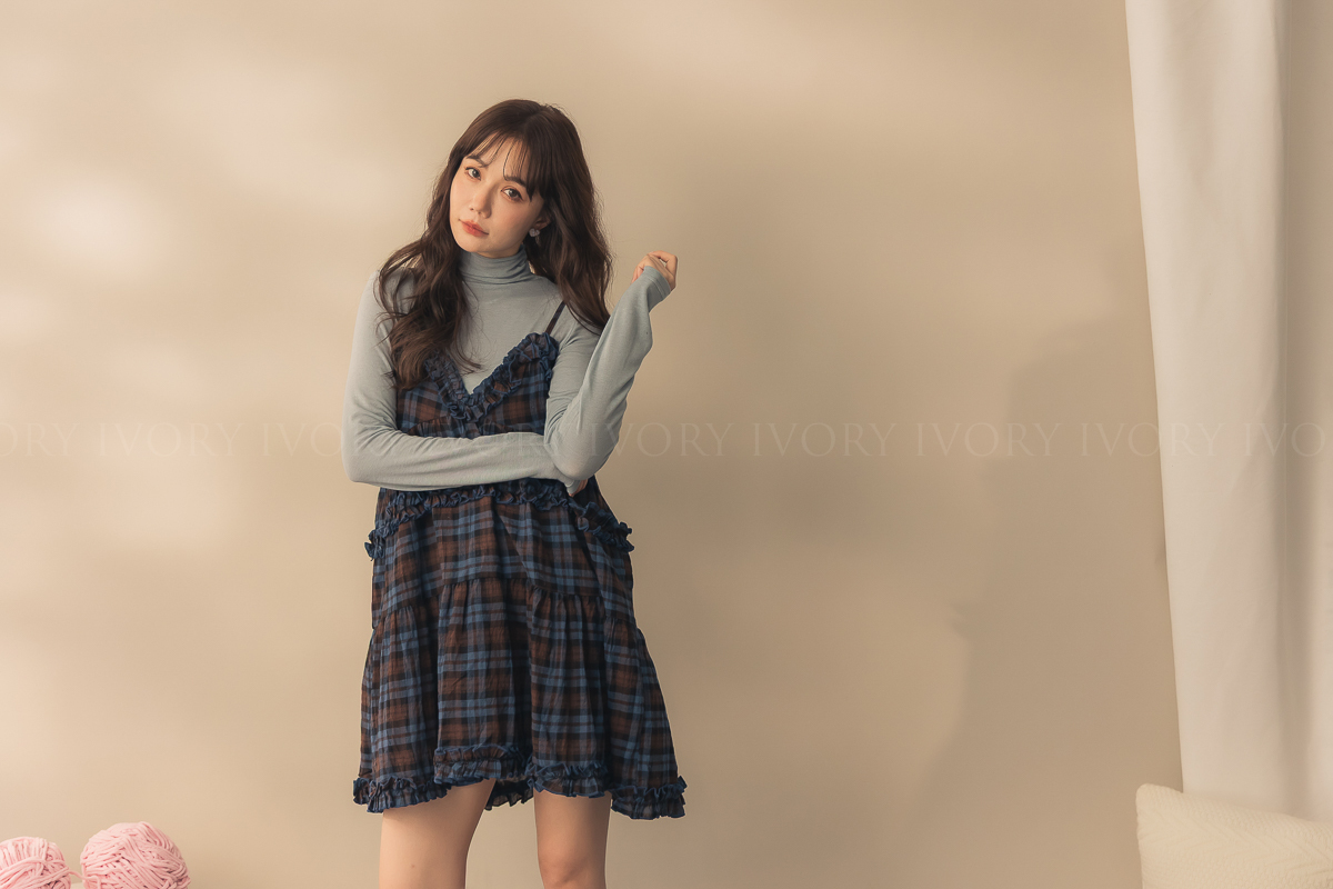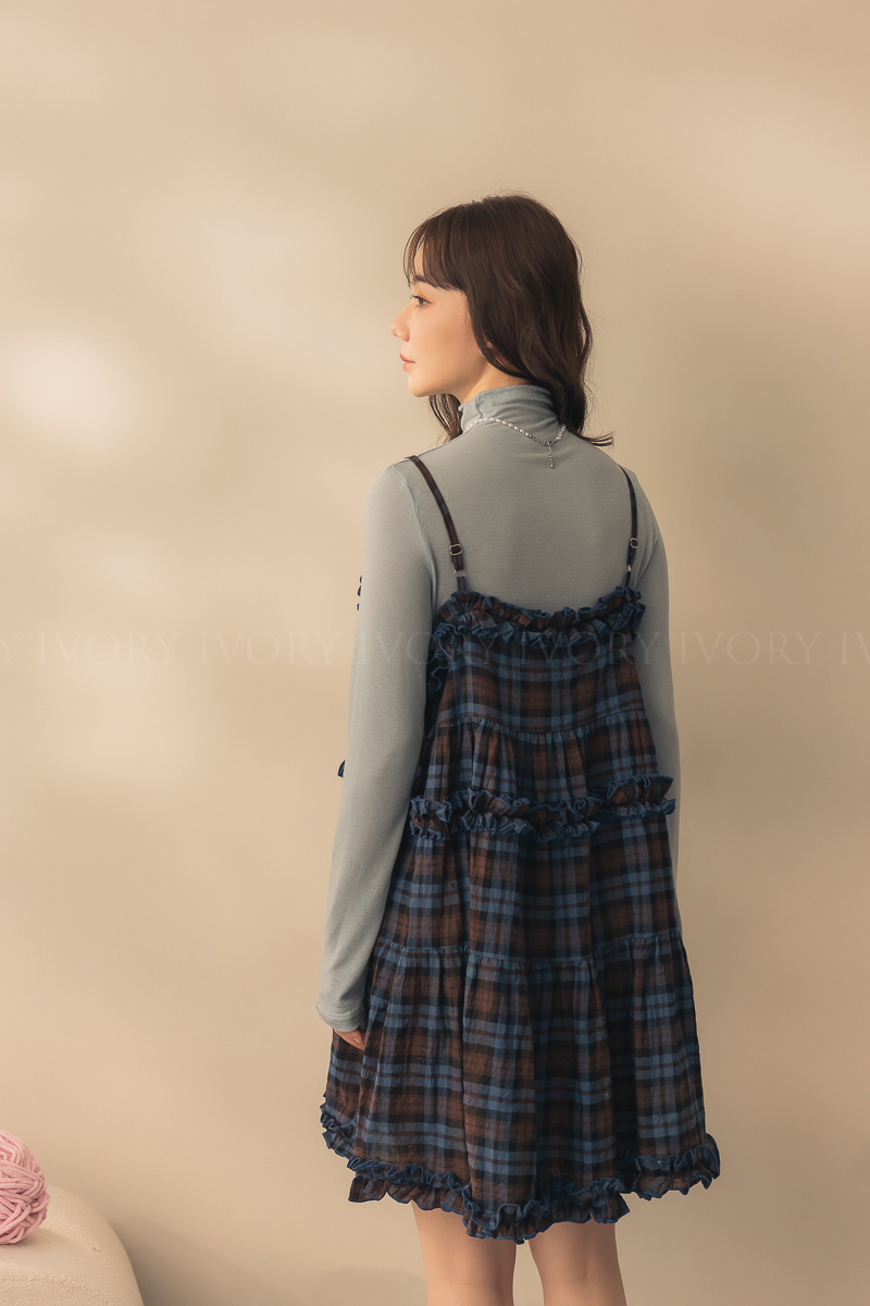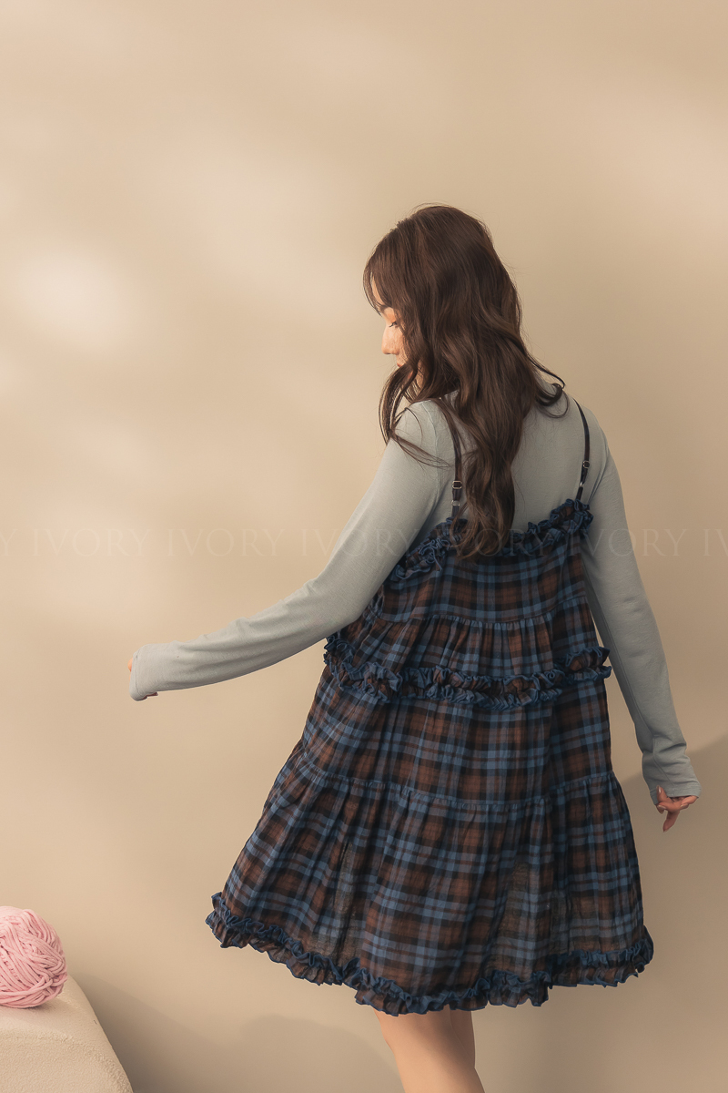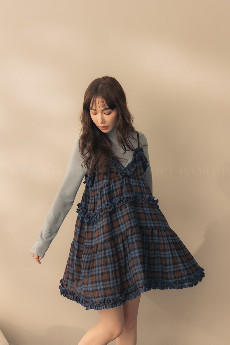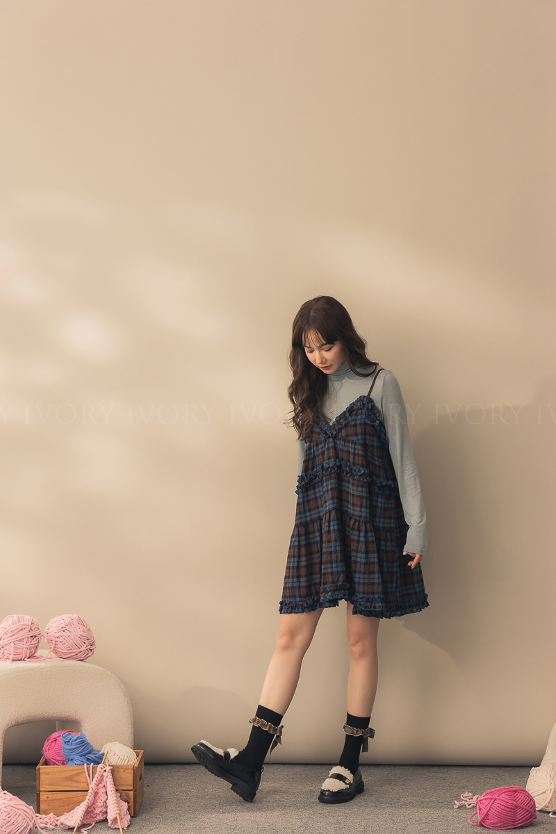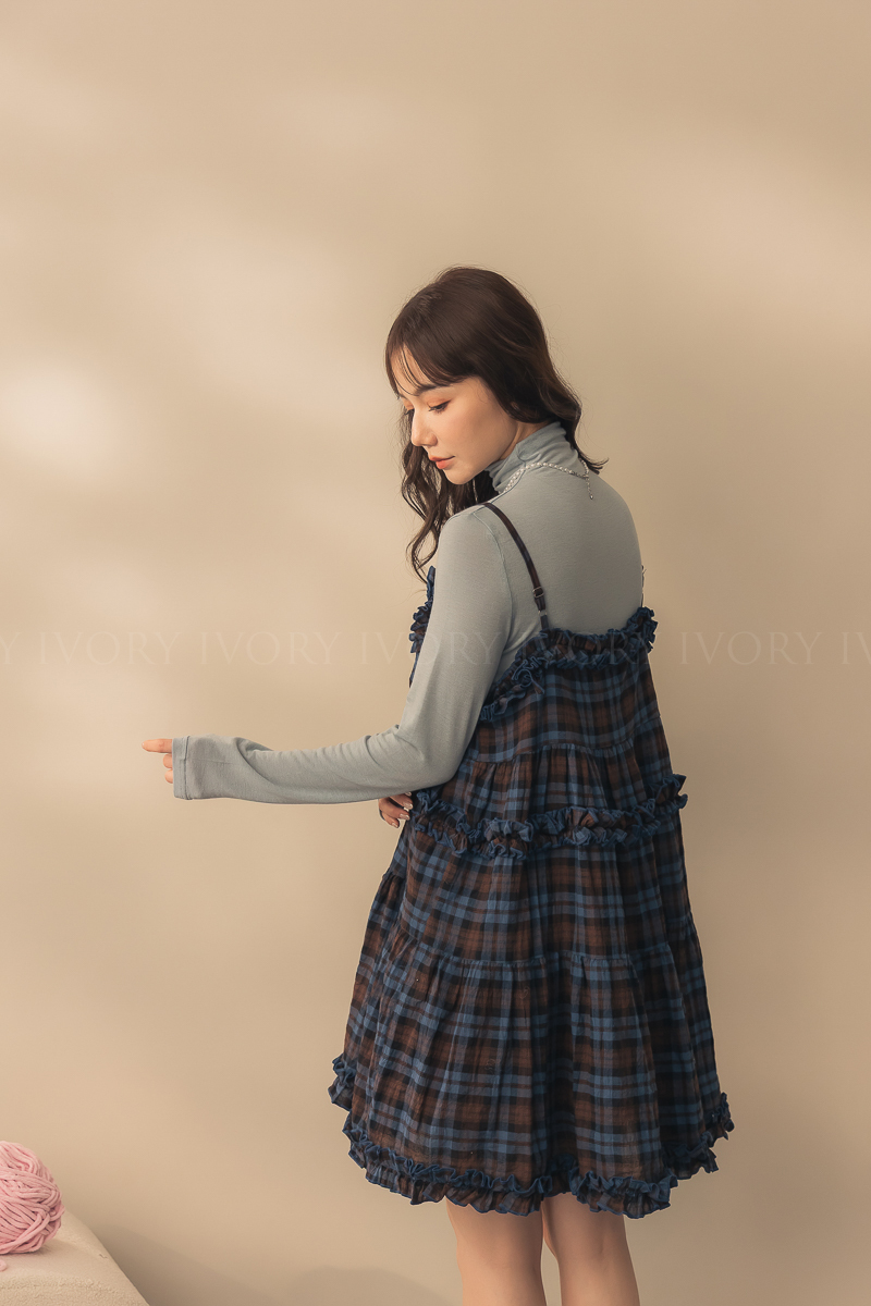 N51033英倫風荷葉滾邊格紋小短洋