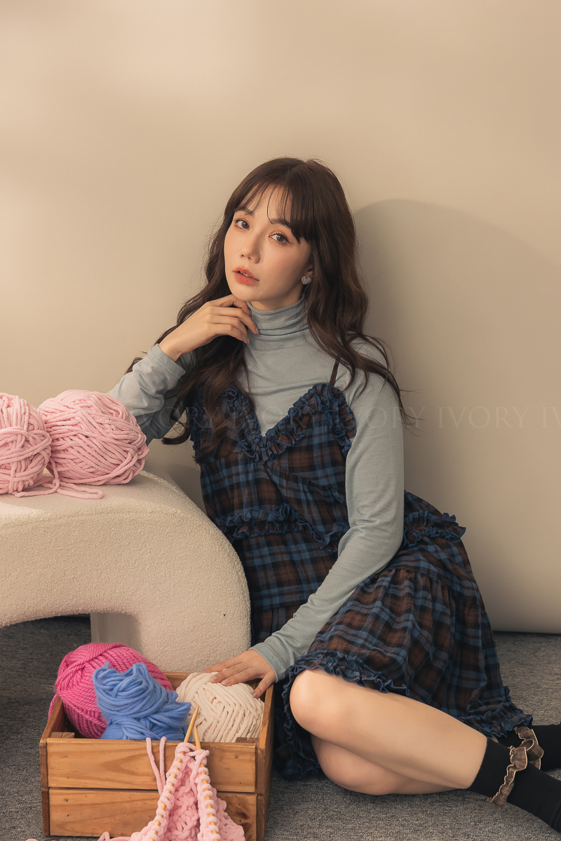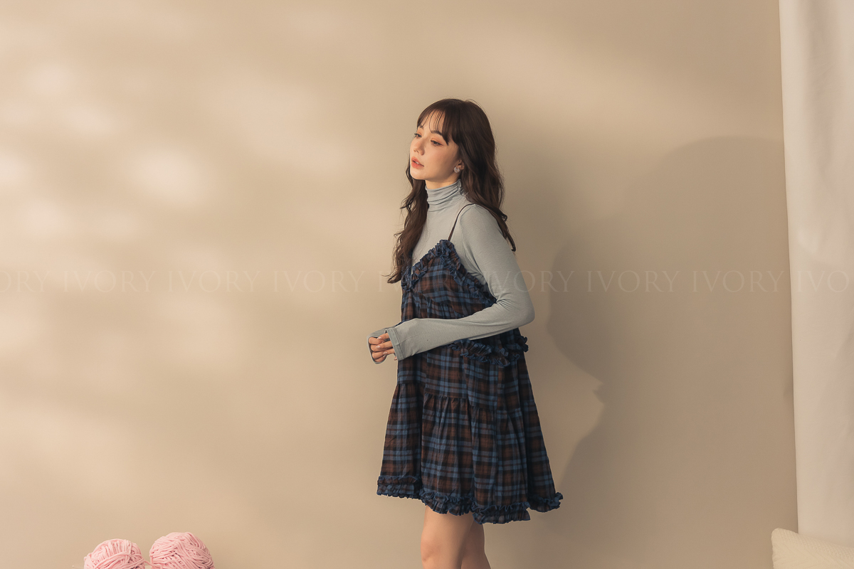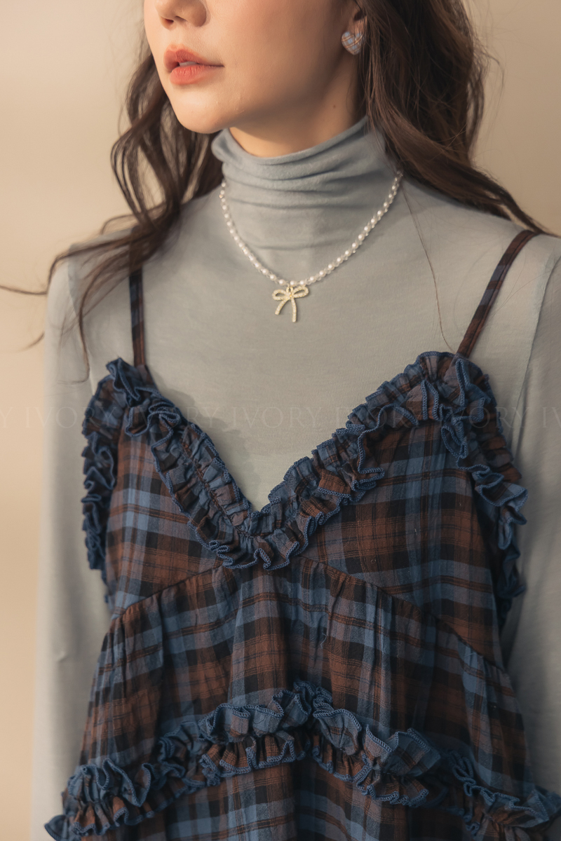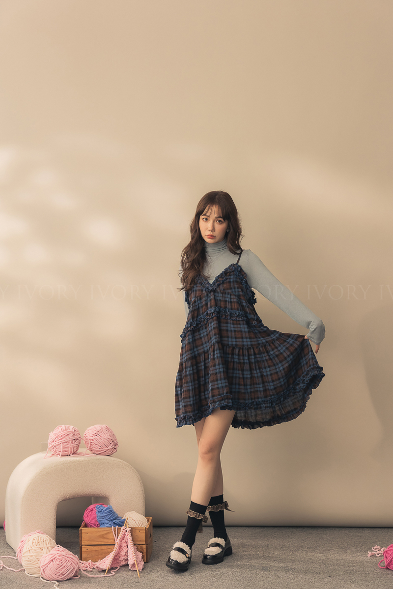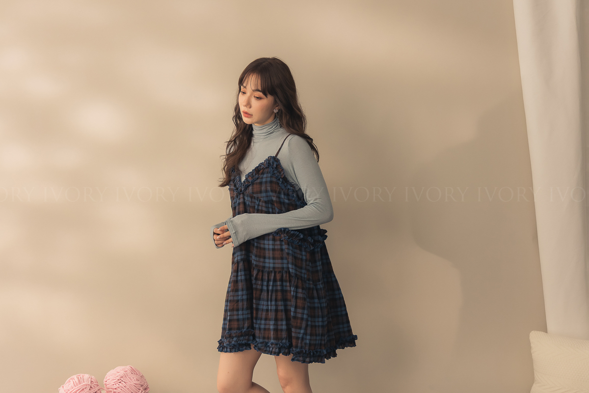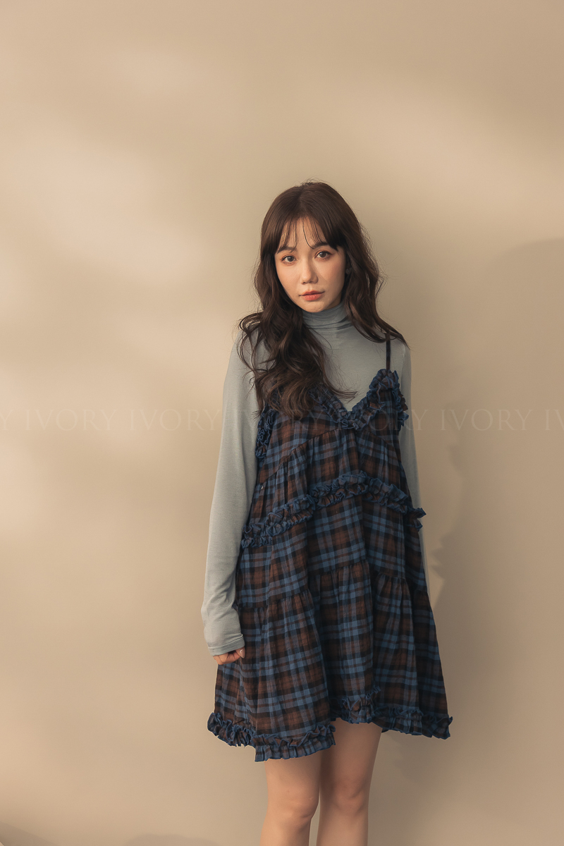 N51033英倫風荷葉滾邊格紋小短洋
