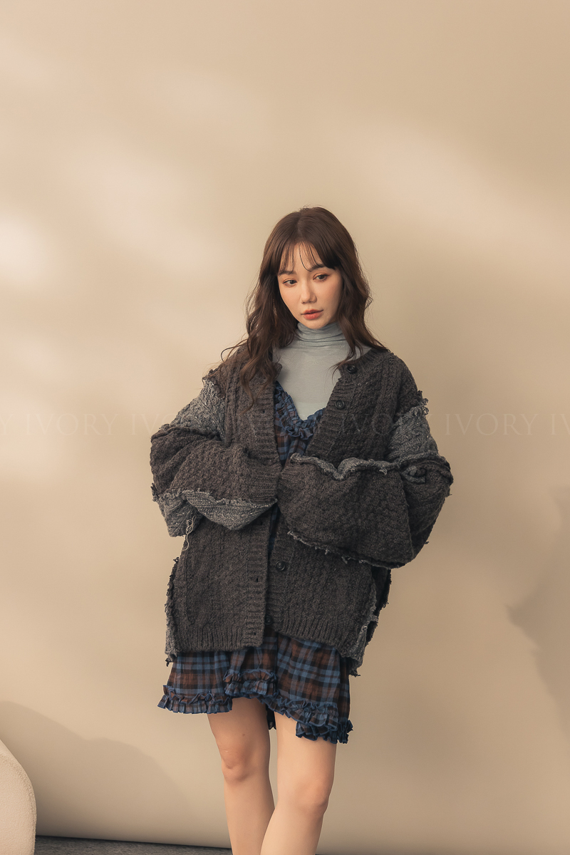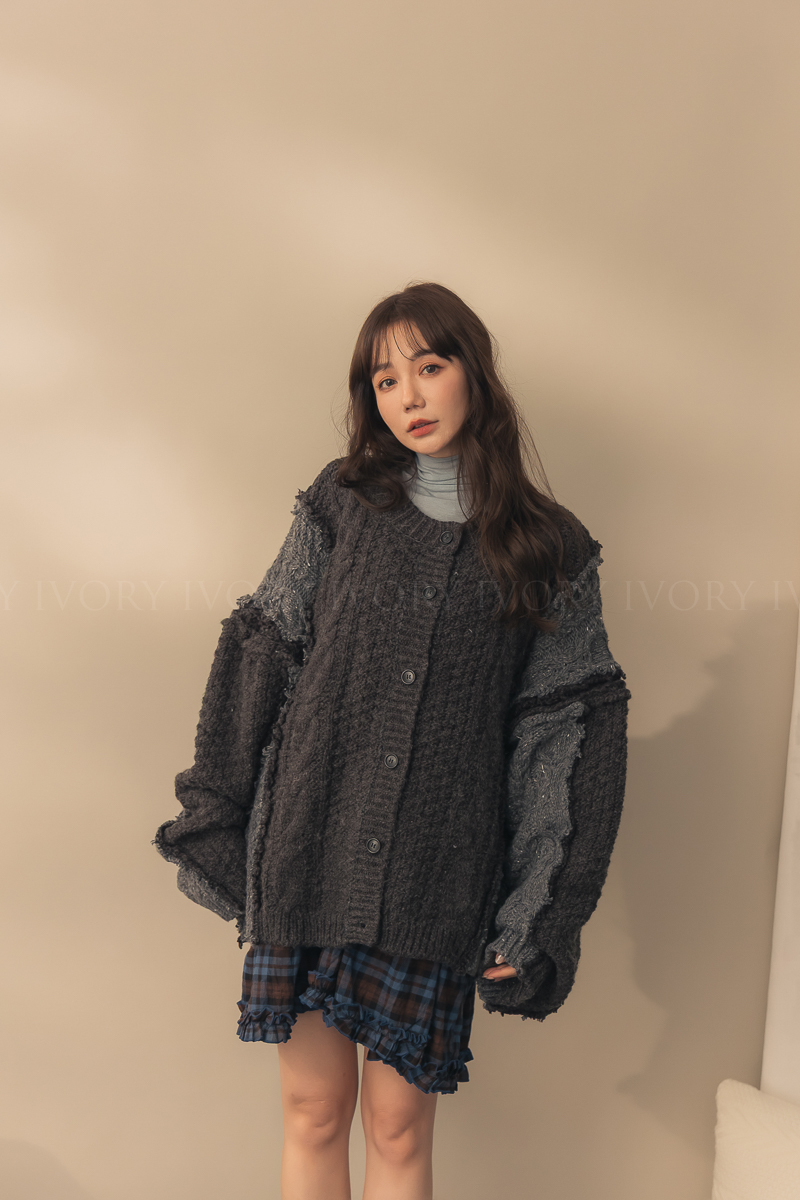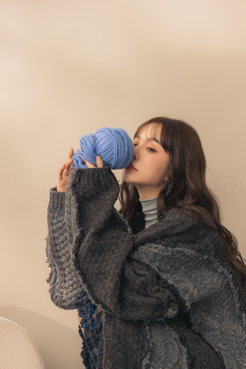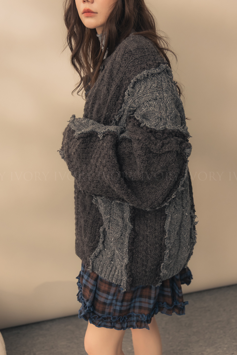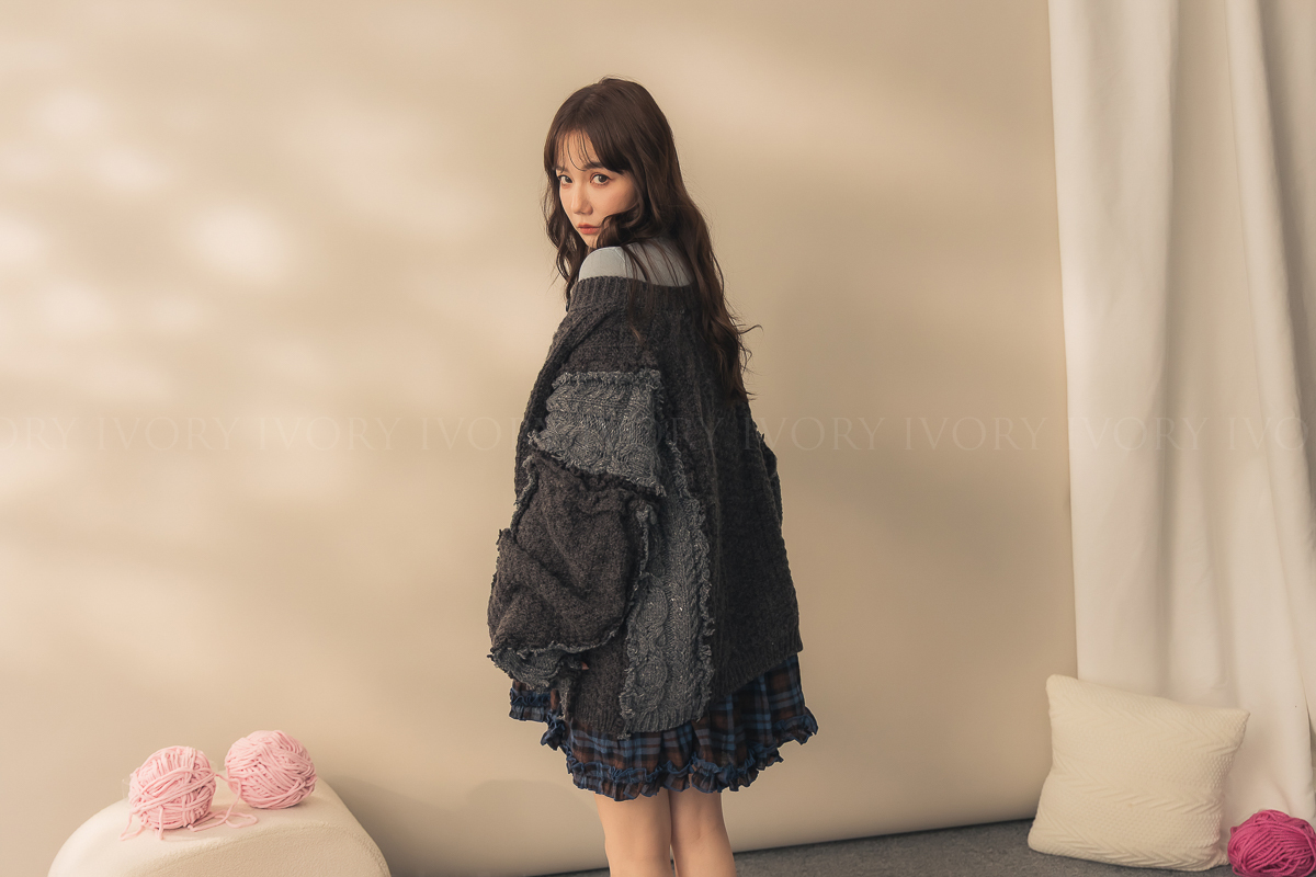 N51042異材質拼接感麻花編織羊毛外套< Kimy清單>