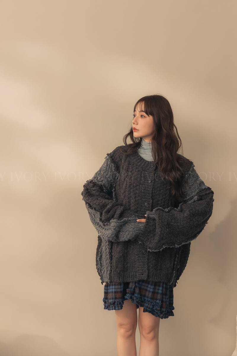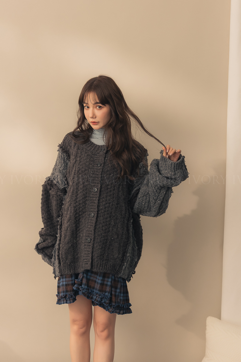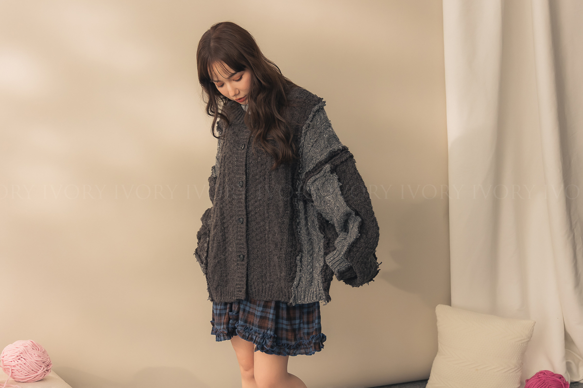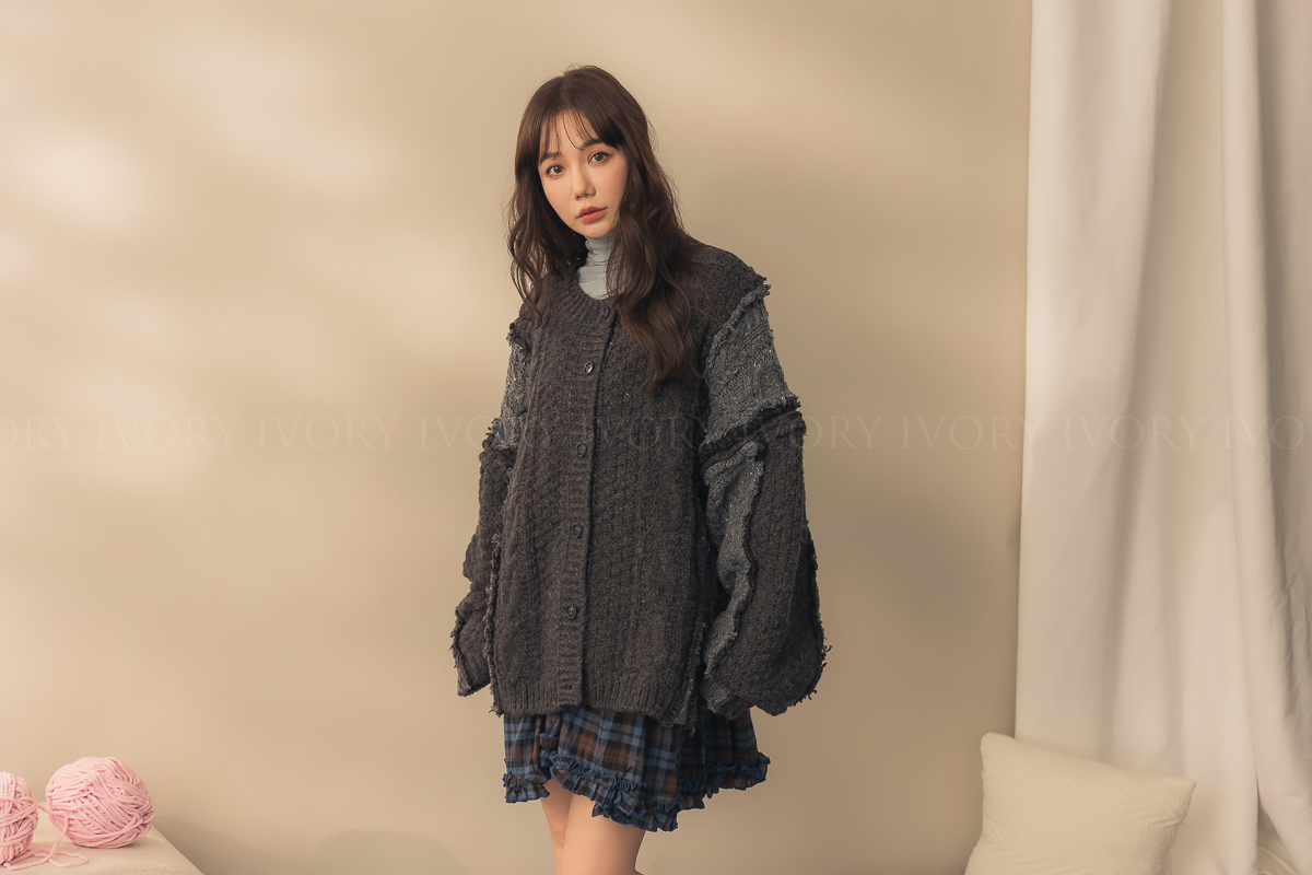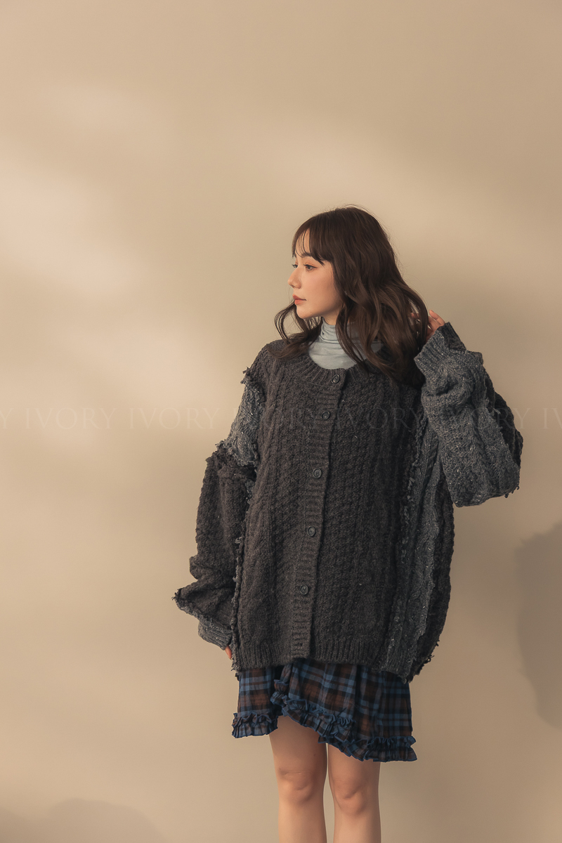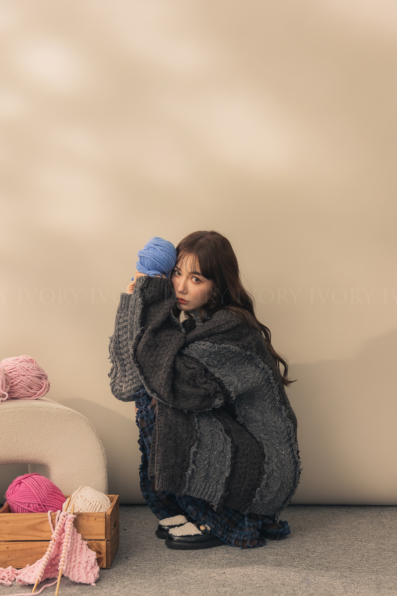 N51042異材質拼接感麻花編織羊毛外套< Kimy清單>