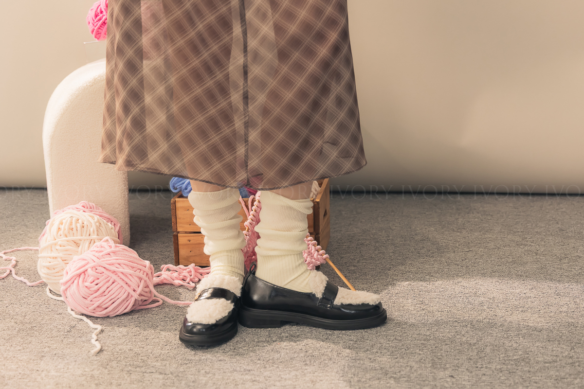 N51054勾針款素面百搭泡泡襪