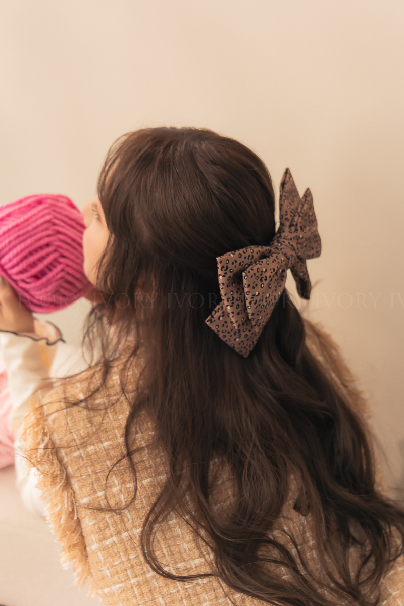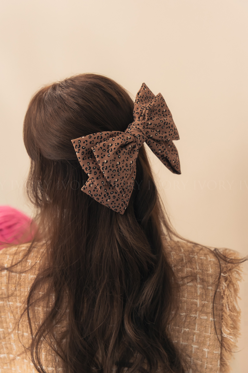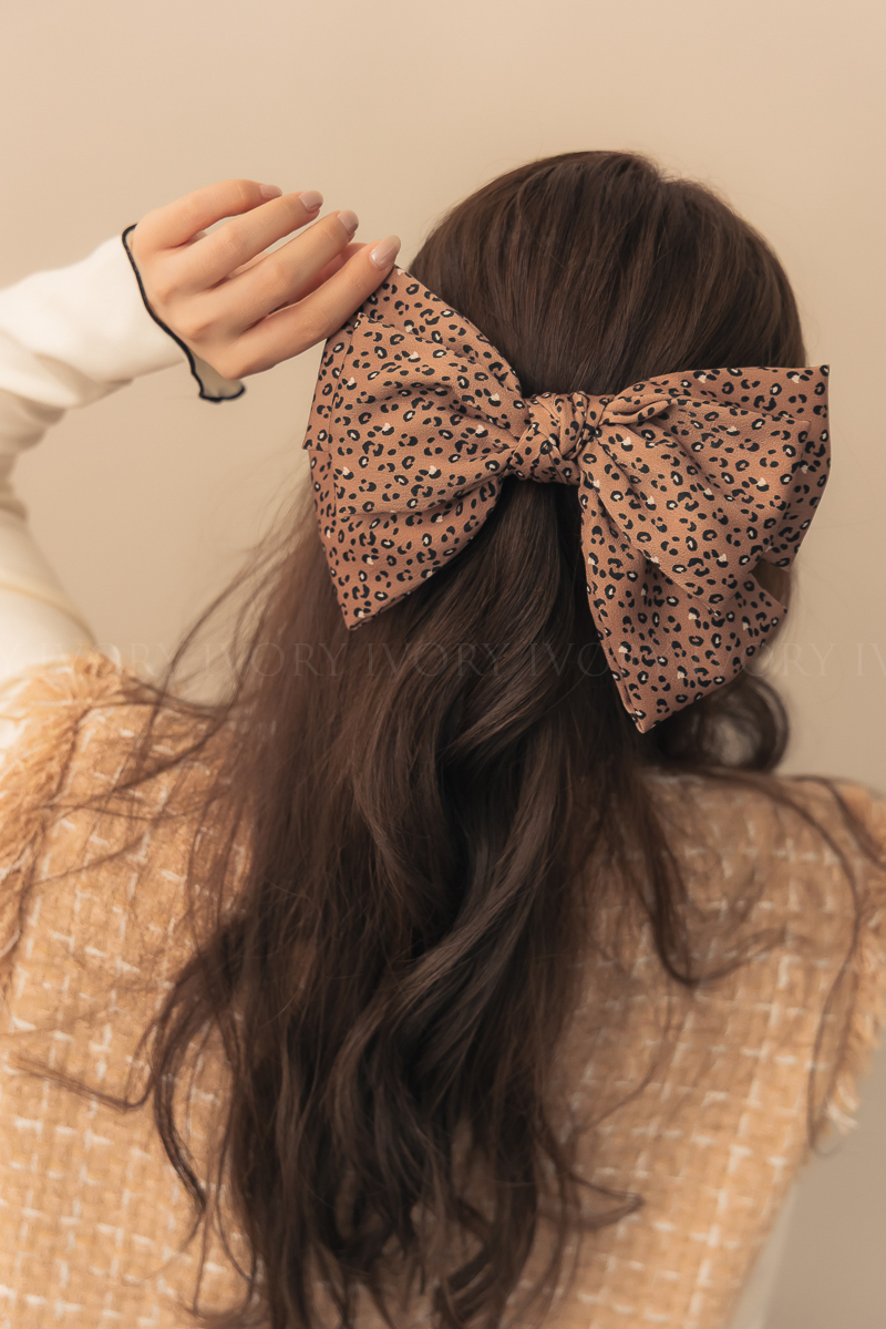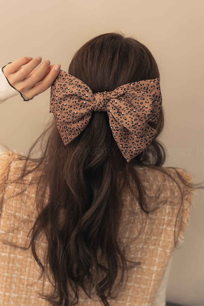 N51060甜美系豹紋緞面蝴蝶結髮夾
