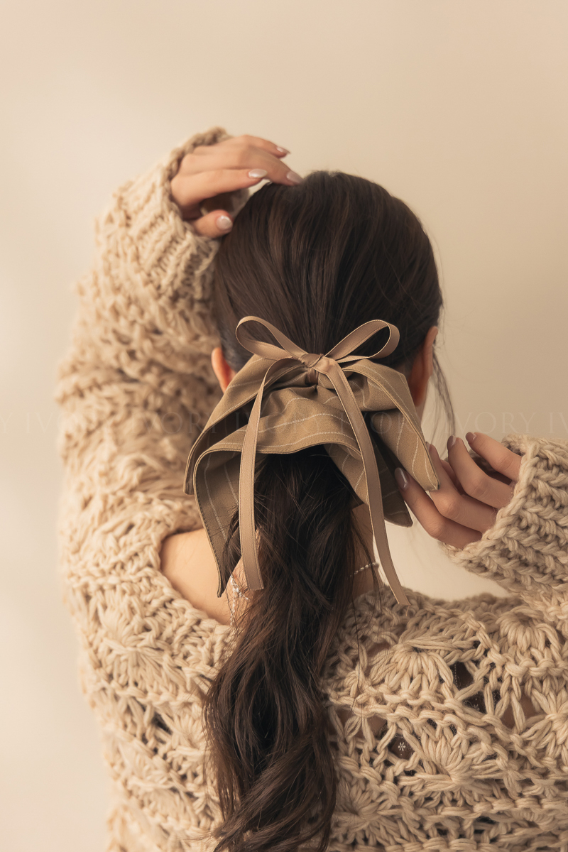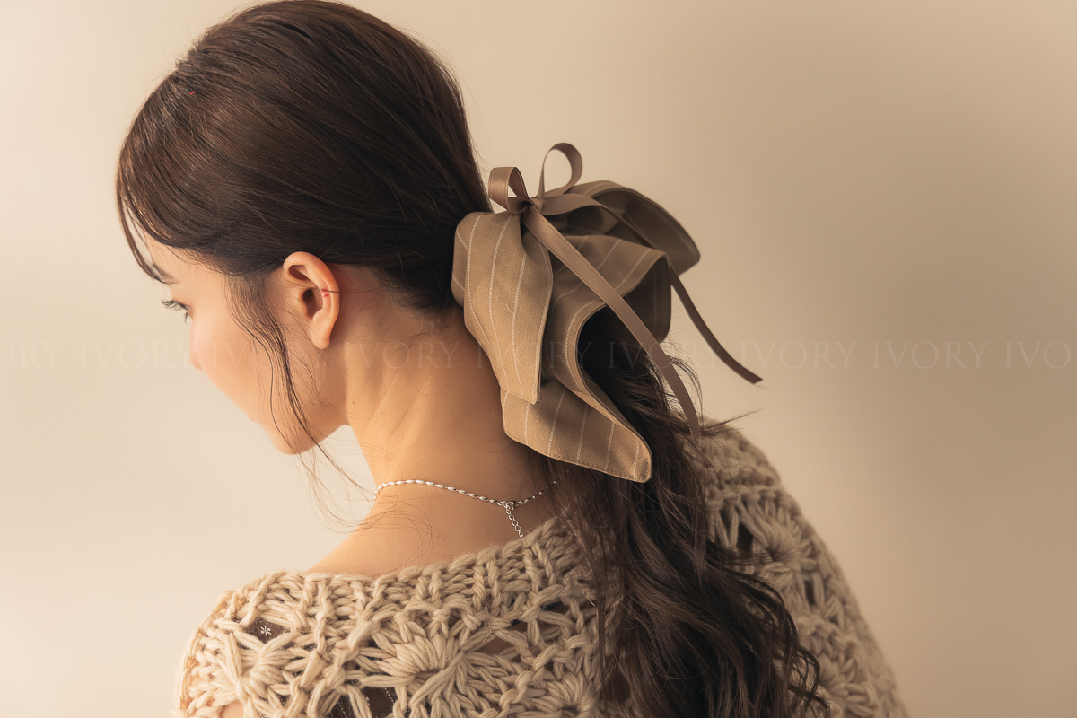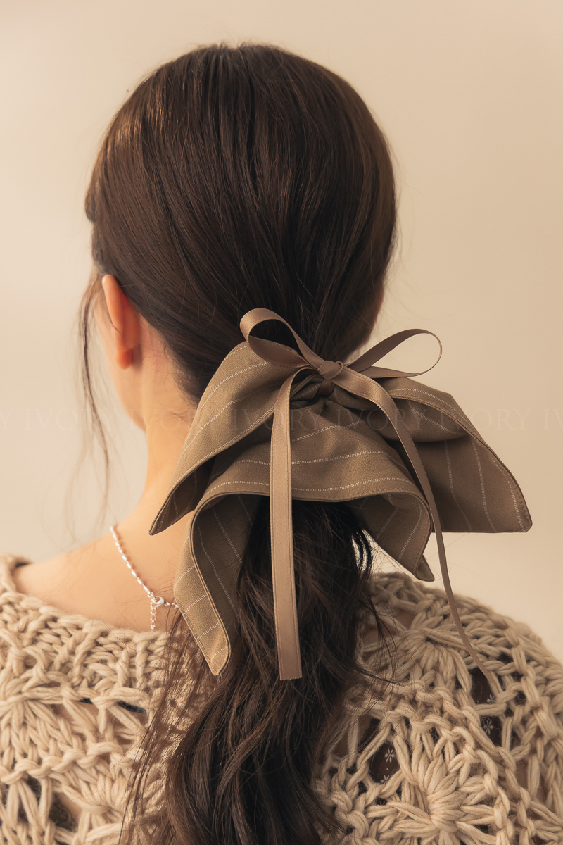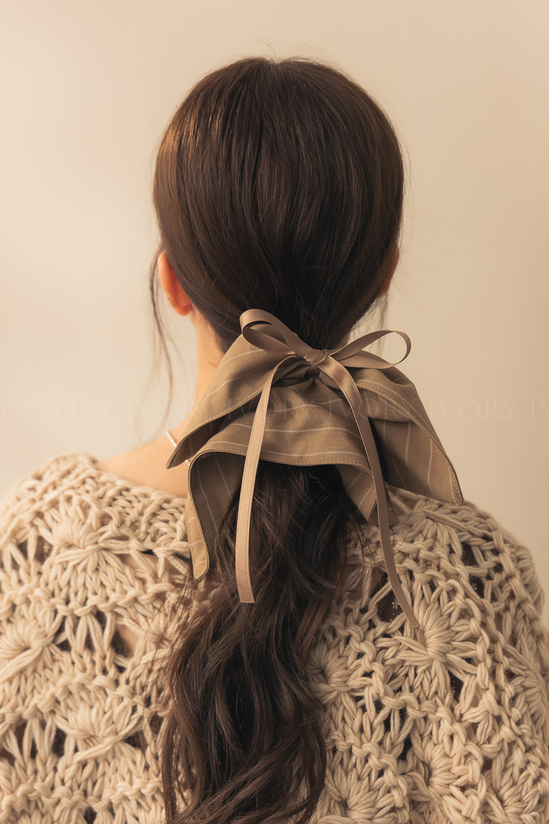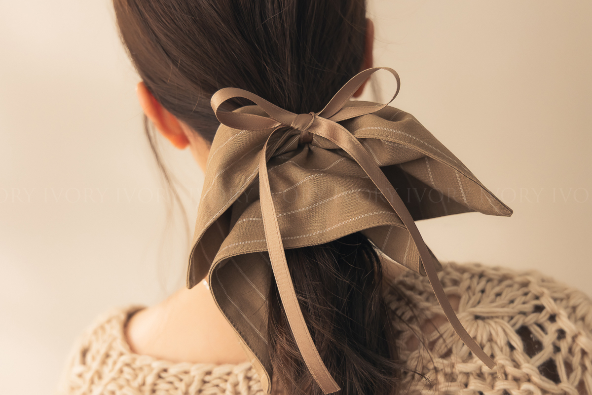 N51061直條紋蝴蝶結緞帶方形髮圈