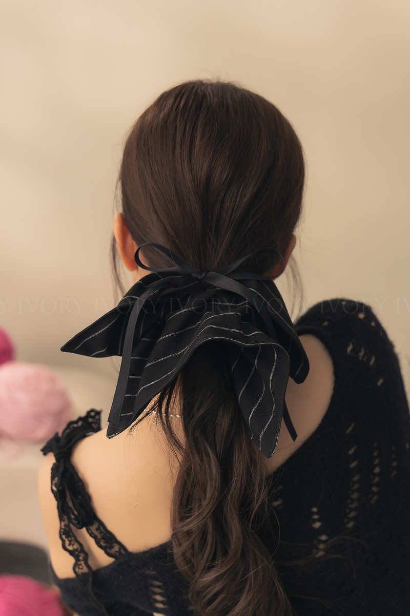 N51061直條紋蝴蝶結緞帶方形髮圈