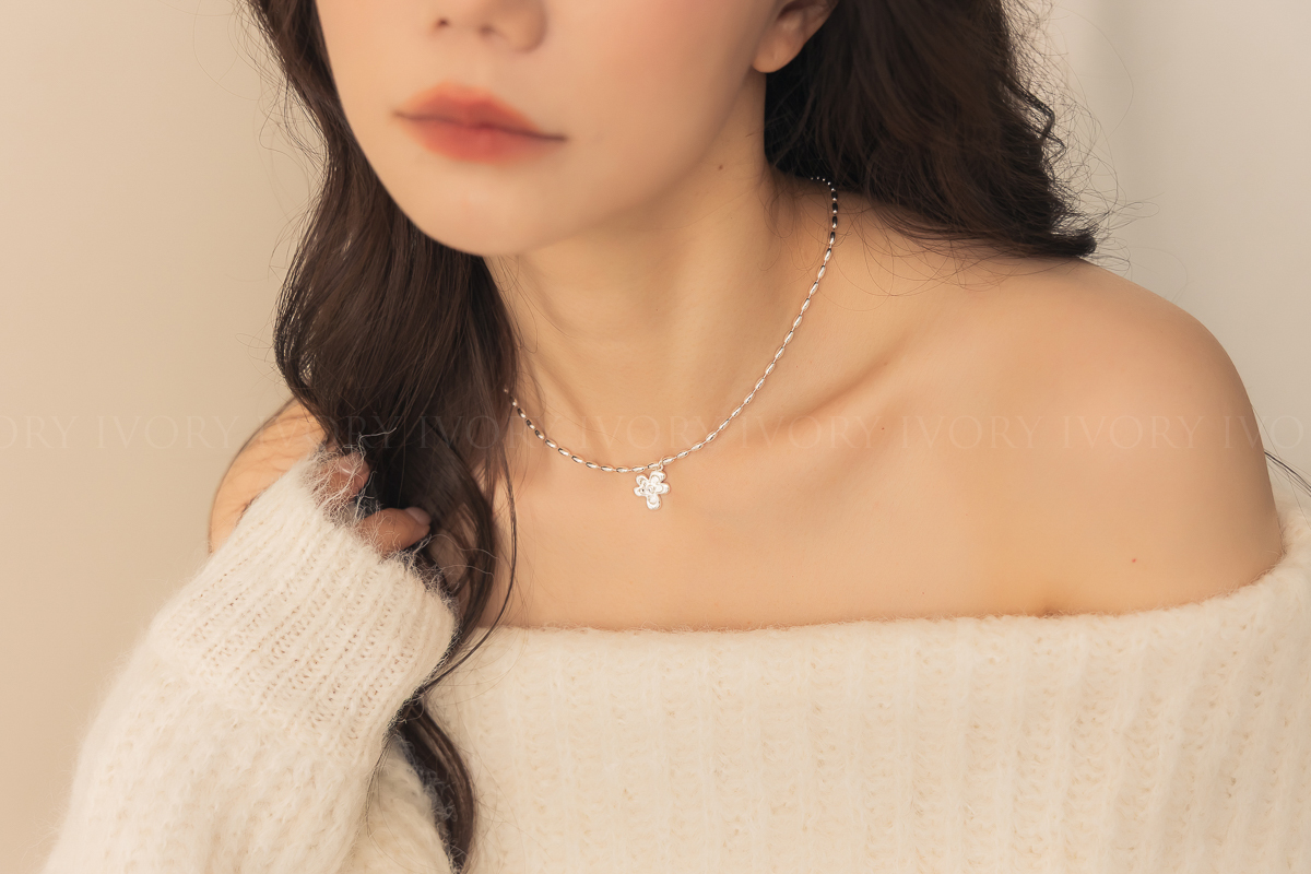 N51073荷包蛋小花朵珠珠項鍊