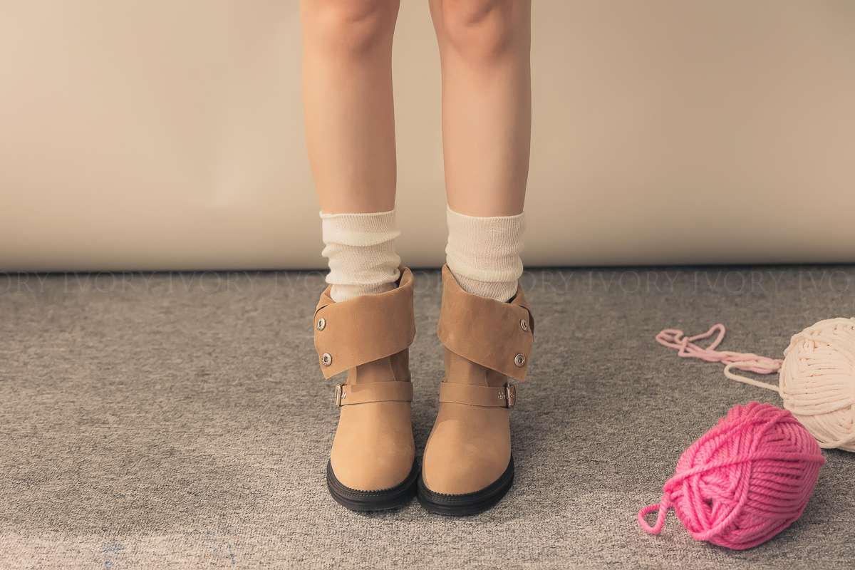N51075銀釦雙釦帶兩穿式麂皮靴