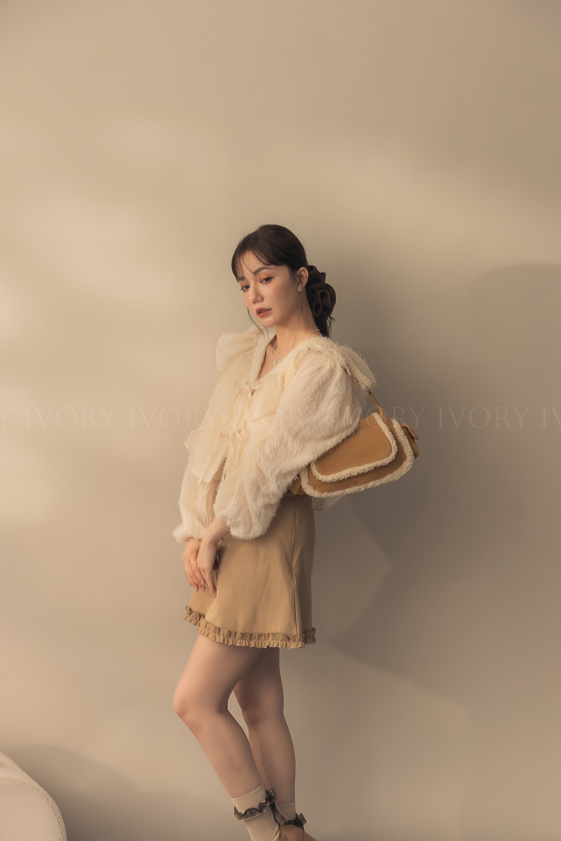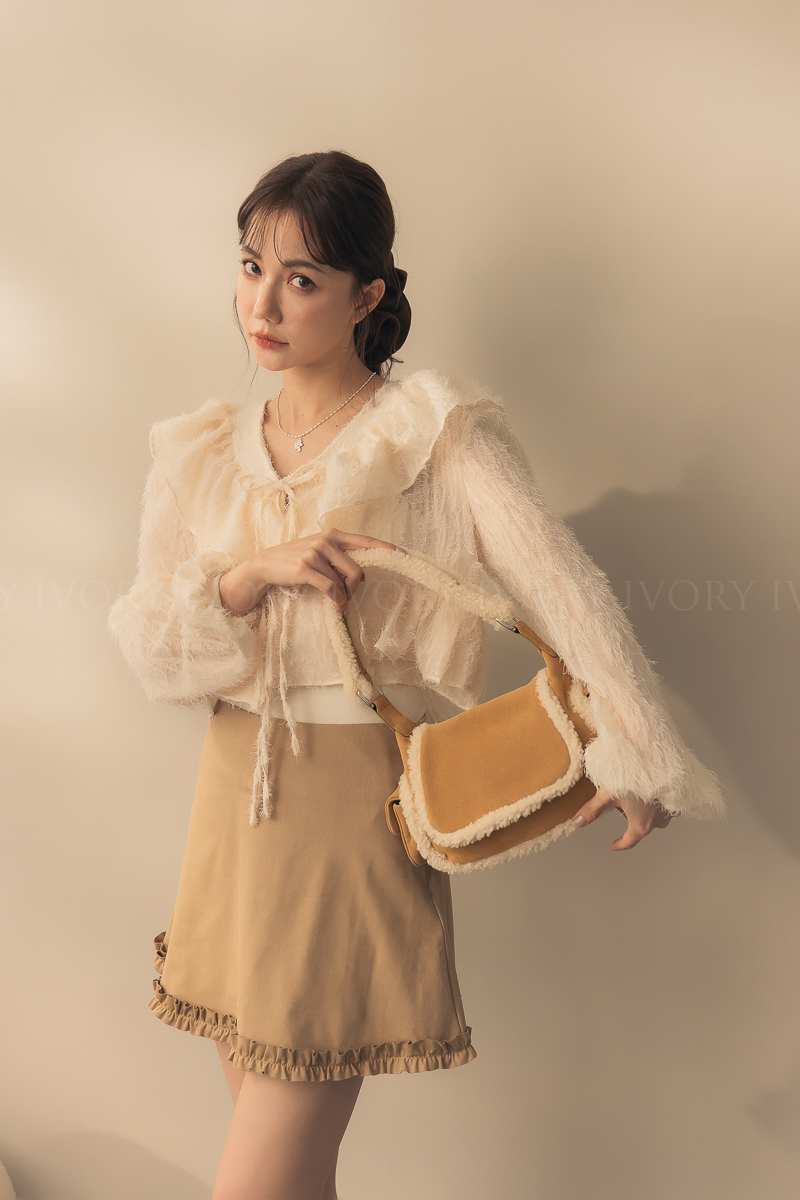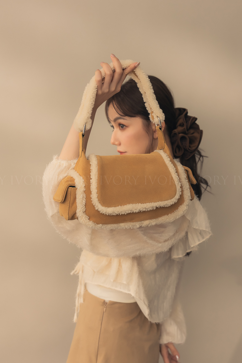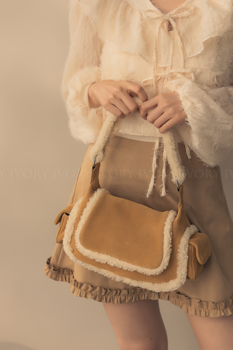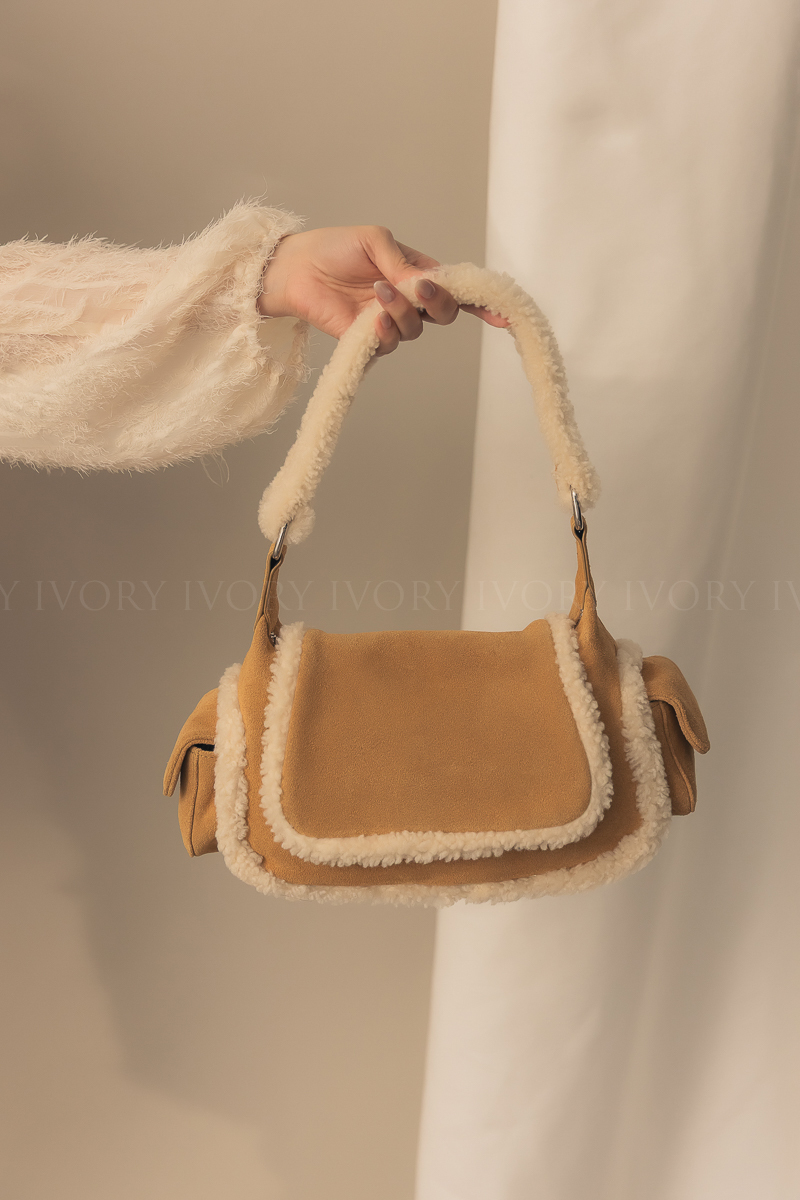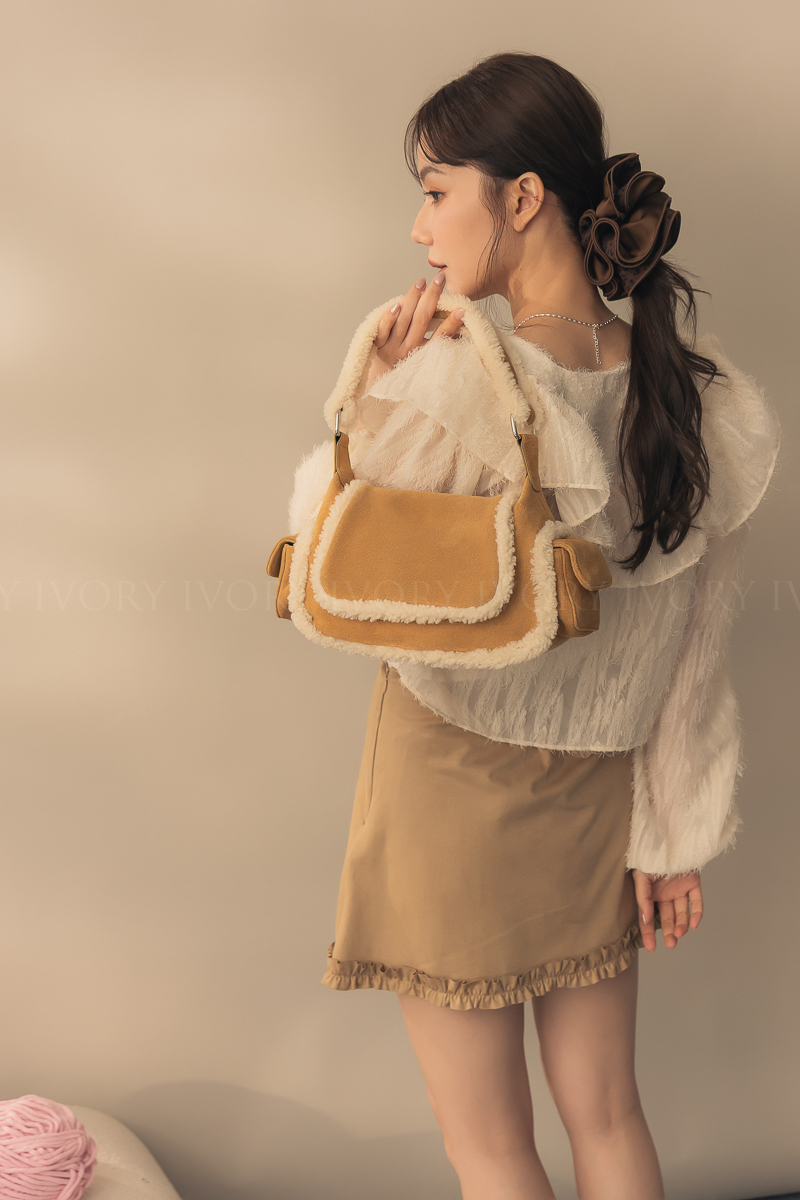 N51077 QQ羊羔毛撞色麂皮肩背包 [A34]
