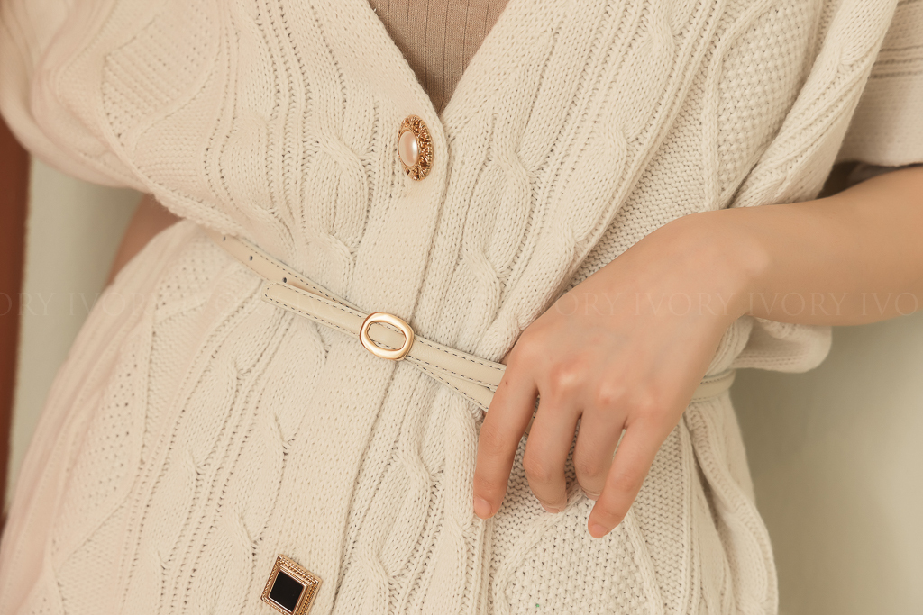 Q31069質感霧金橢圓釦真皮腰帶
