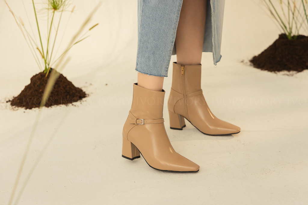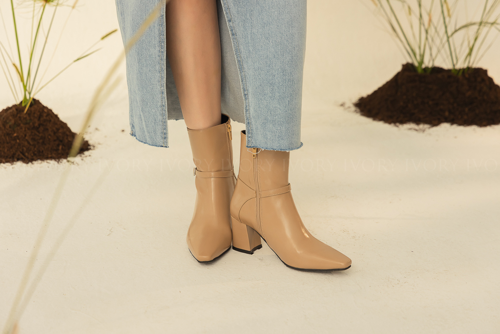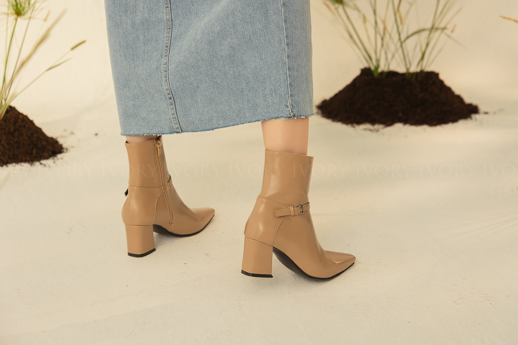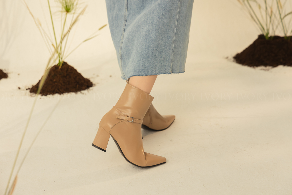 Q41061時髦側扣環拼接造型尖頭短靴