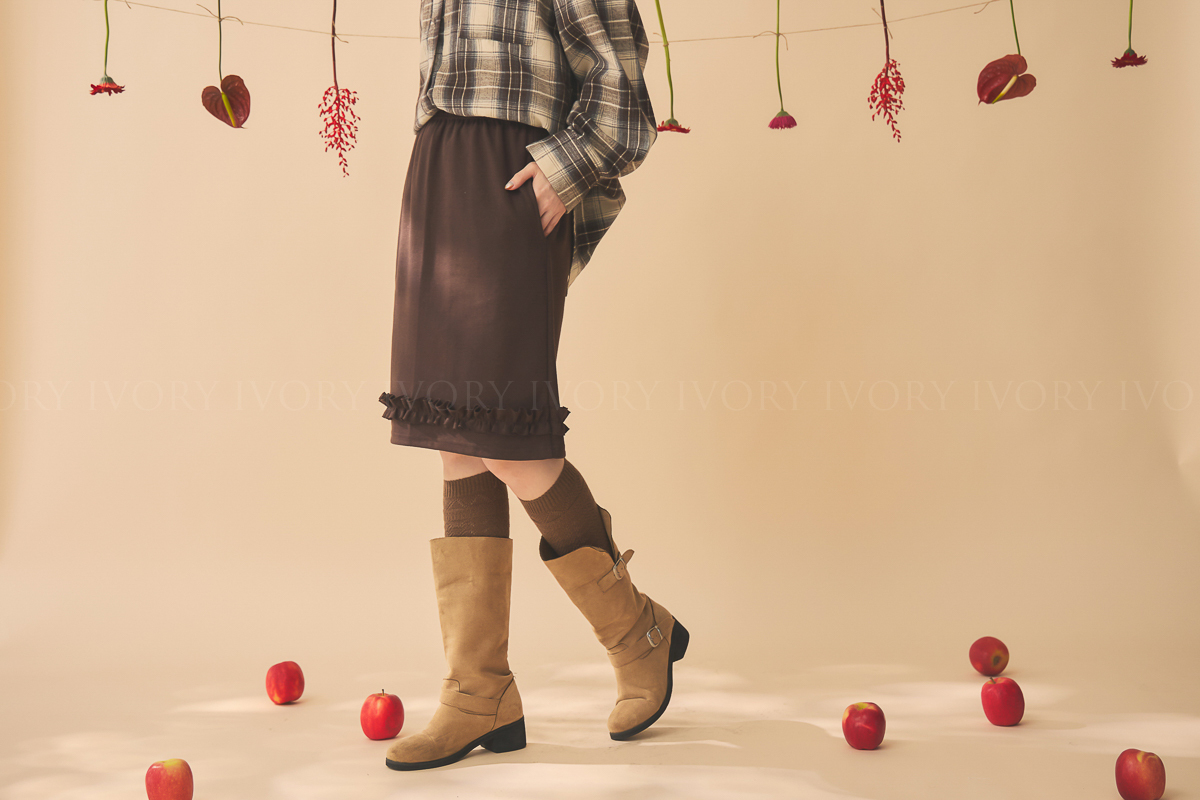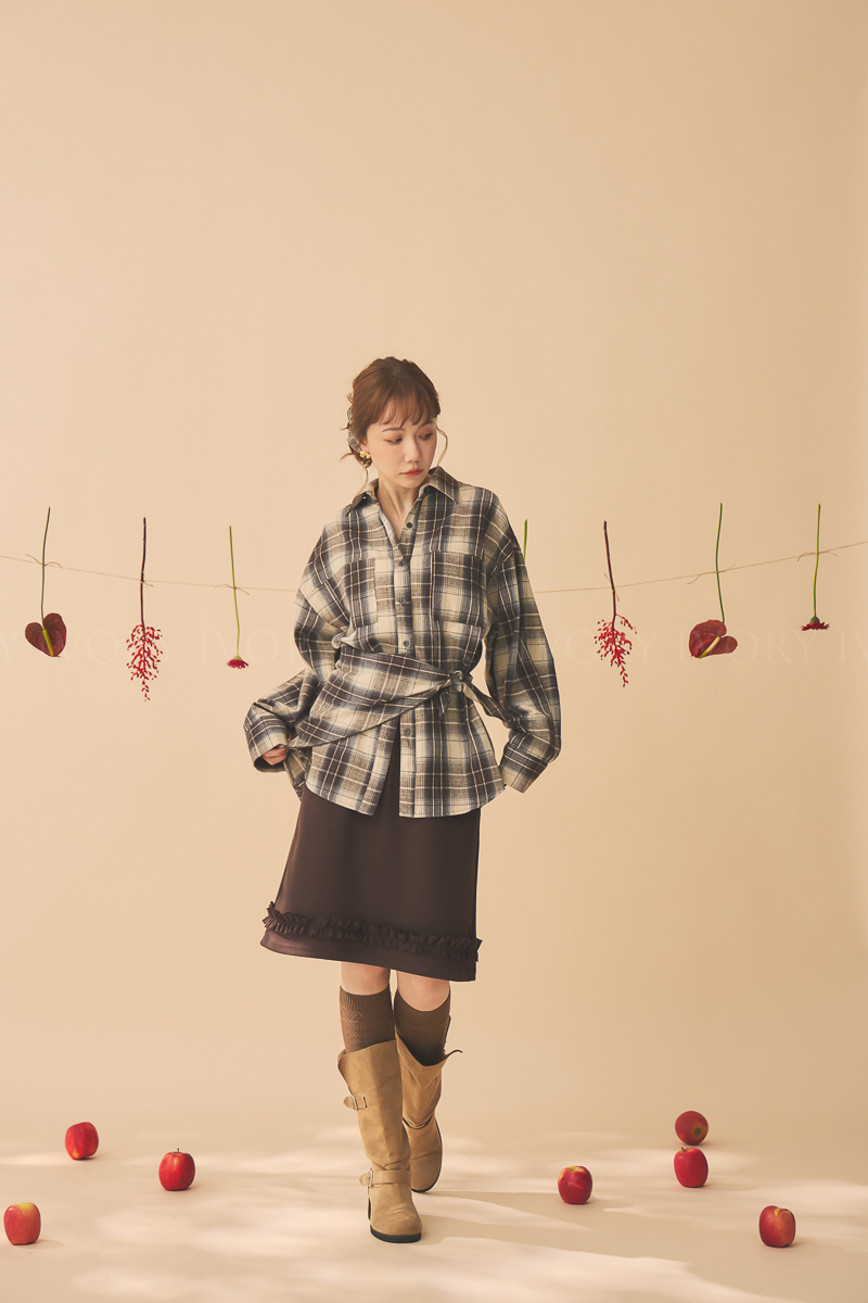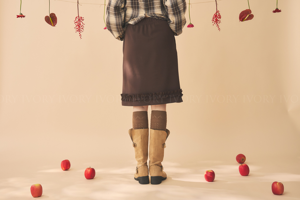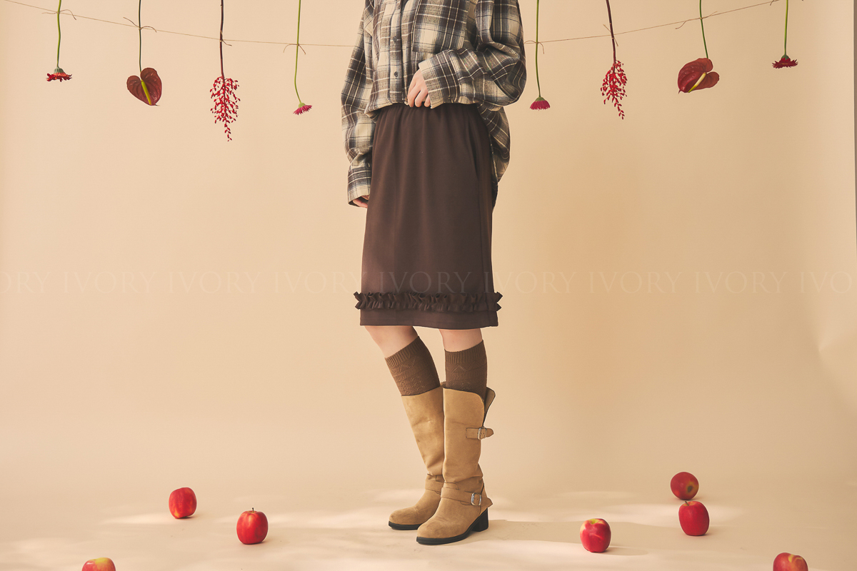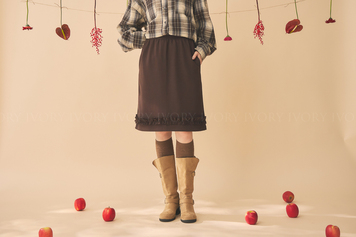 Q51006時髦韓妞荷葉滾邊膝上裙< Kimy清單>