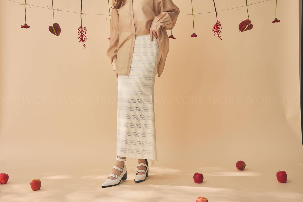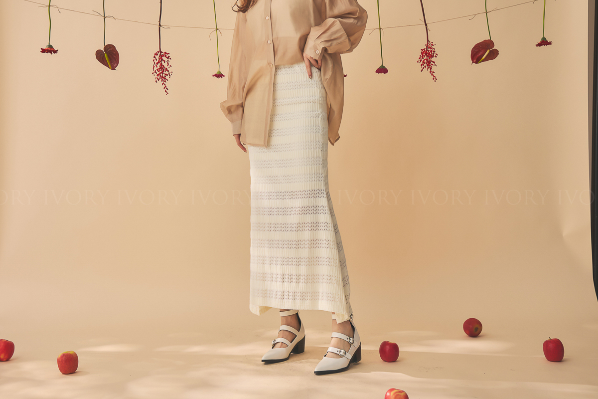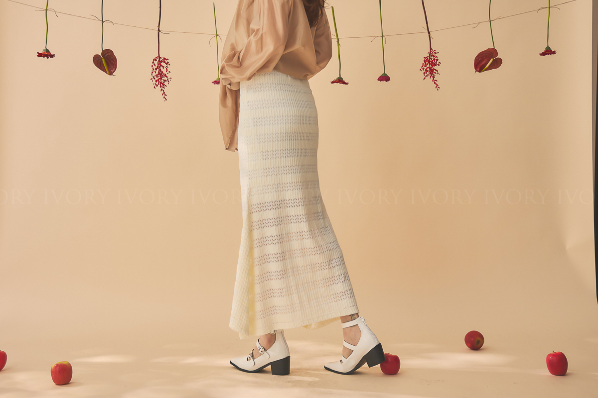 尺寸 : 腰圍 31-49 (鬆緊帶彈性) / 臀圍 45 / 裙長 86