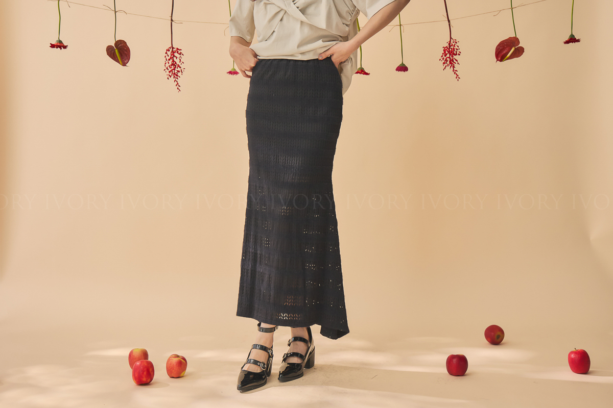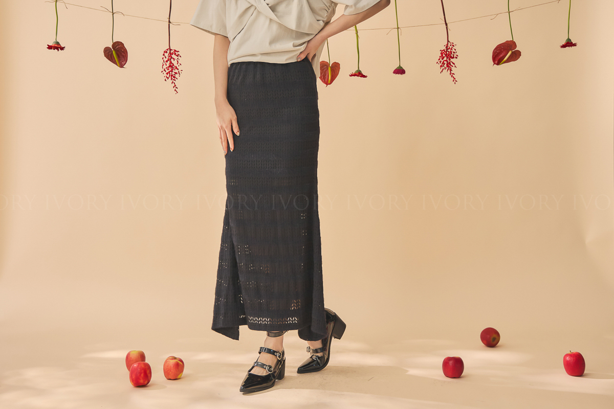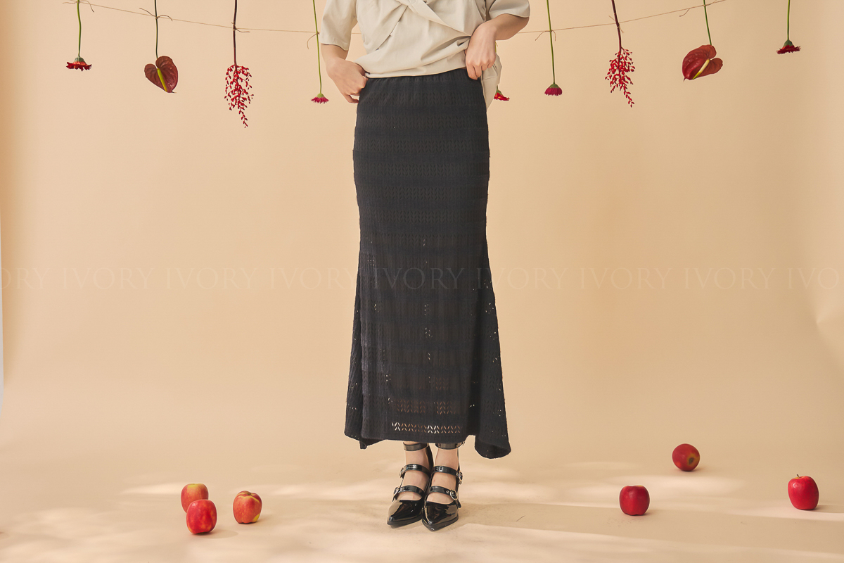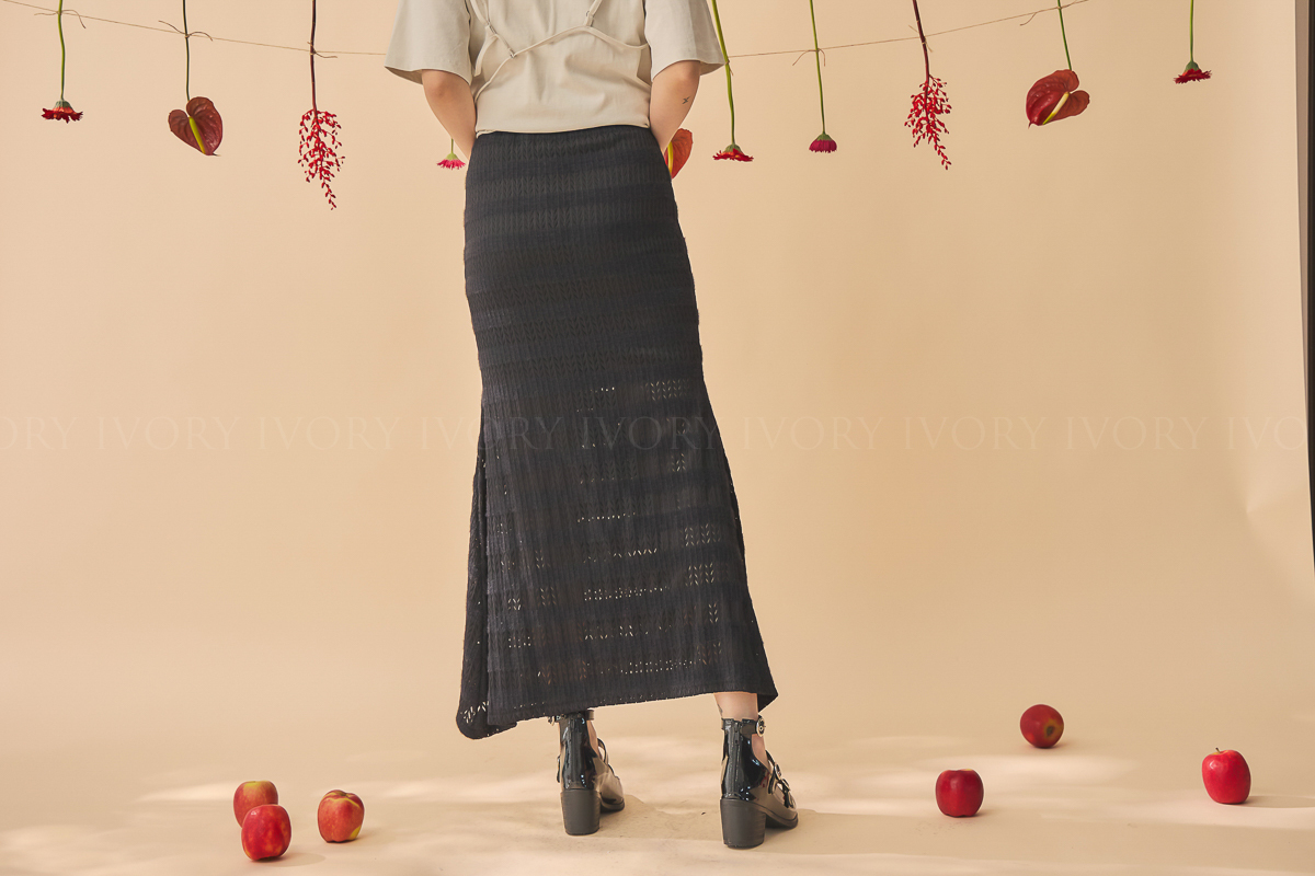 尺寸 : 腰圍 31-49 (鬆緊帶彈性) / 臀圍 45 / 裙長 86