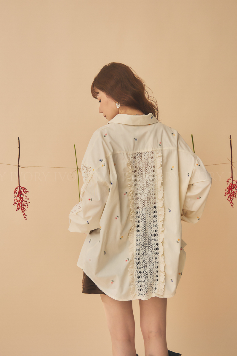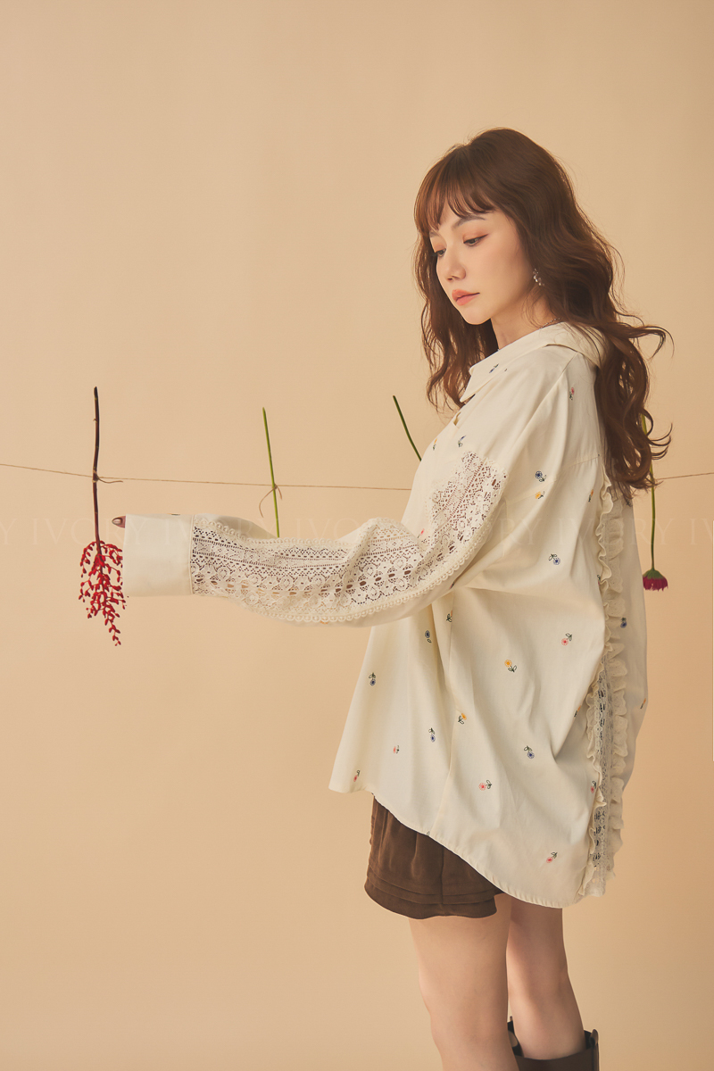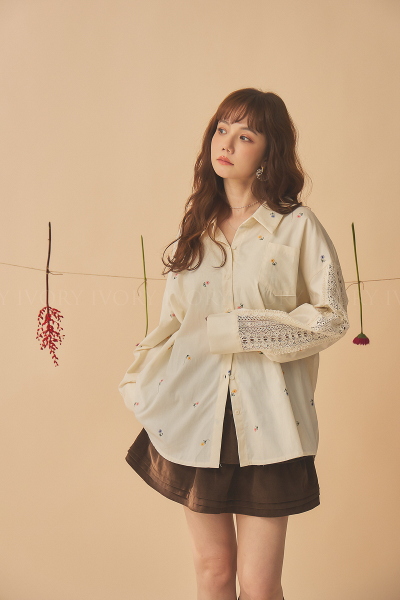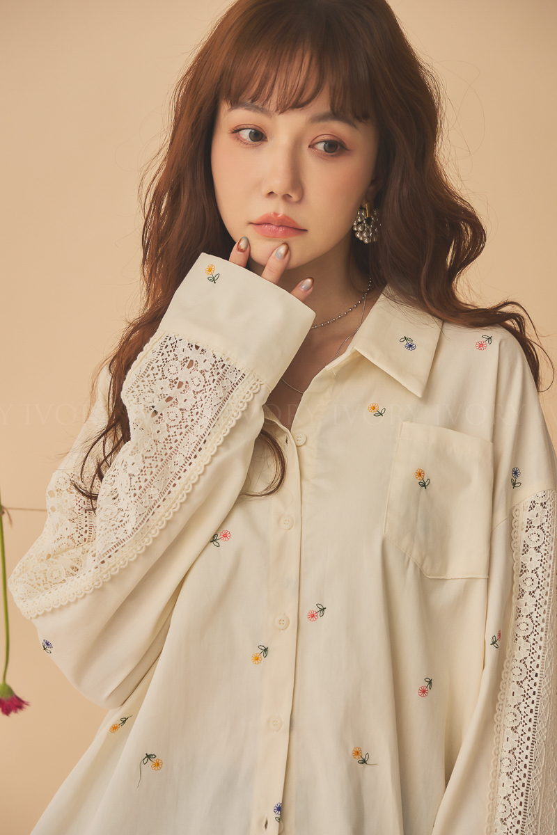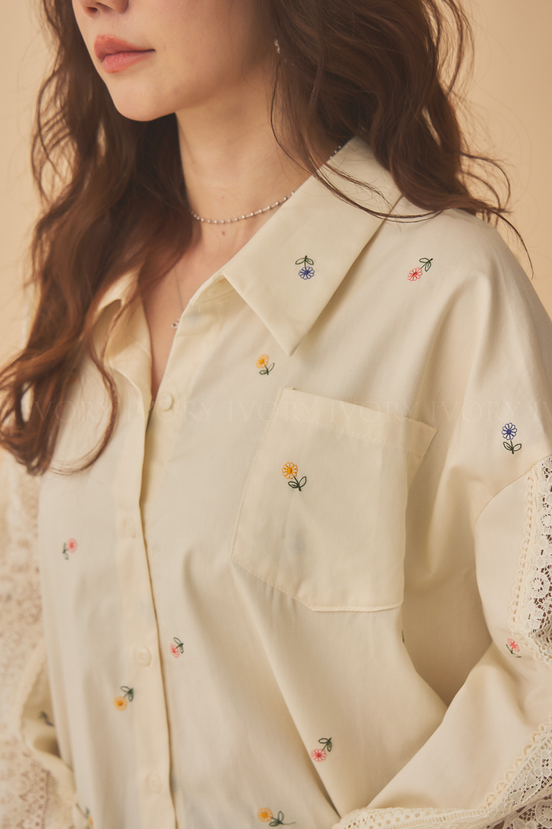 Q51015刺繡小雛菊拼接蕾絲超美襯衫