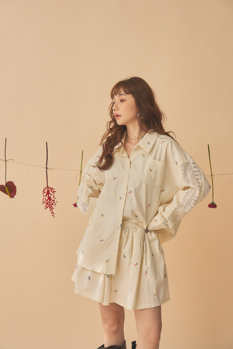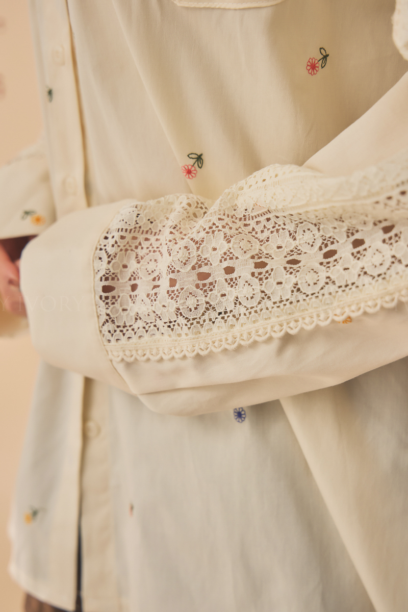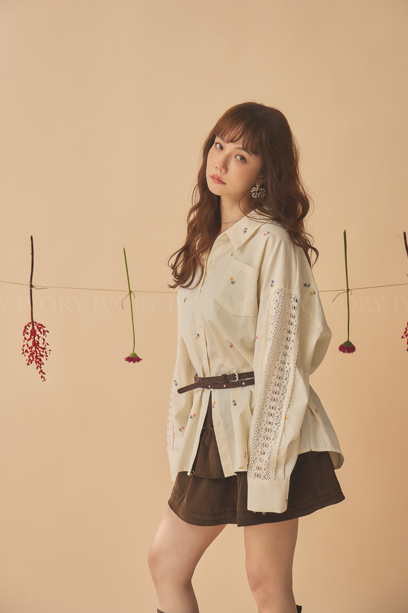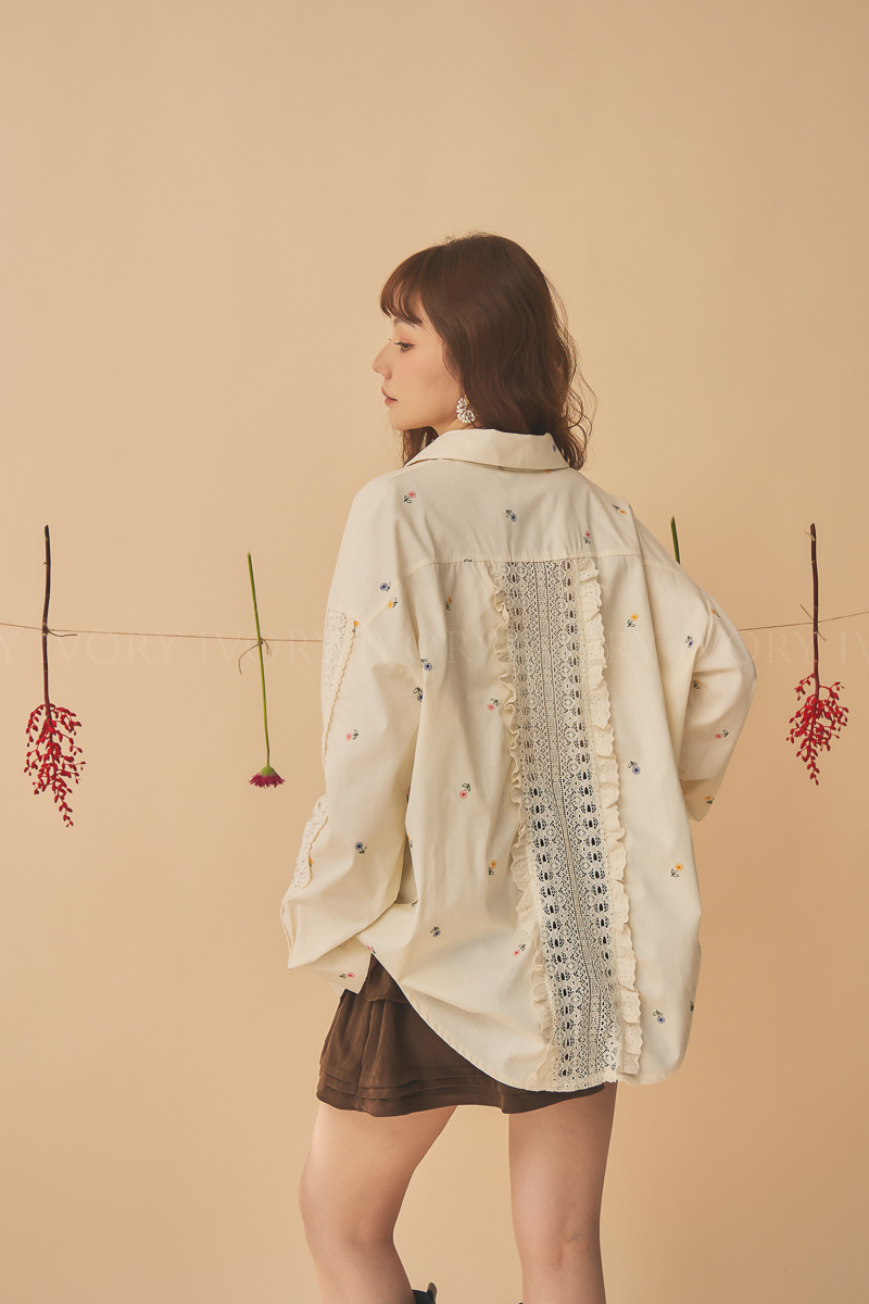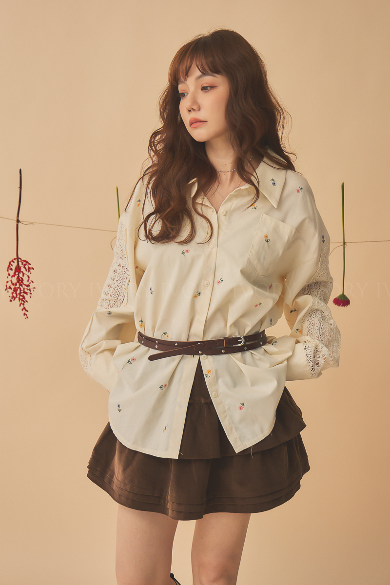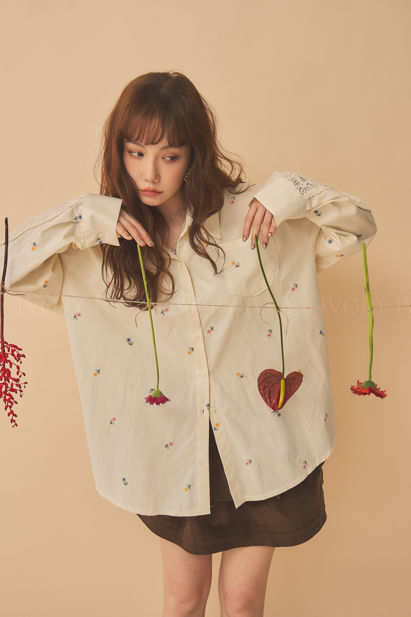 Q51015刺繡小雛菊拼接蕾絲超美襯衫