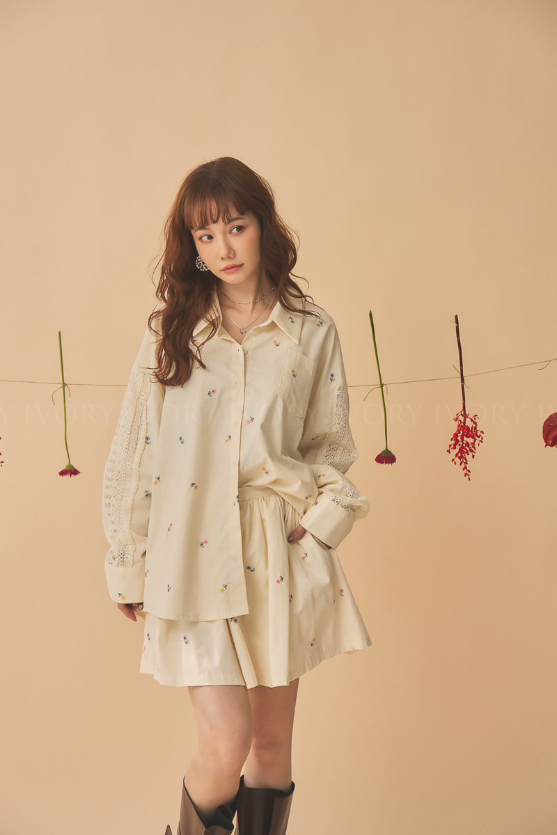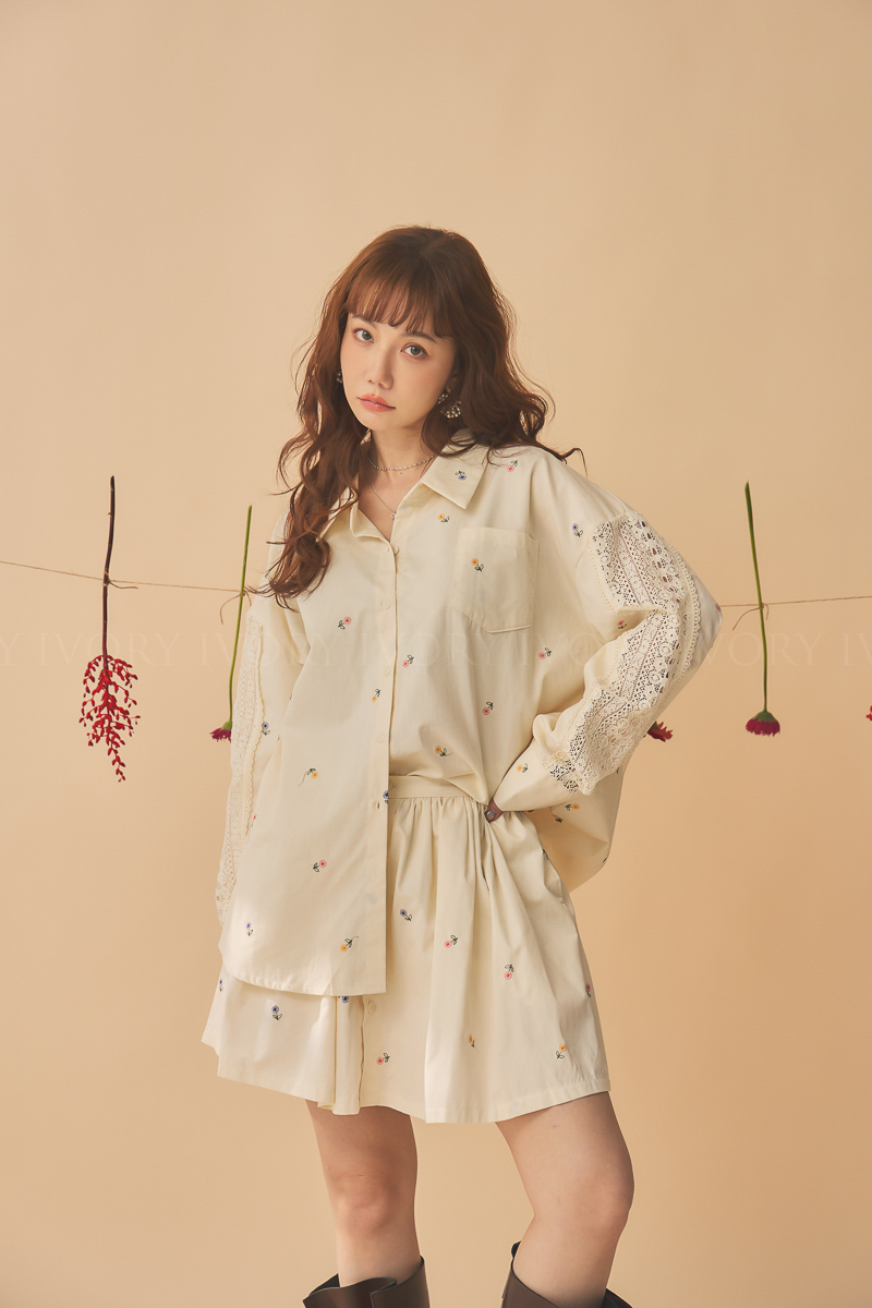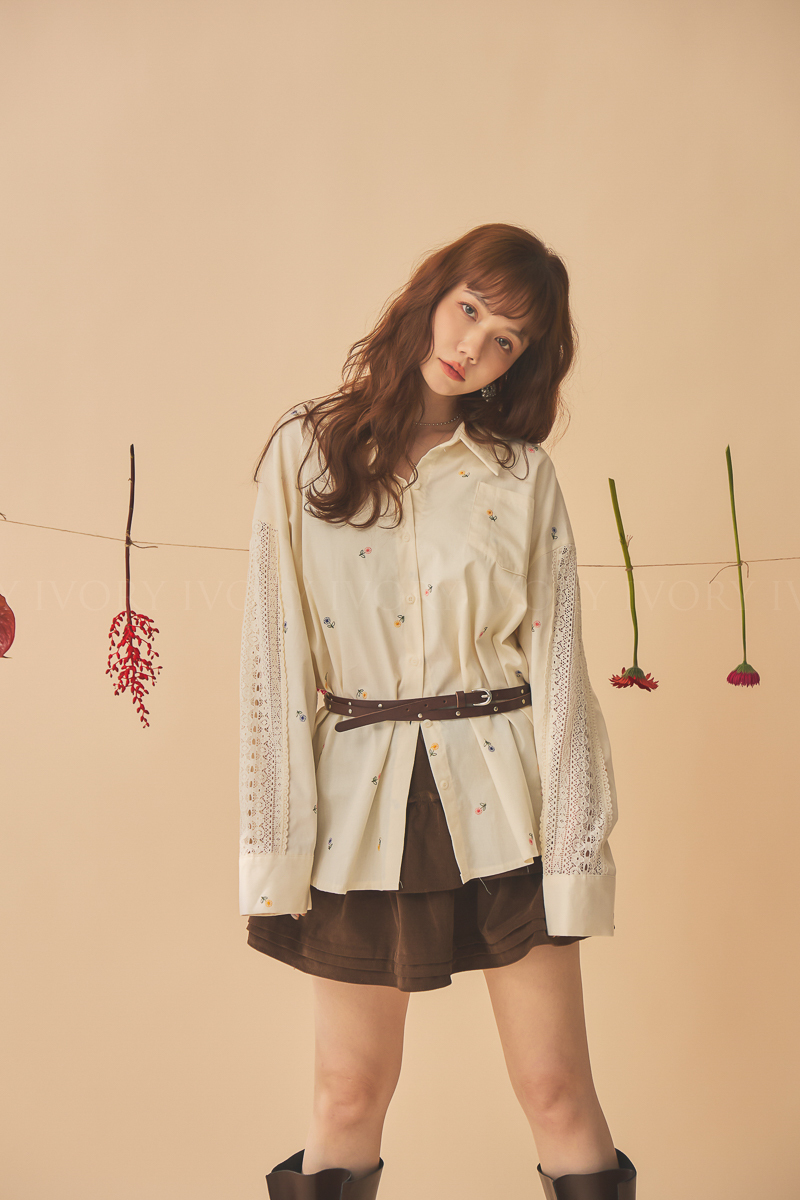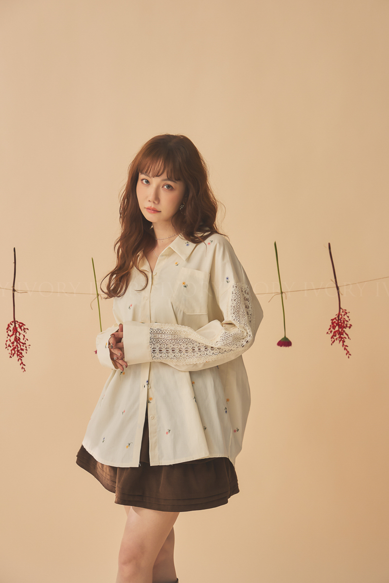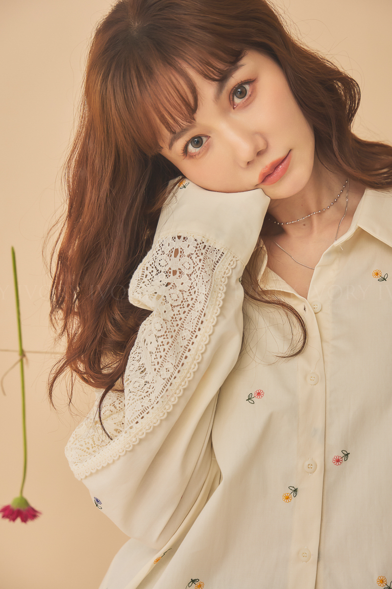 Q51015刺繡小雛菊拼接蕾絲超美襯衫