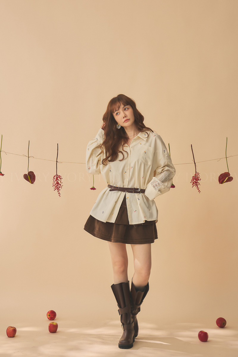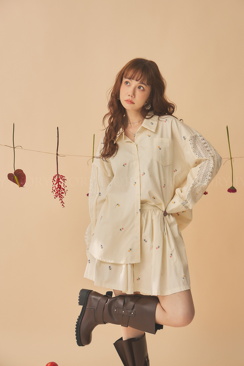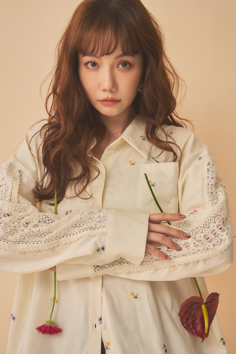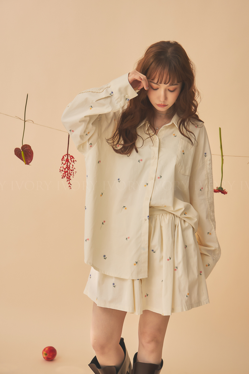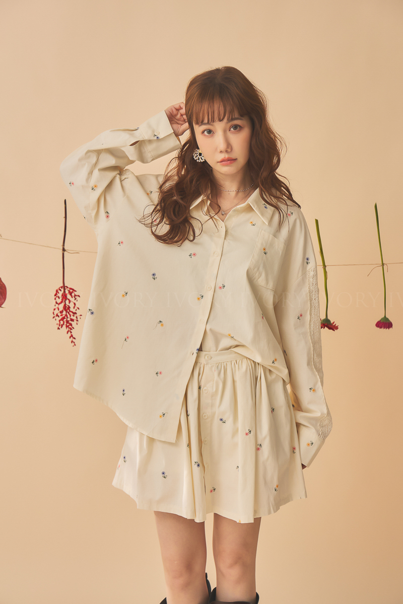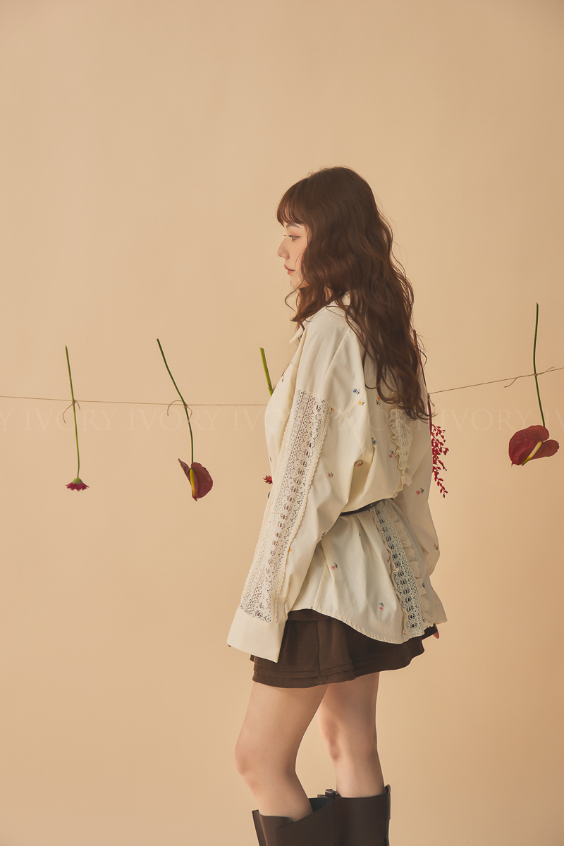 Q51015刺繡小雛菊拼接蕾絲超美襯衫