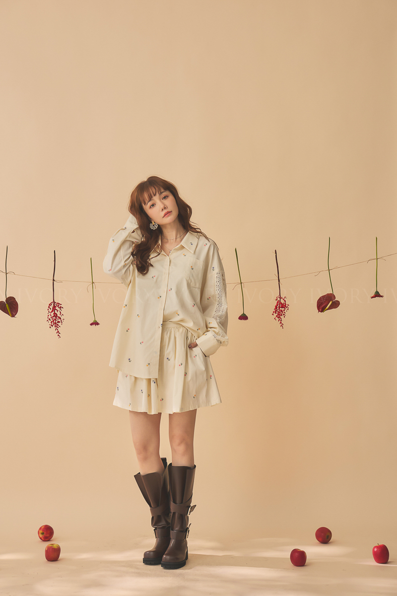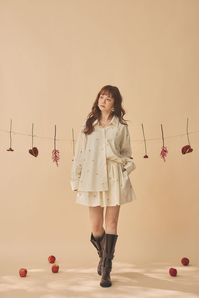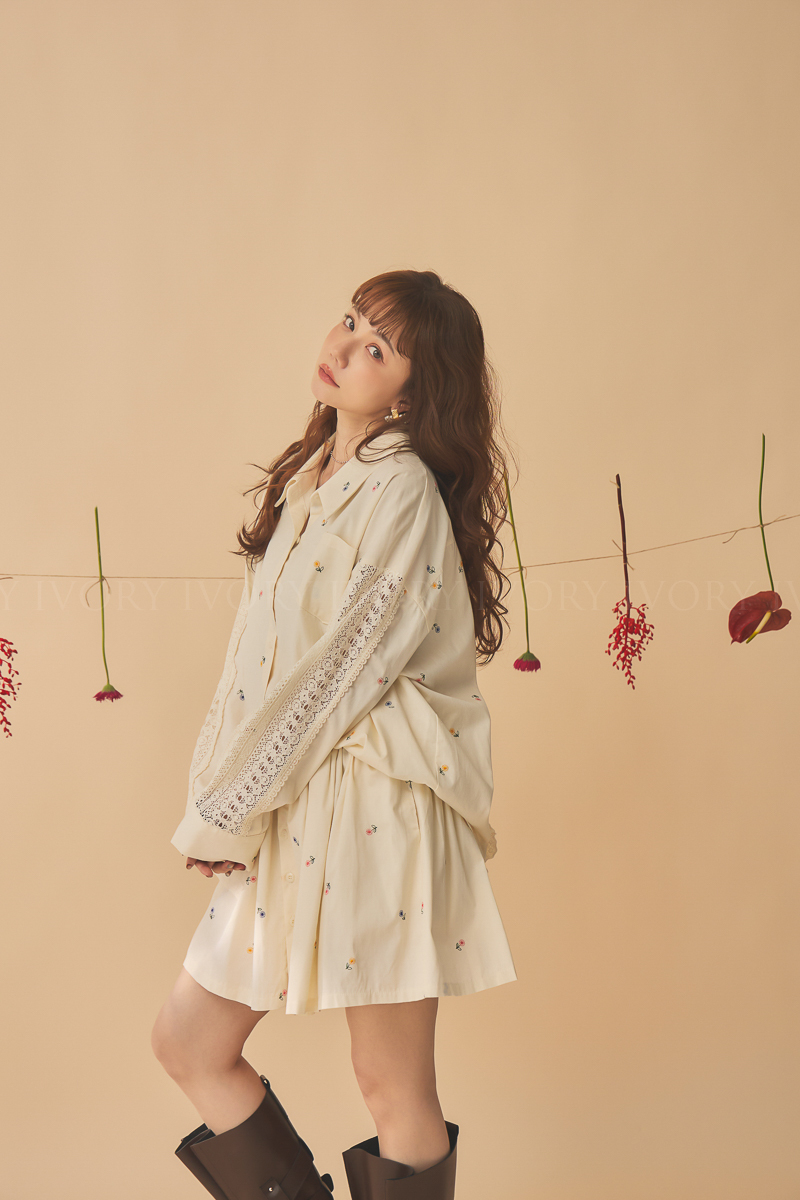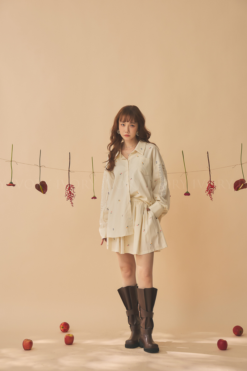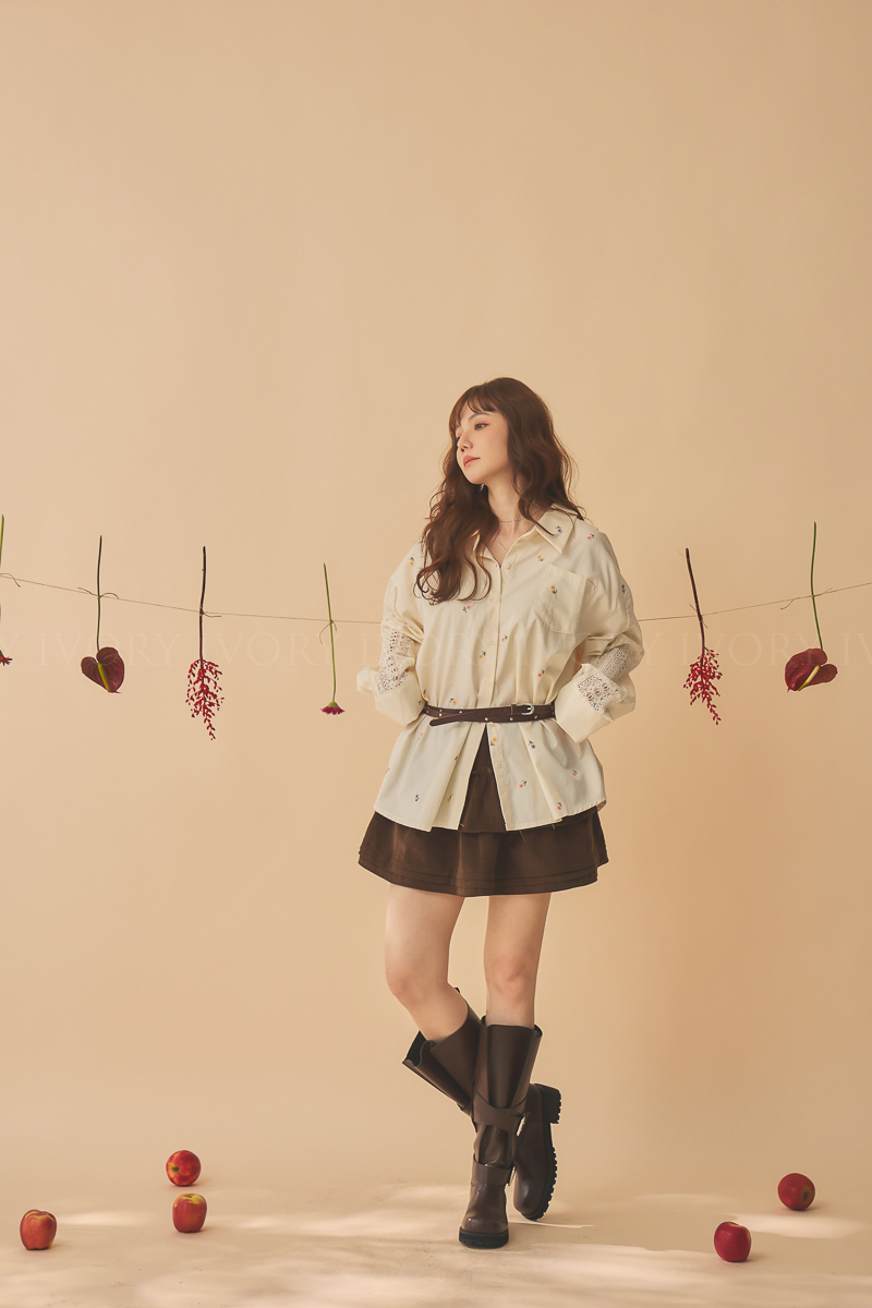 Q51015刺繡小雛菊拼接蕾絲超美襯衫
