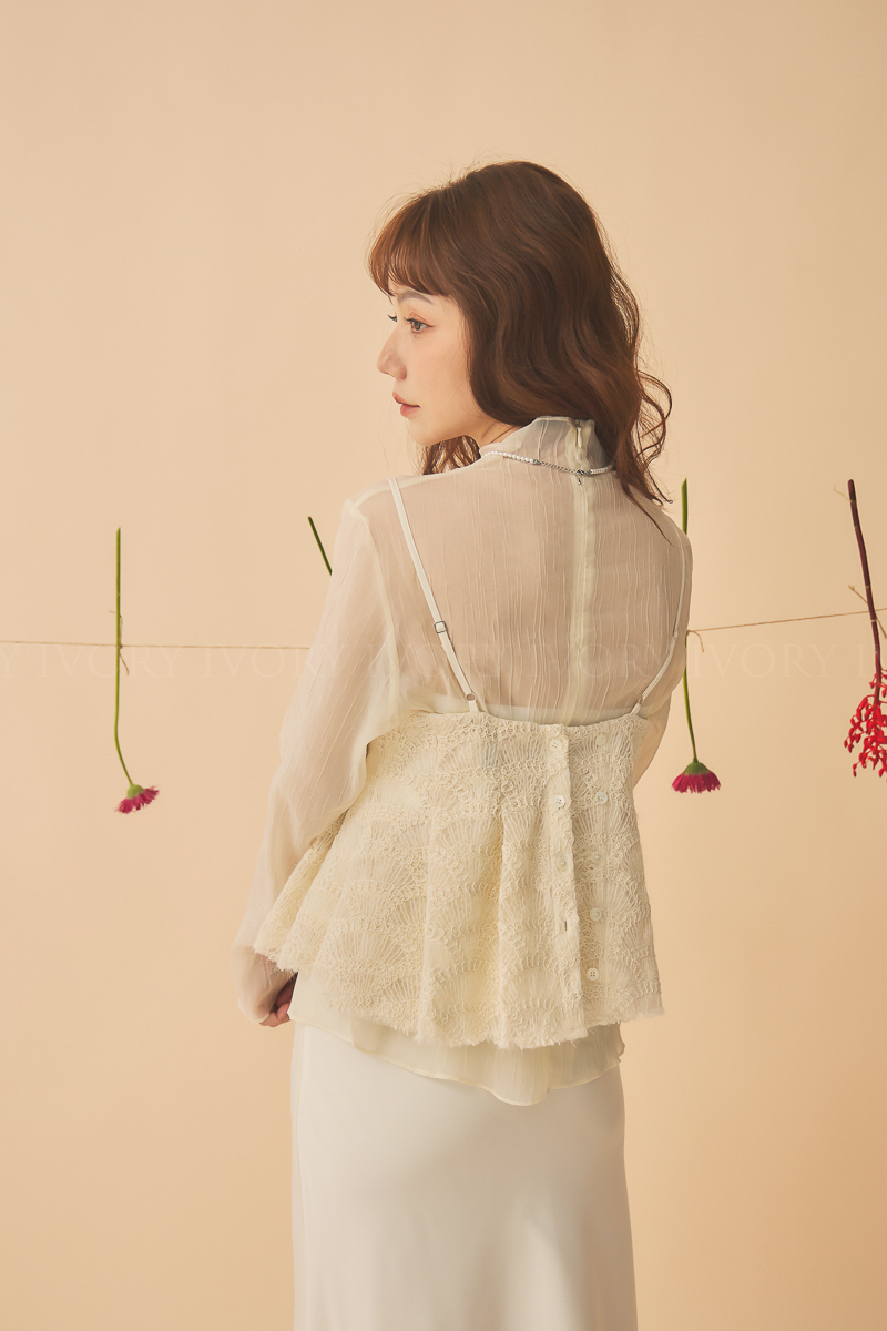 Q51021美人魚貝殼緹花蕾絲細肩背心