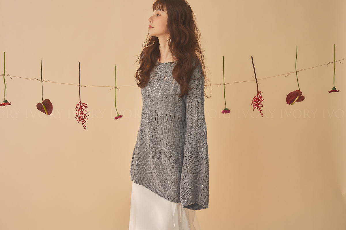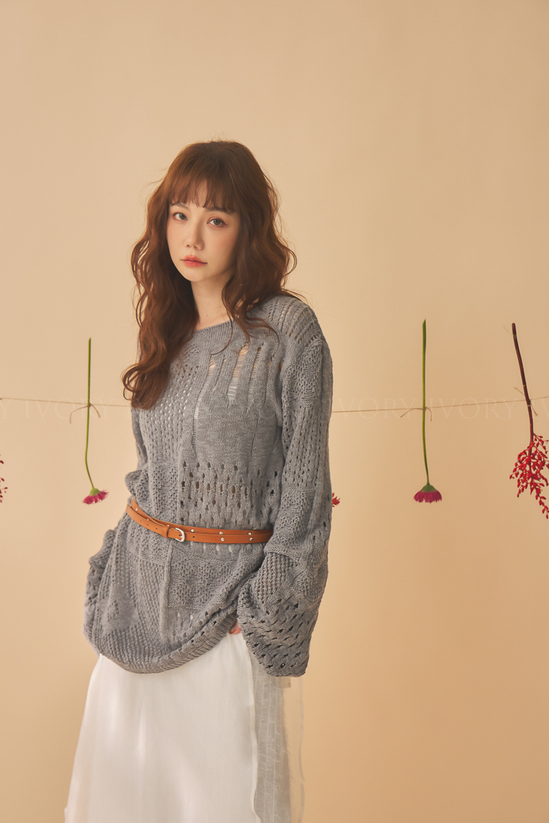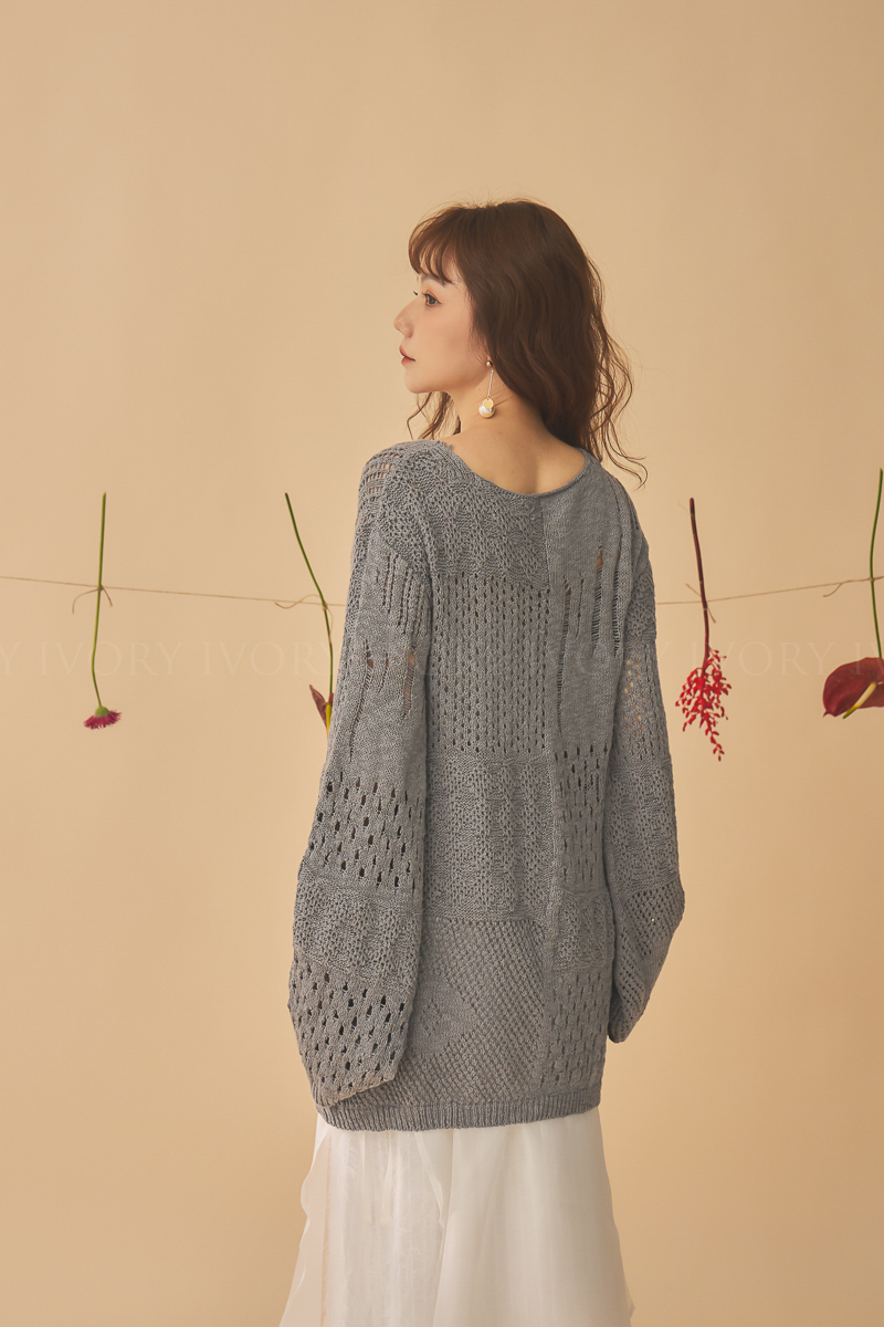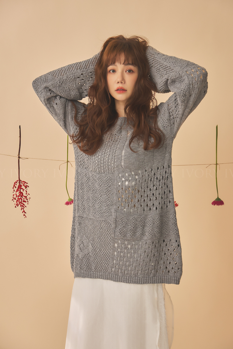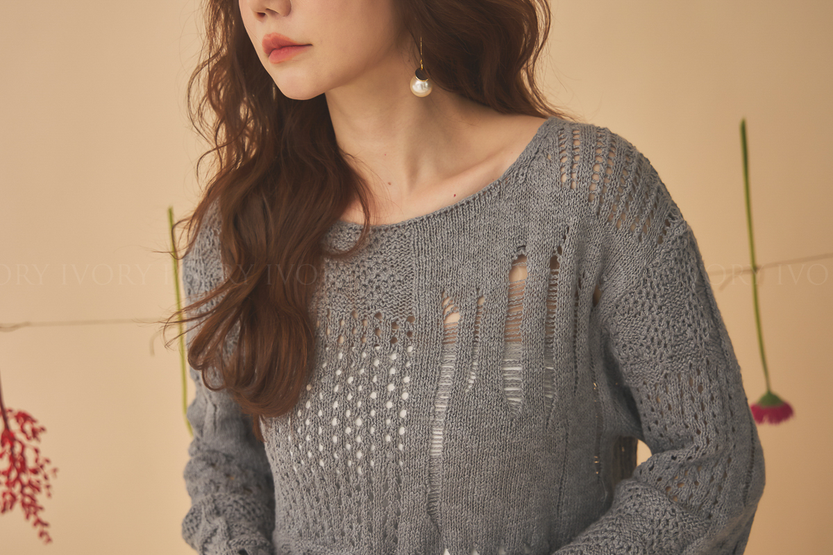 Q51035方塊感拼接破壞縷空針織衣< Kimy清單>