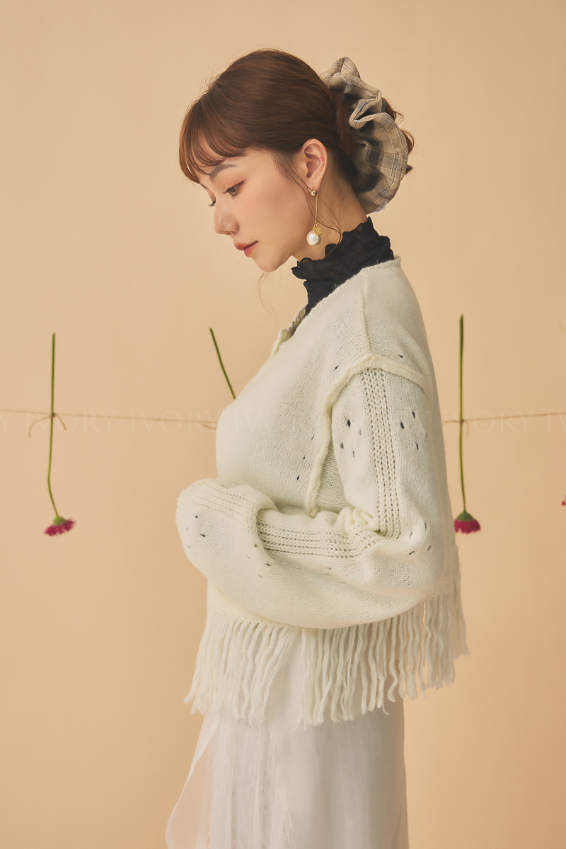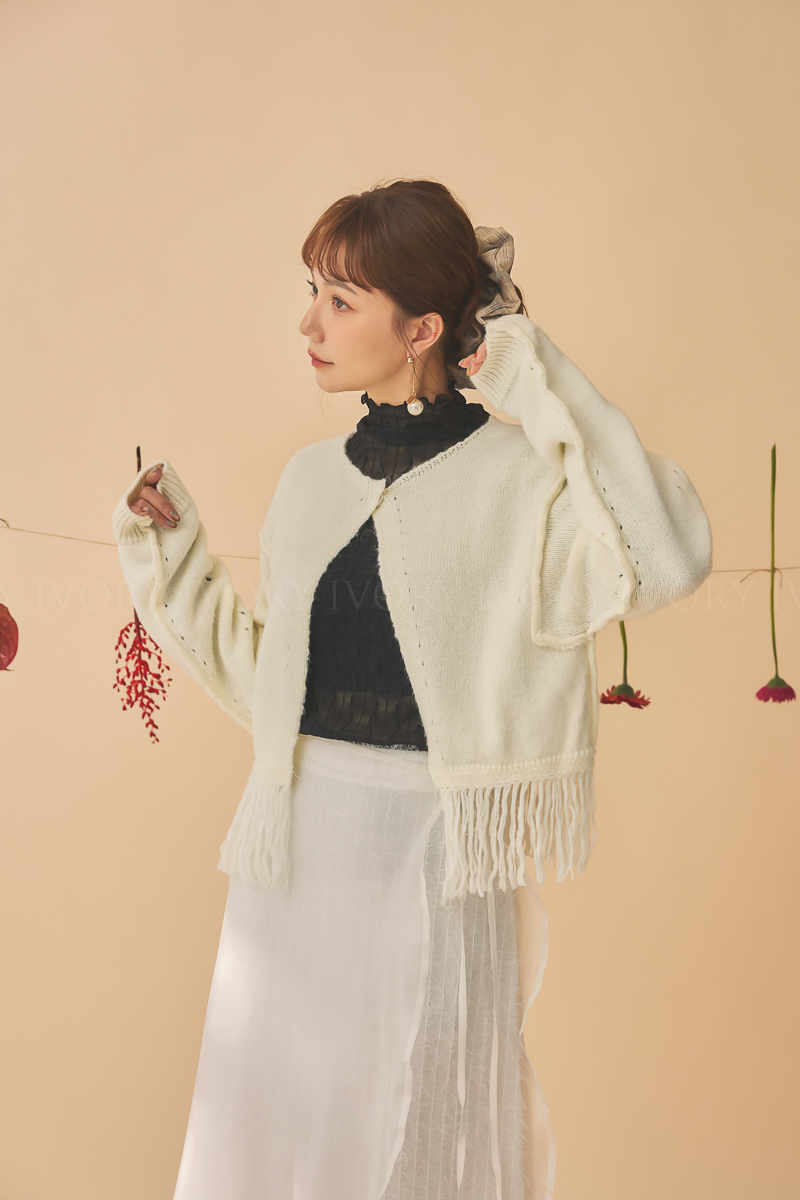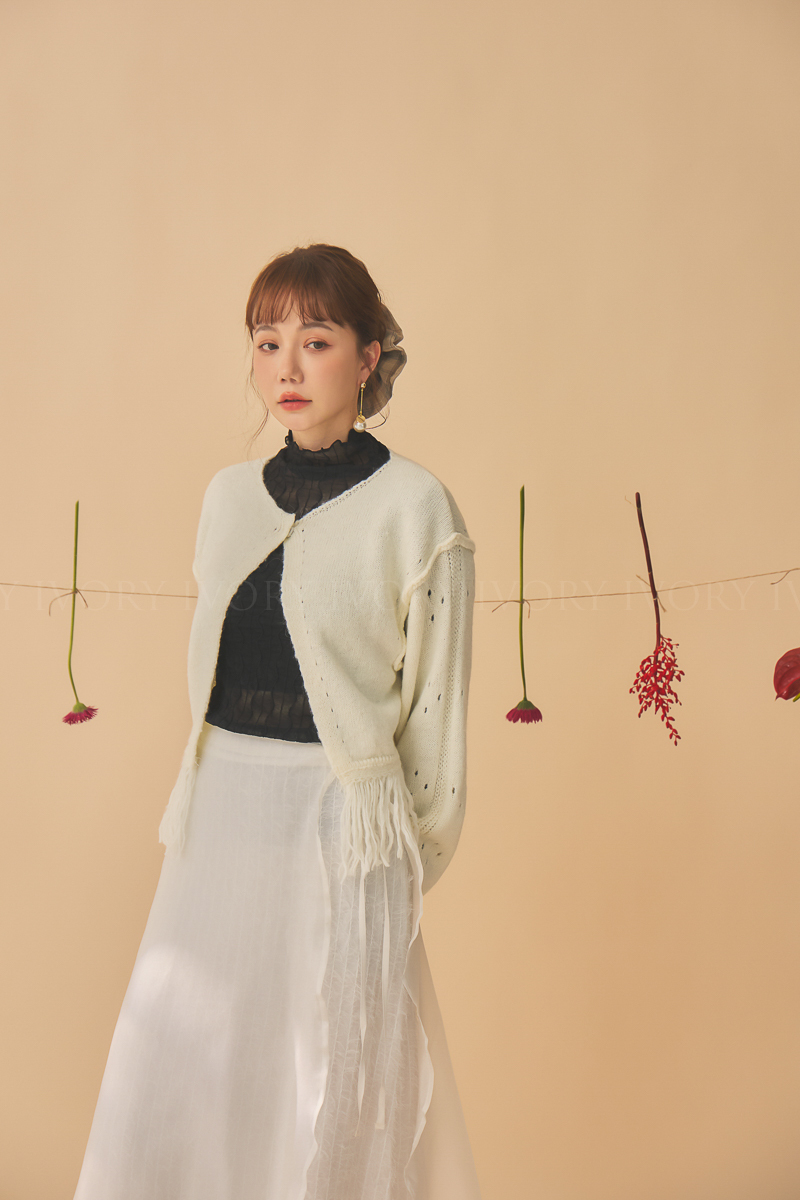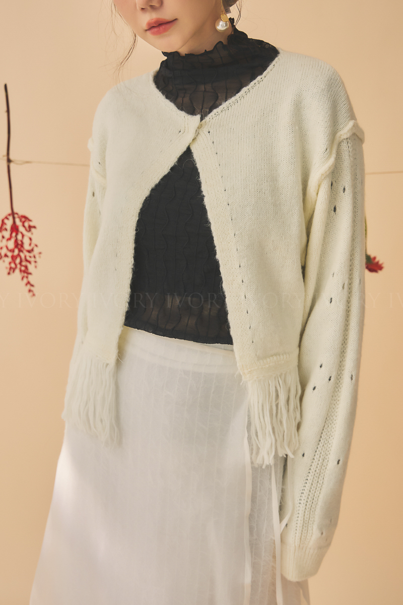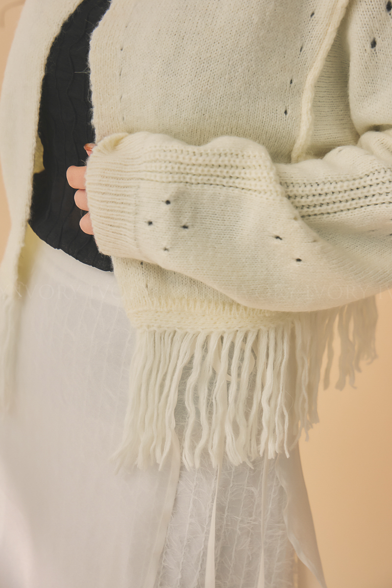 Q51041波希米亞流蘇下擺兩穿式毛線外套
