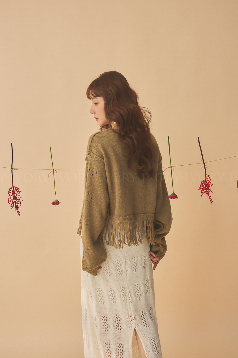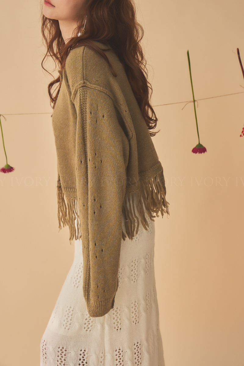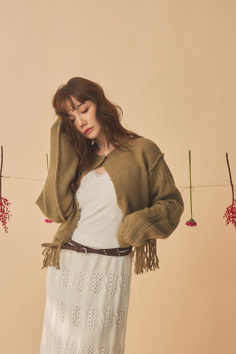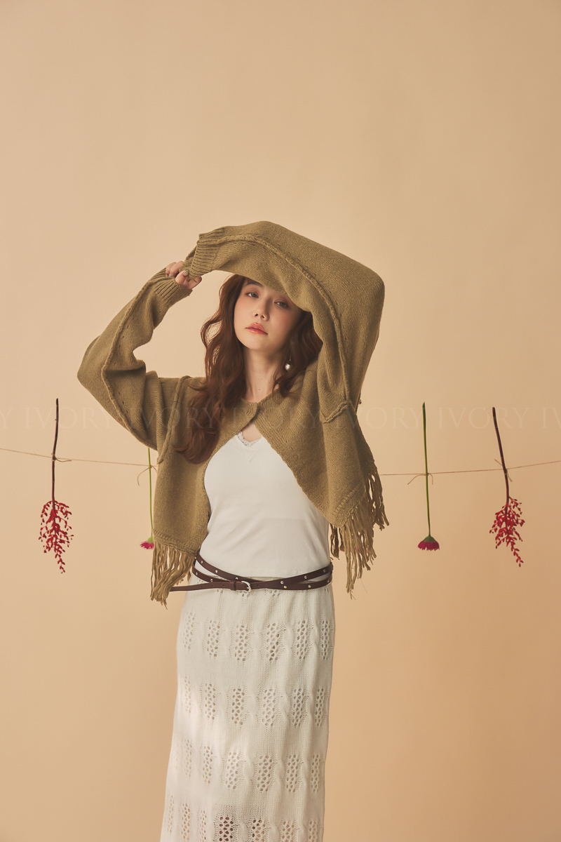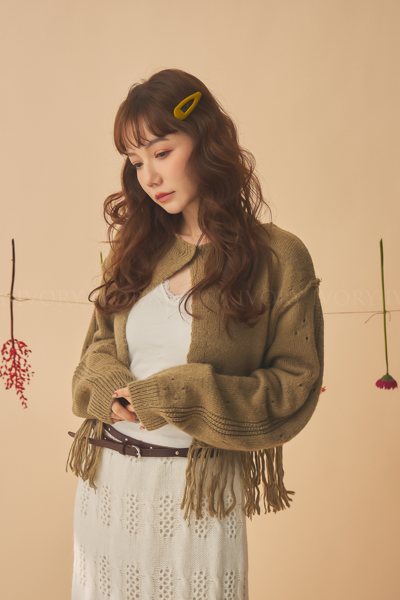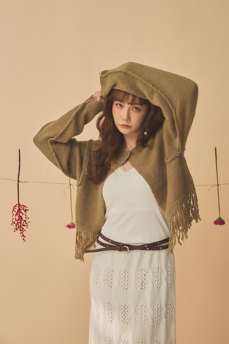 Q51041波希米亞流蘇下擺兩穿式毛線外套