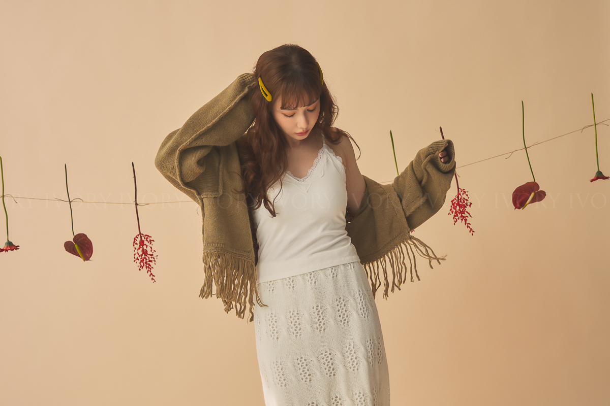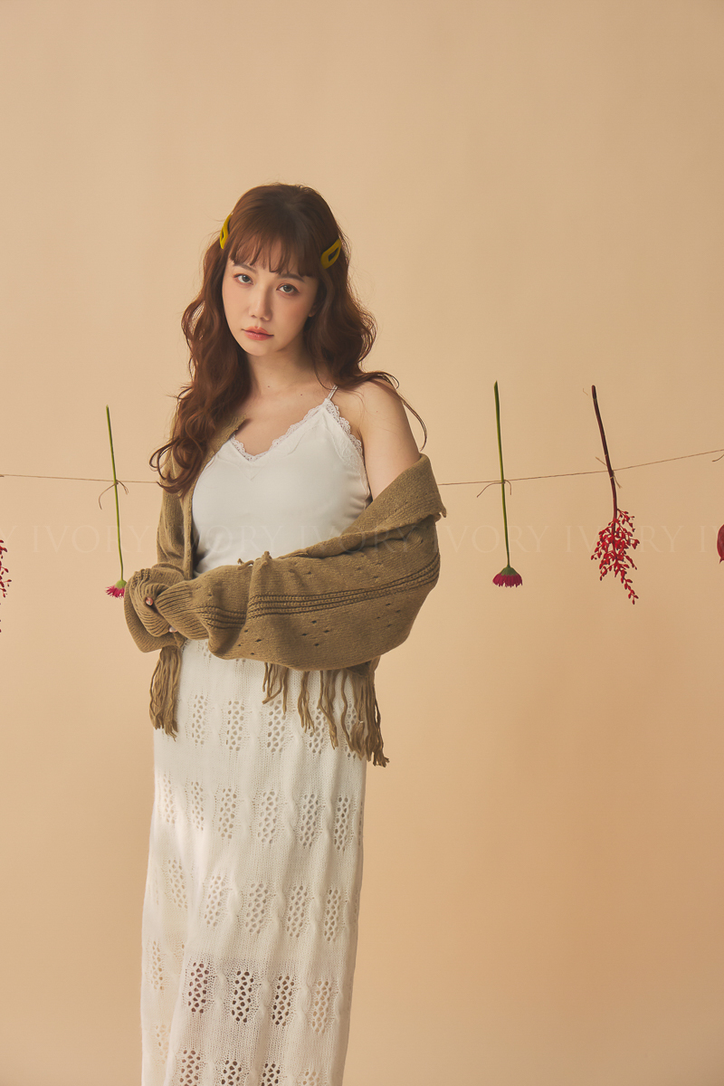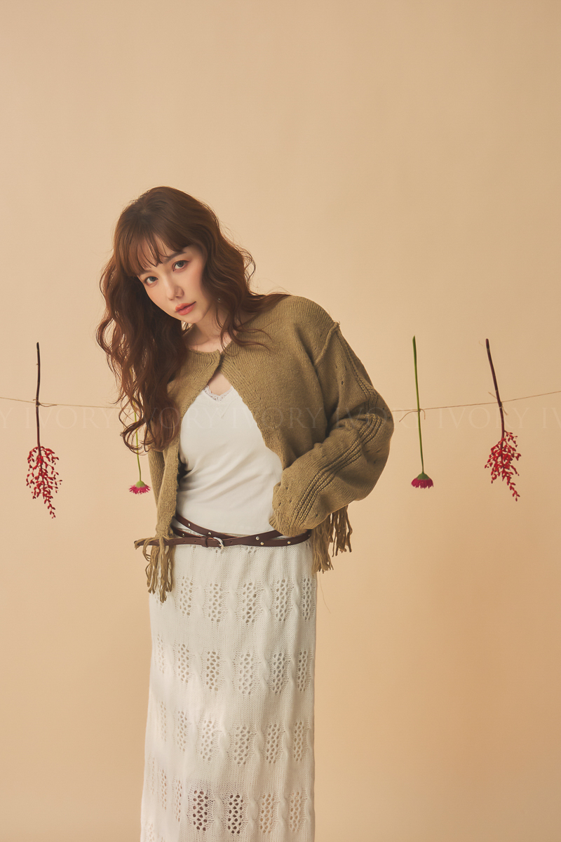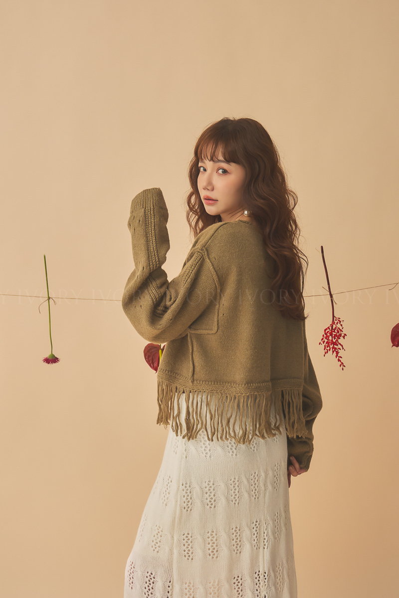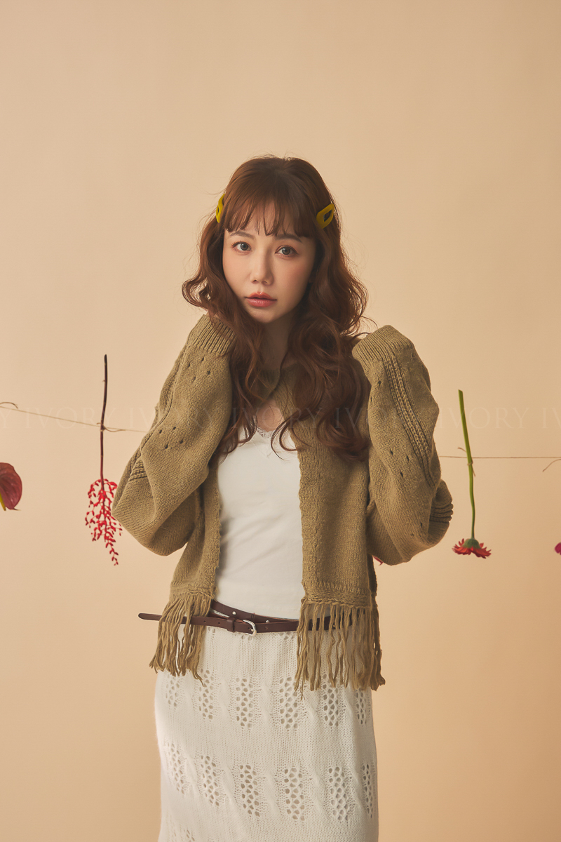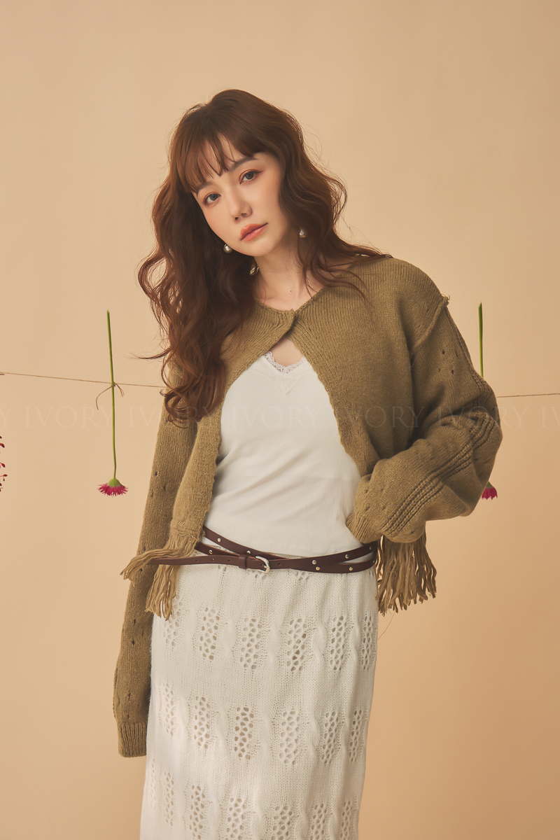 Q51041波希米亞流蘇下擺兩穿式毛線外套