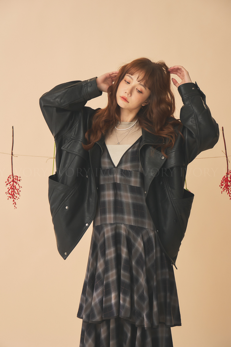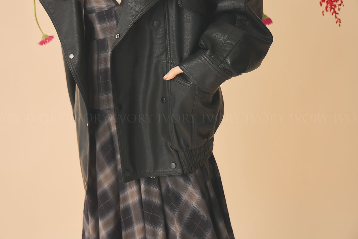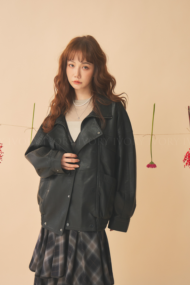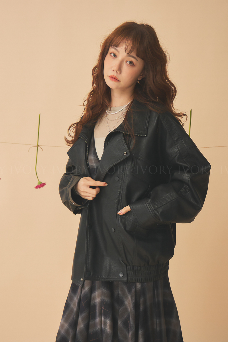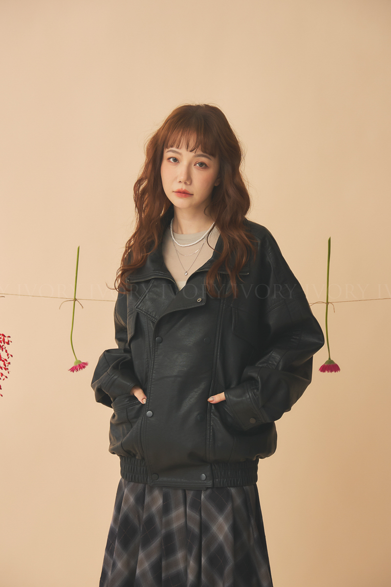 Q51043雙排扣騎士風皮衣外套