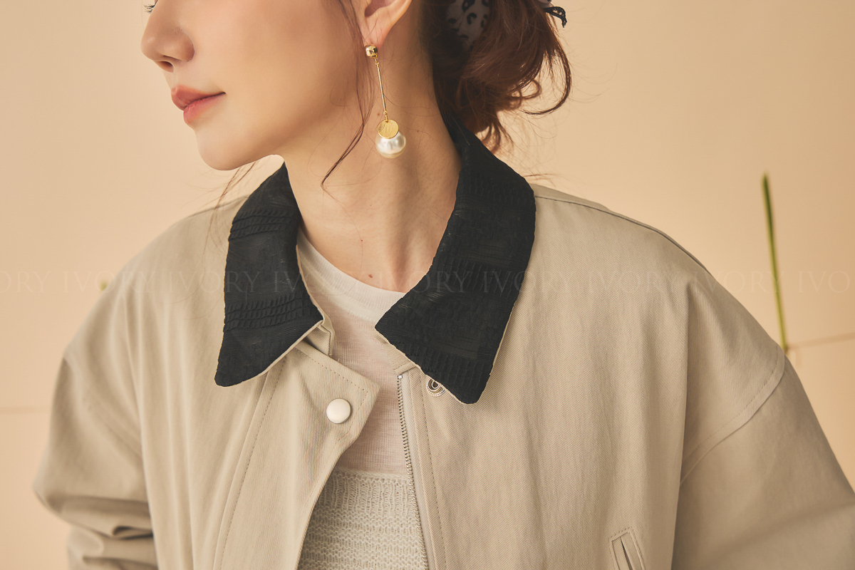 Q51045絕美拼接蕾絲領巴恩風外套< 謝琦琦清單>