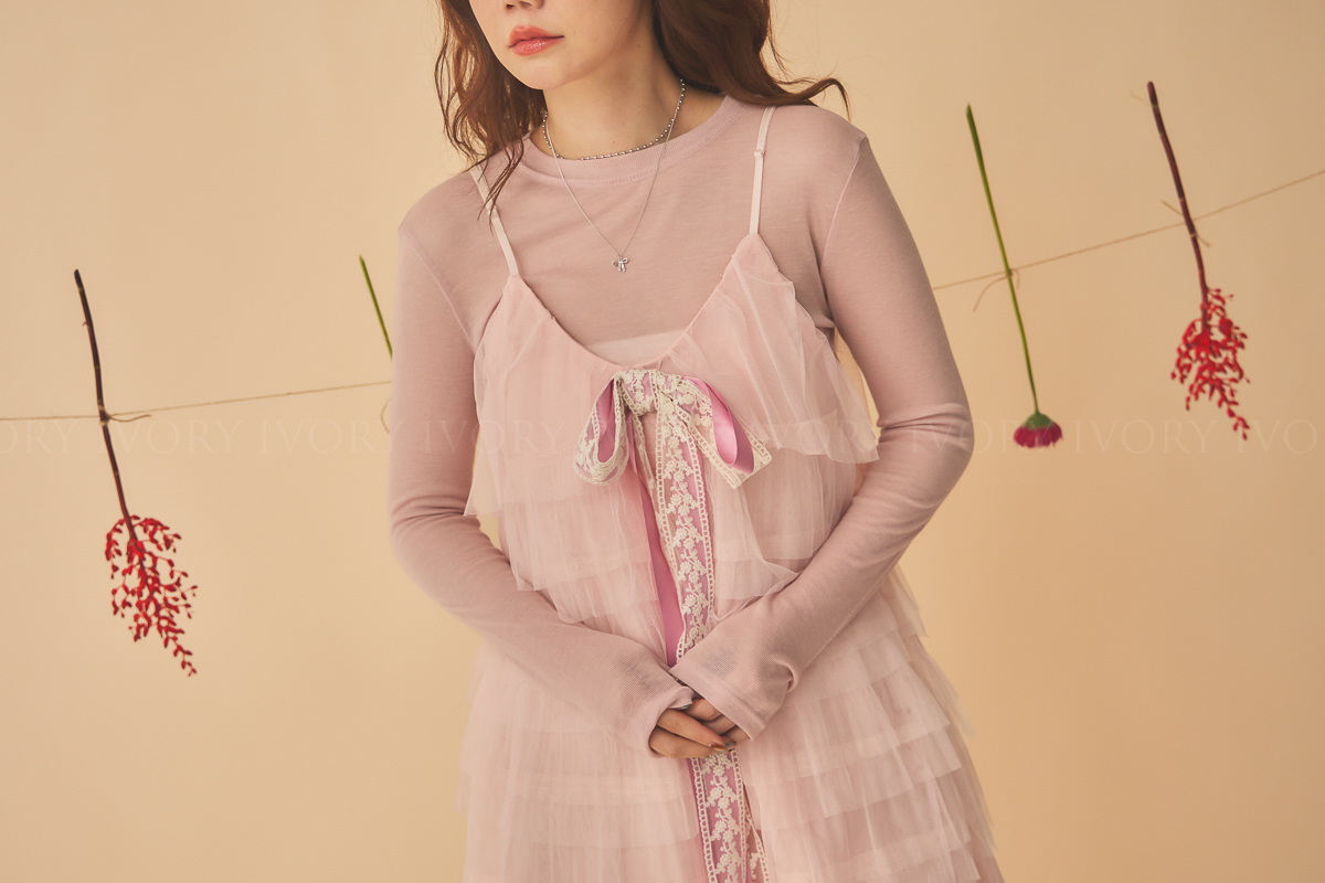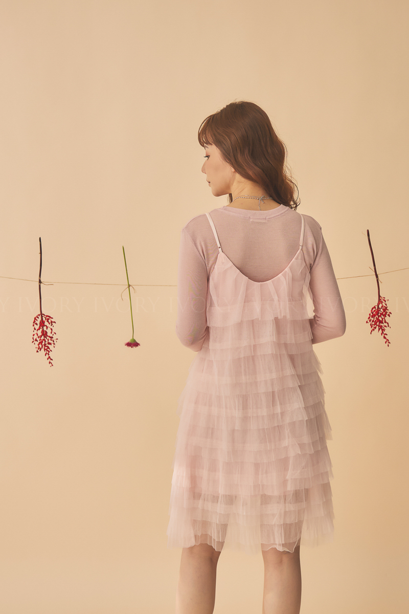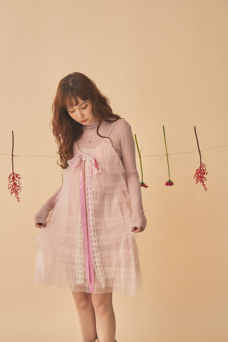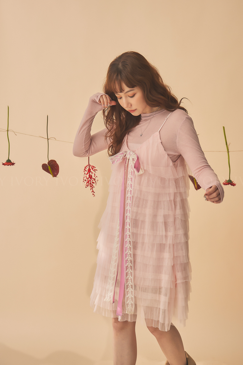 Q51047小仙子千層蕾絲大蝴蝶結細肩洋裝