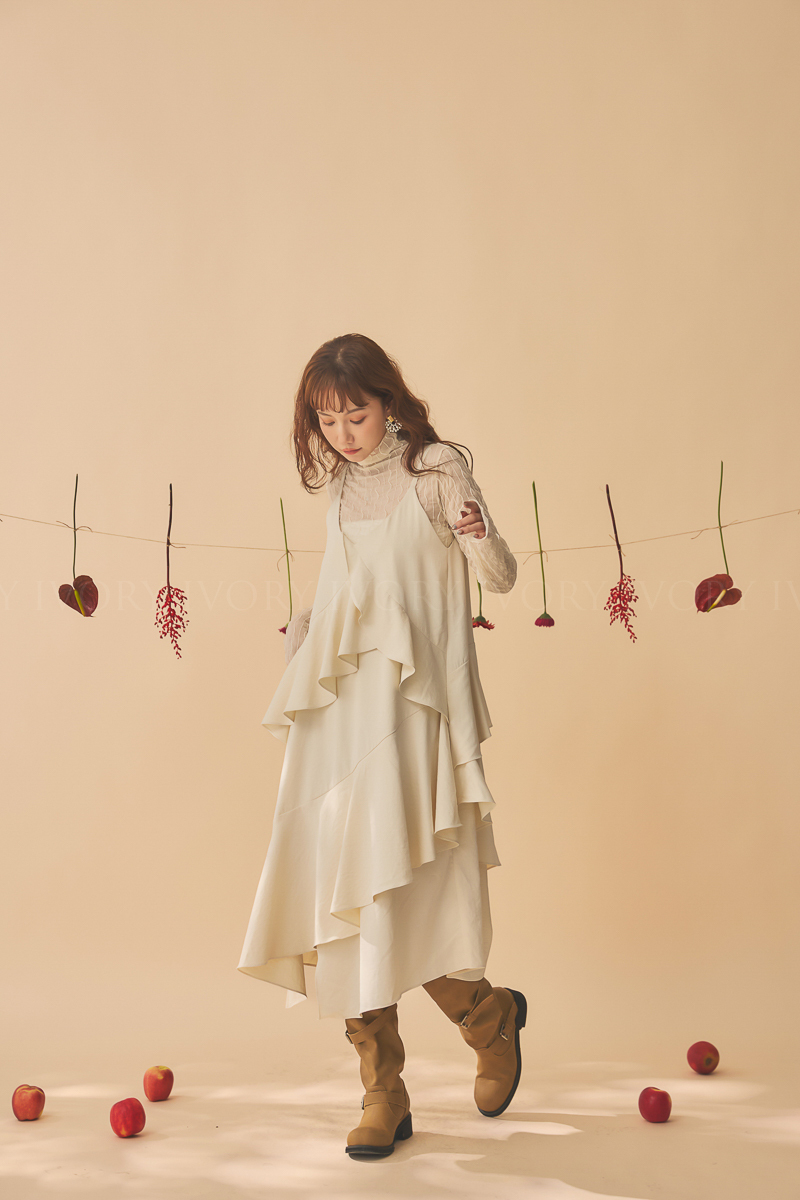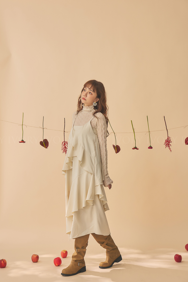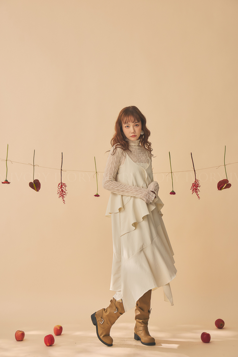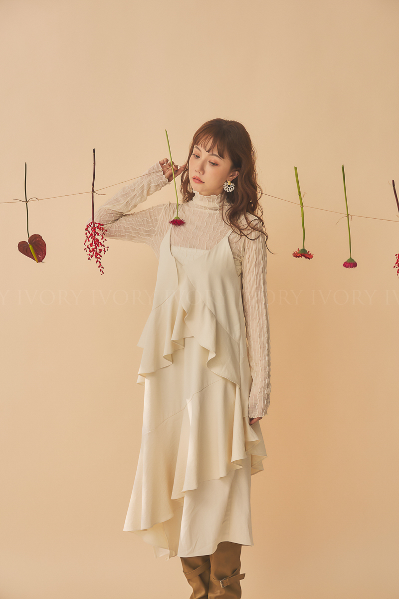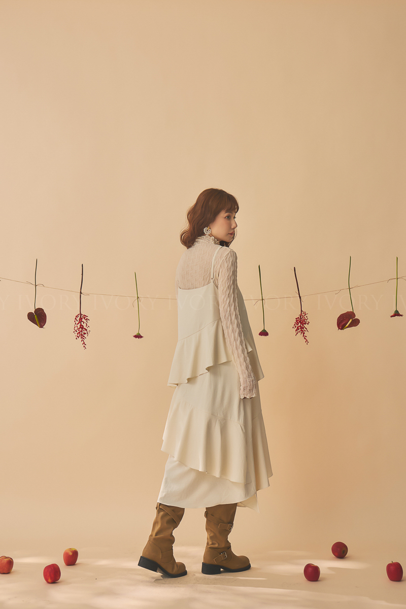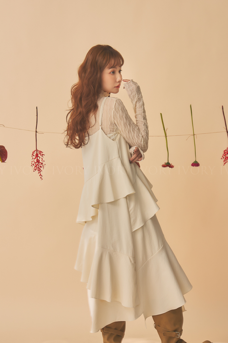 Q51050日系浪漫感荷葉蛋糕斜擺細肩長洋